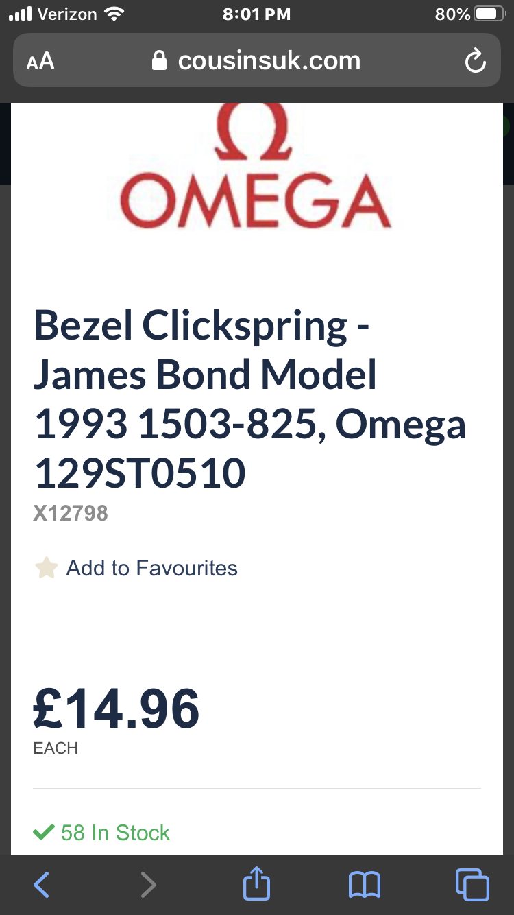 These guys seem like the only other place https://www.watchmaterial.com/bezel-spring-fits-omega-seamaster-2535-80-00-232-30-42-21-01-001/ Seems this is the correct size, but wanted to check with those who know before i waste my time. My watchmaker who was doing a bezel swap, rang midway and said my bezel spring was too big.