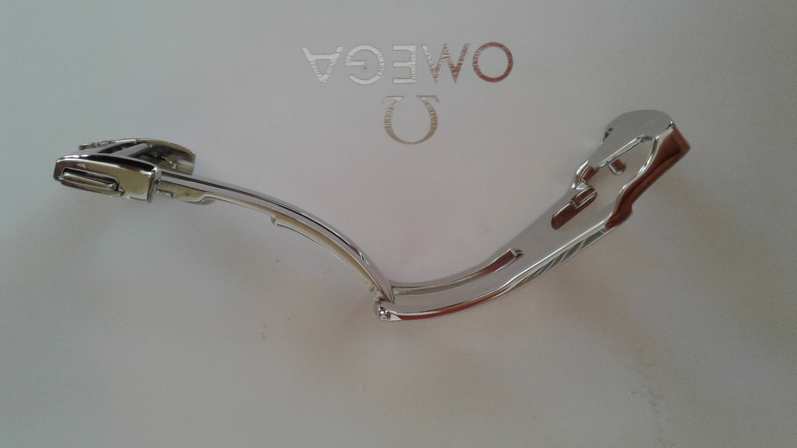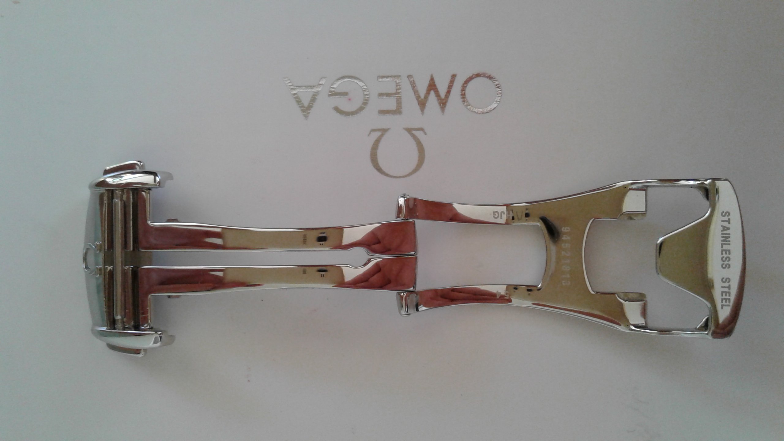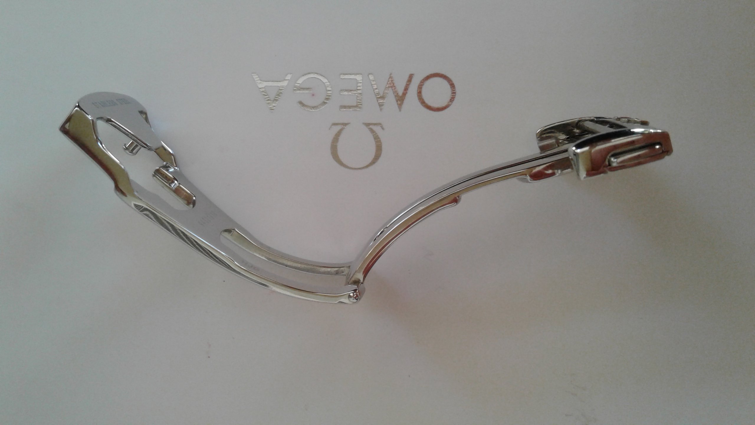 SOLD. Also for sale a genuine Omega 18mm deployant clasp in polished stainless steel model 94521813 in very good condition, had very little use. This deployant clasp 'll fit most Omega deployant straps with 18mm clasp end. Any questions please ask.