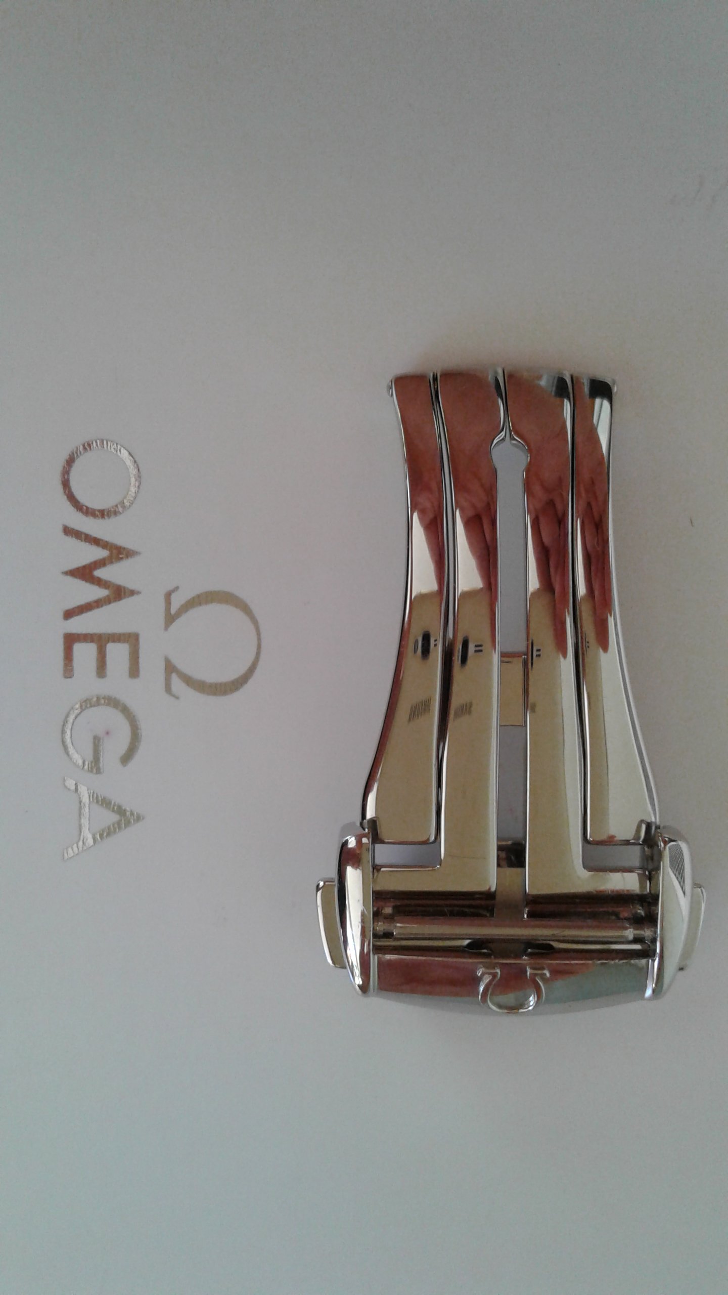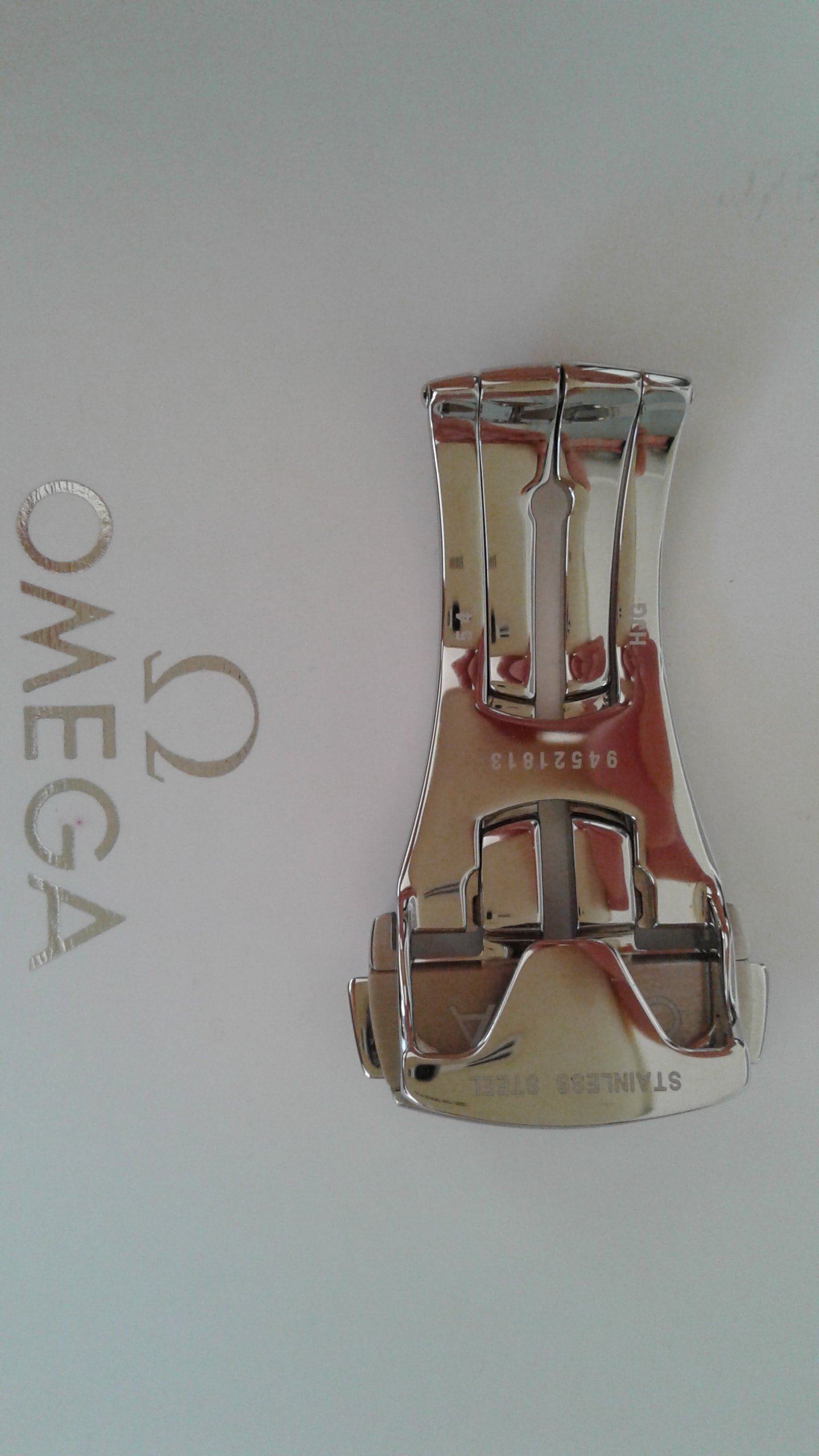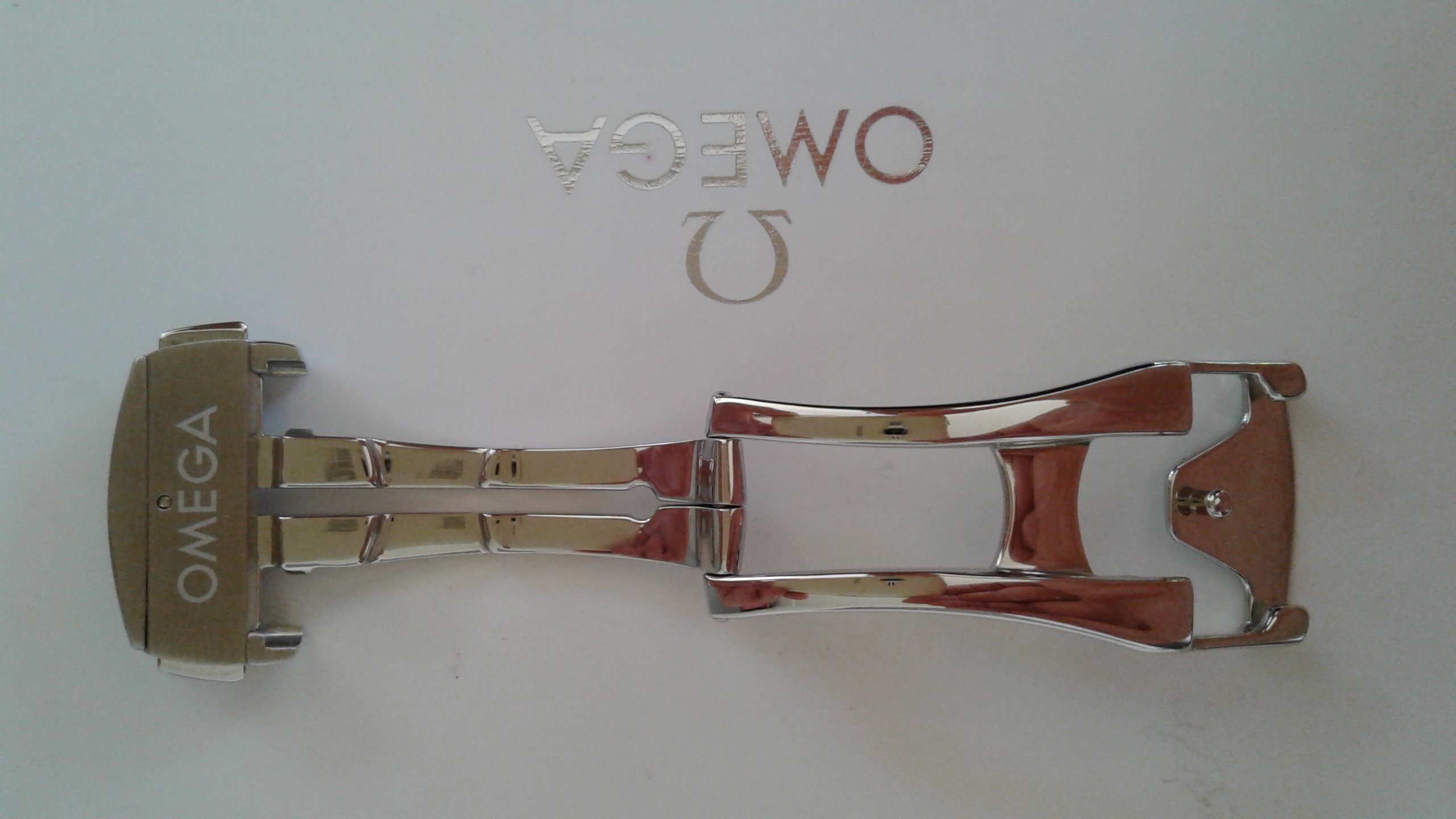 SOLD. Also for sale a genuine Omega 18mm deployant clasp in polished stainless steel model 94521813 in very good condition, had very little use. This deployant clasp 'll fit most Omega deployant straps with 18mm clasp end. Any questions please ask.