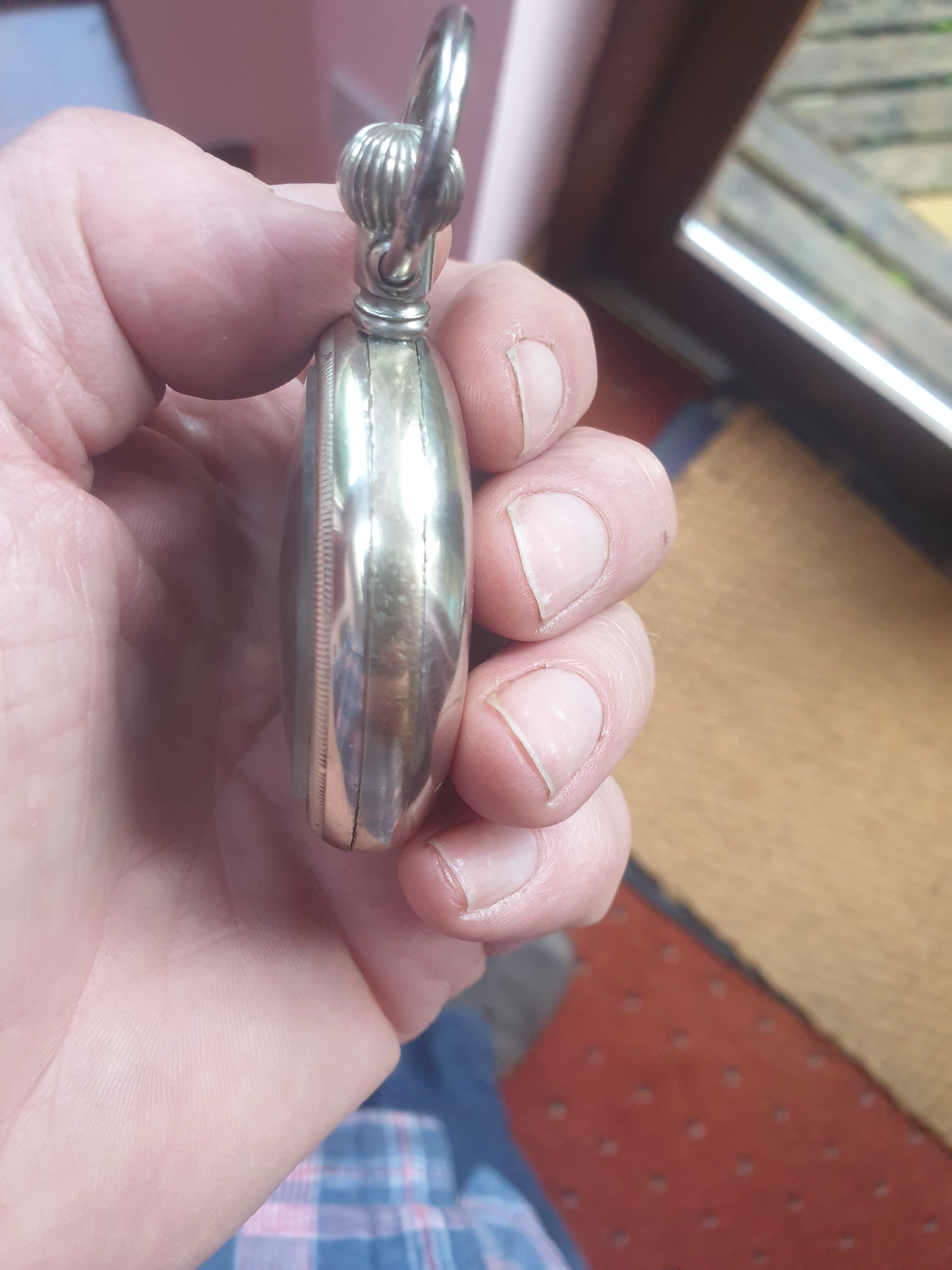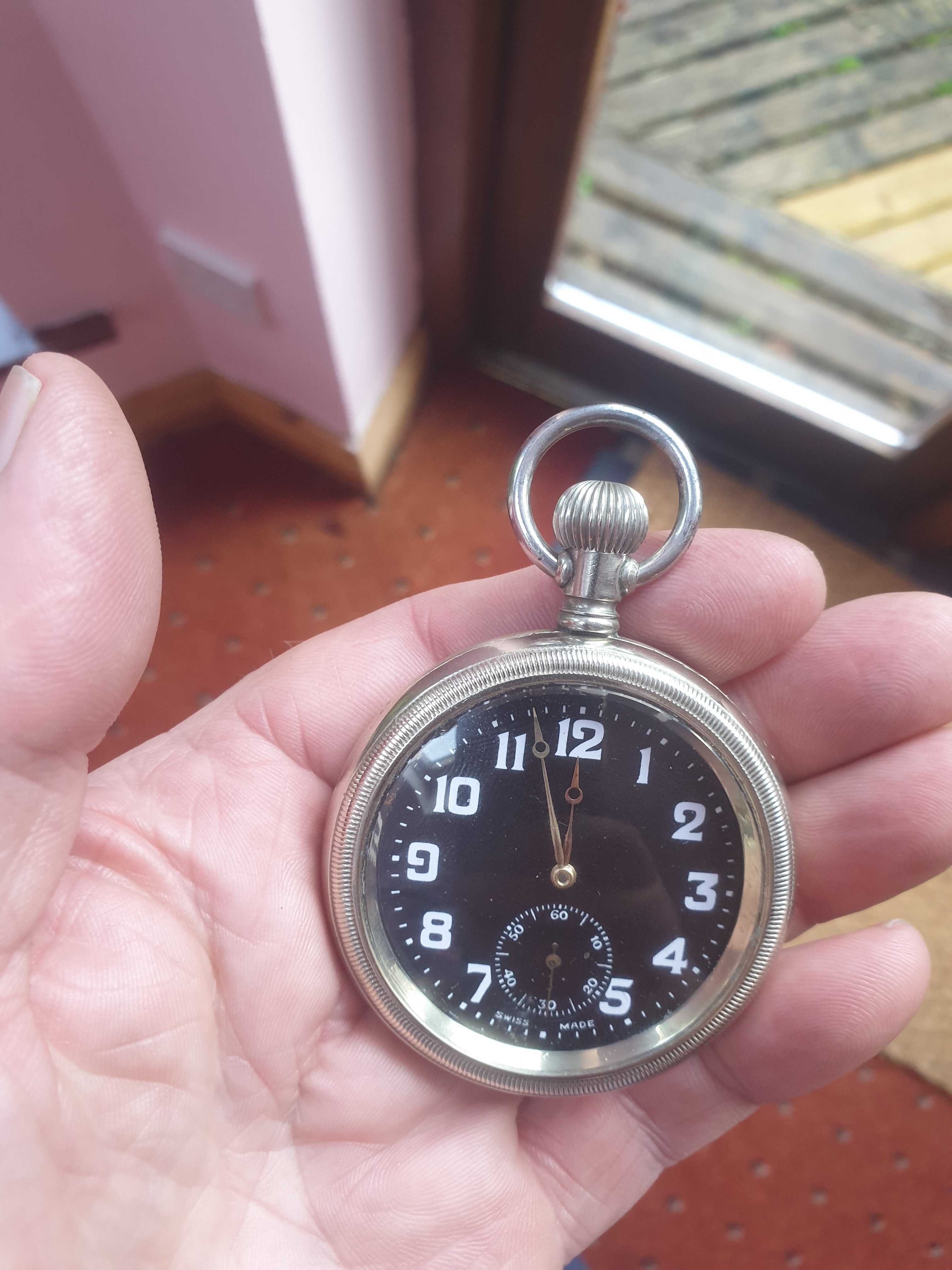 Well, I followed a blind alley to its end. Broad arrow indicates a British military watch, Kin also known as Kintown in Okinawa is home to an American Marine base where sometimes some Royal Marines have also trained. So I searched for Phelan, Royal Marines, and found a record of John Phelan who enlisted in 1913 as a boy at the tender age of 14. Killed in action May 31, 1916, when HMS Invincible was sunk at Jutland. Still, it's a blind alley as far as this watch as the first initial is not D and this watch is newer than 1916, and what would an enlisted boy be doing with a watch this nice?, and no reason to think he might have been in Okinawa. Kudos to the British National Archives for putting service records on the web.