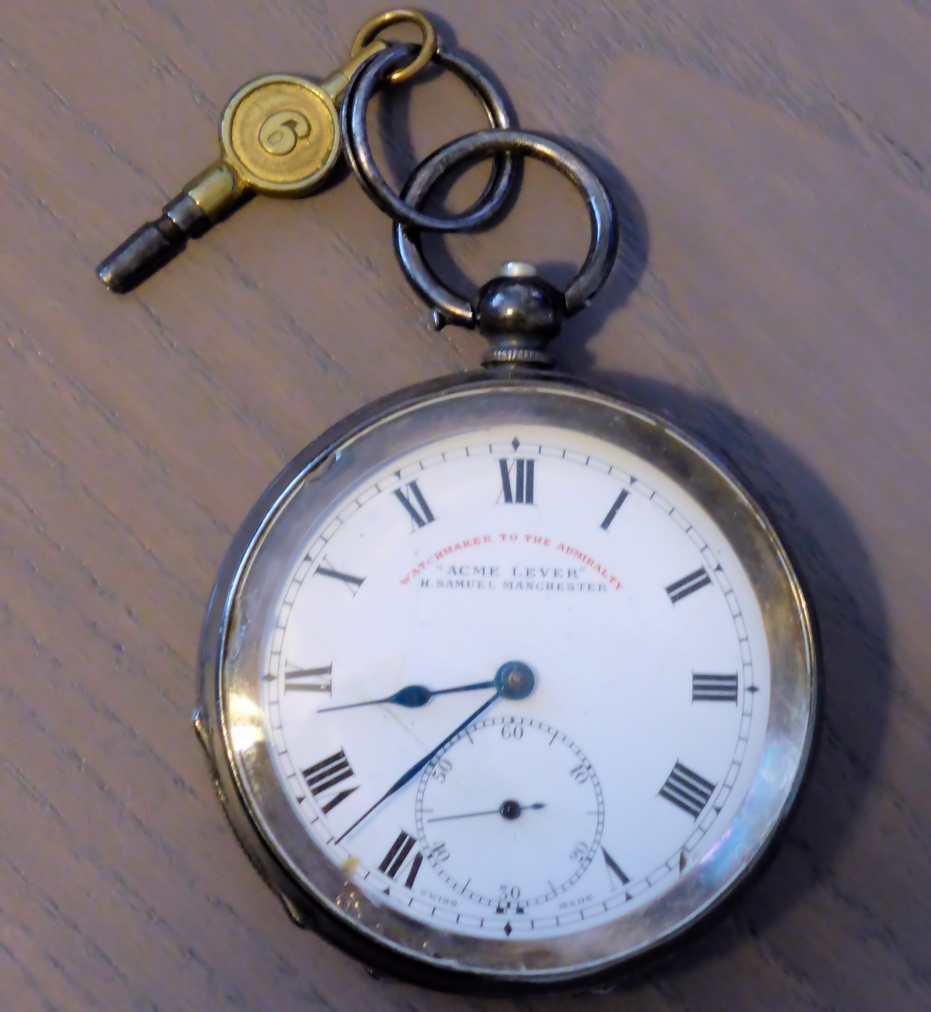 Marks for London, 1935. Sponsor is H Samuel who are now a chain of high street jewellers but we're originally quite decentanufacturing jewellers. A photo of the movement would help but it's a pretty common or garden silver pocket watch.