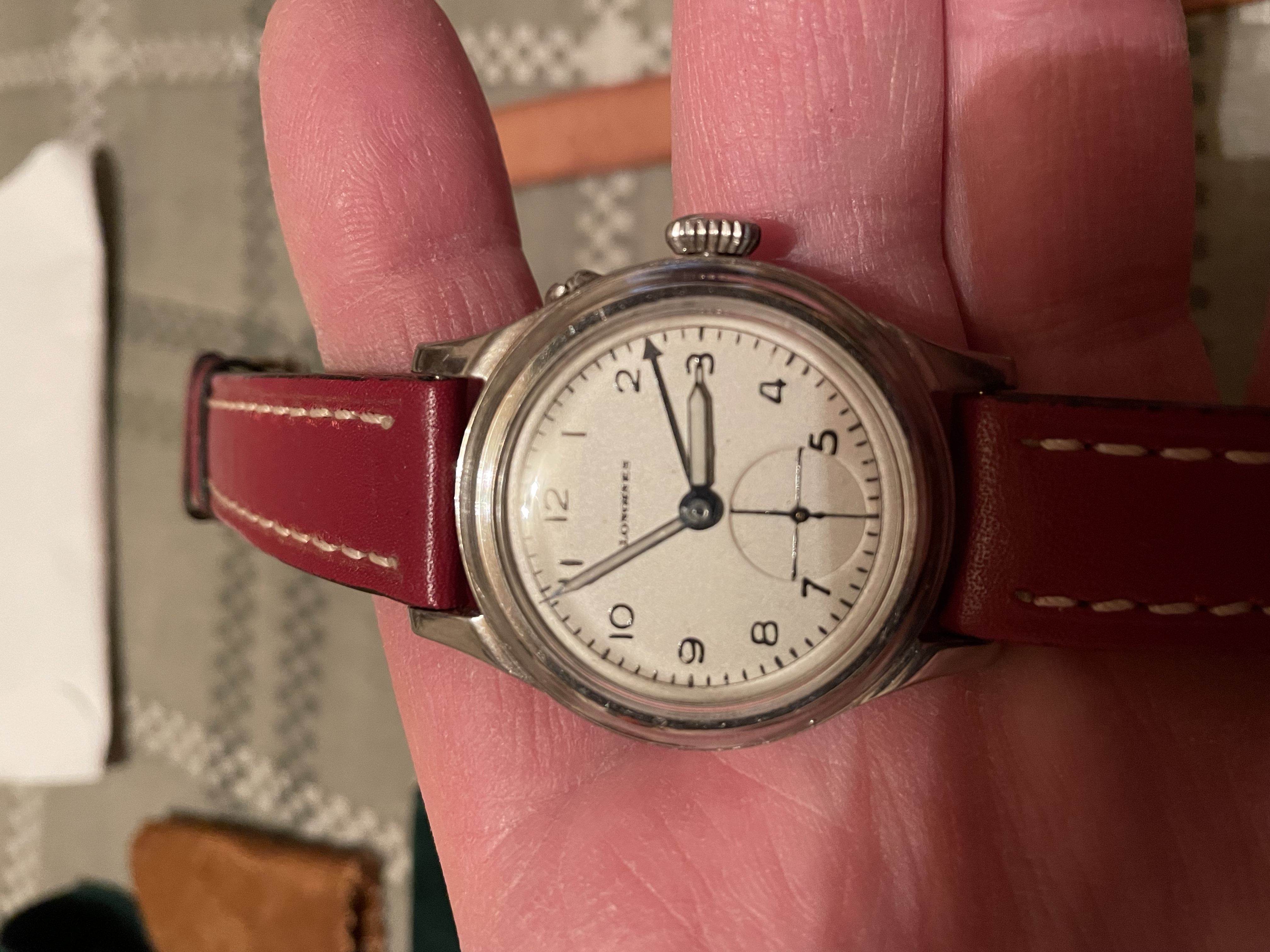 Finally, there is the pink dial. I am somewhat suspicious of these pink dials as they are always in perfect condition, despite the condition of the rest of the watch. The printing is very good so maybe they were produced by Longines with a dual purpose: some for production watches and others kept as spare parts? I lack sufficient evidence at this time.