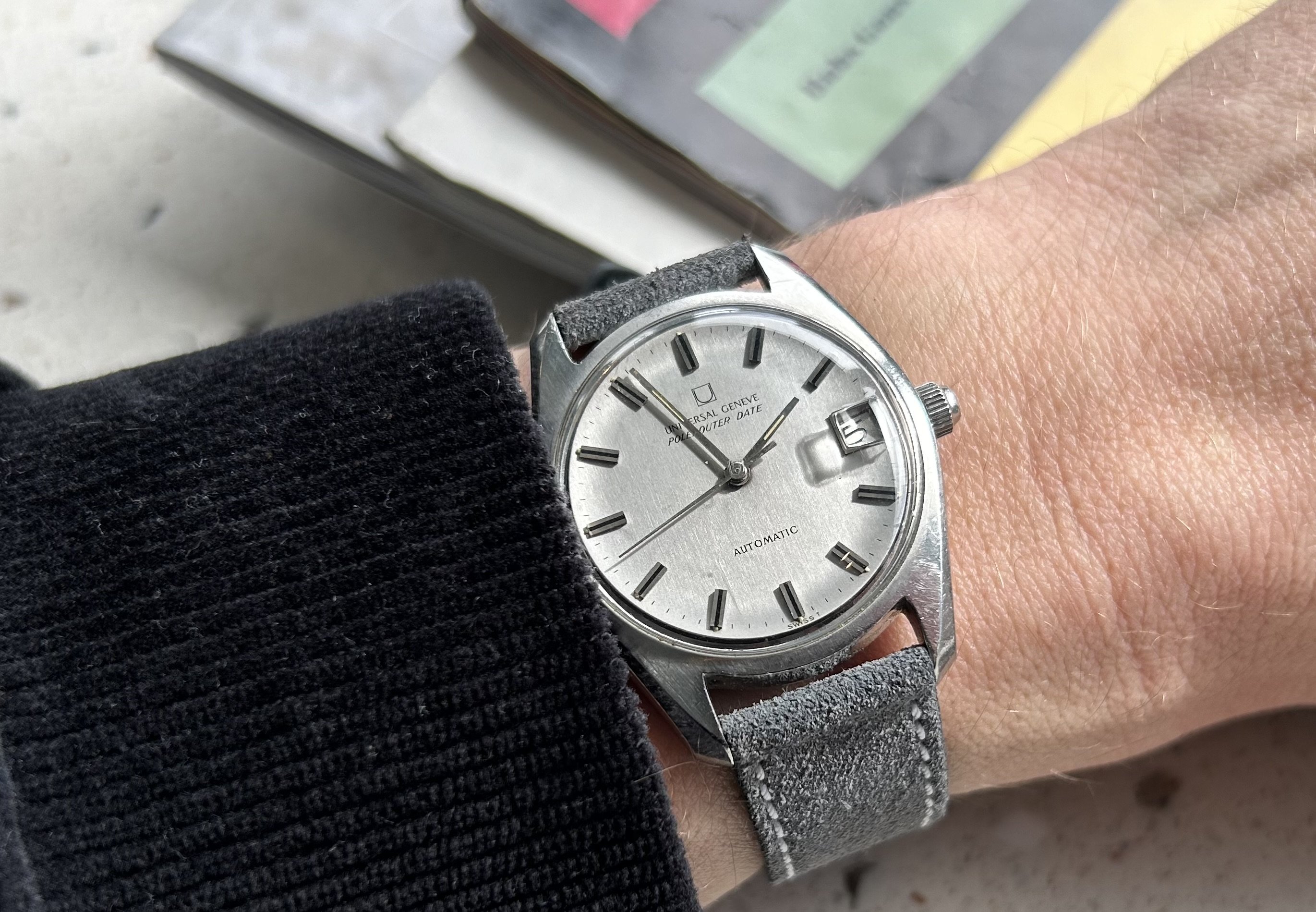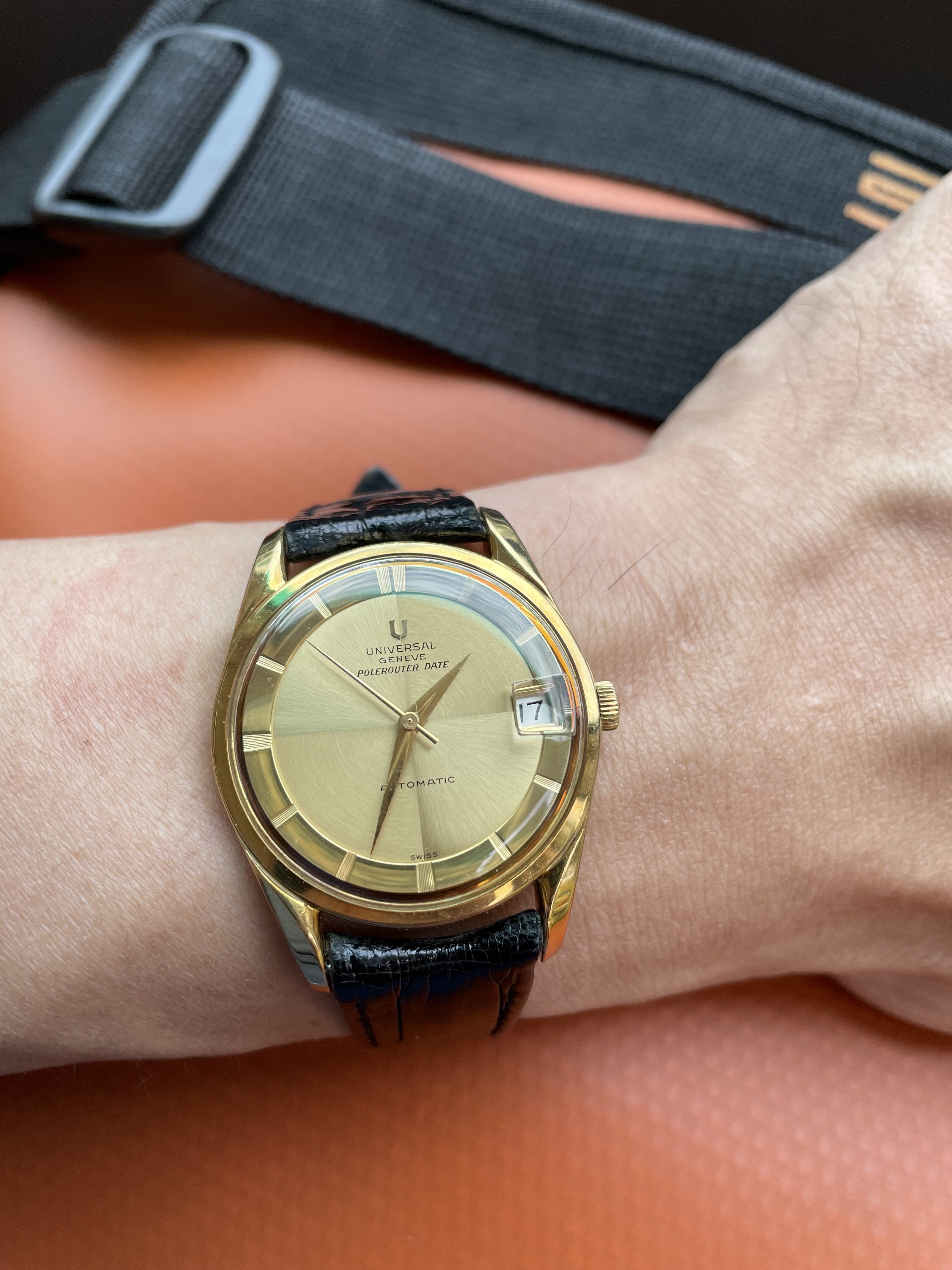 Posts 1,202 Likes 3,050 Mazoue ·Mar 17, 2024 W Weihao Took mine out recently from the safe box for a ride. Congrats. I've always loved the contrasting brushing detail on the dial of this reference (104601/1). Here's one in rose gold from the Polerouter book.