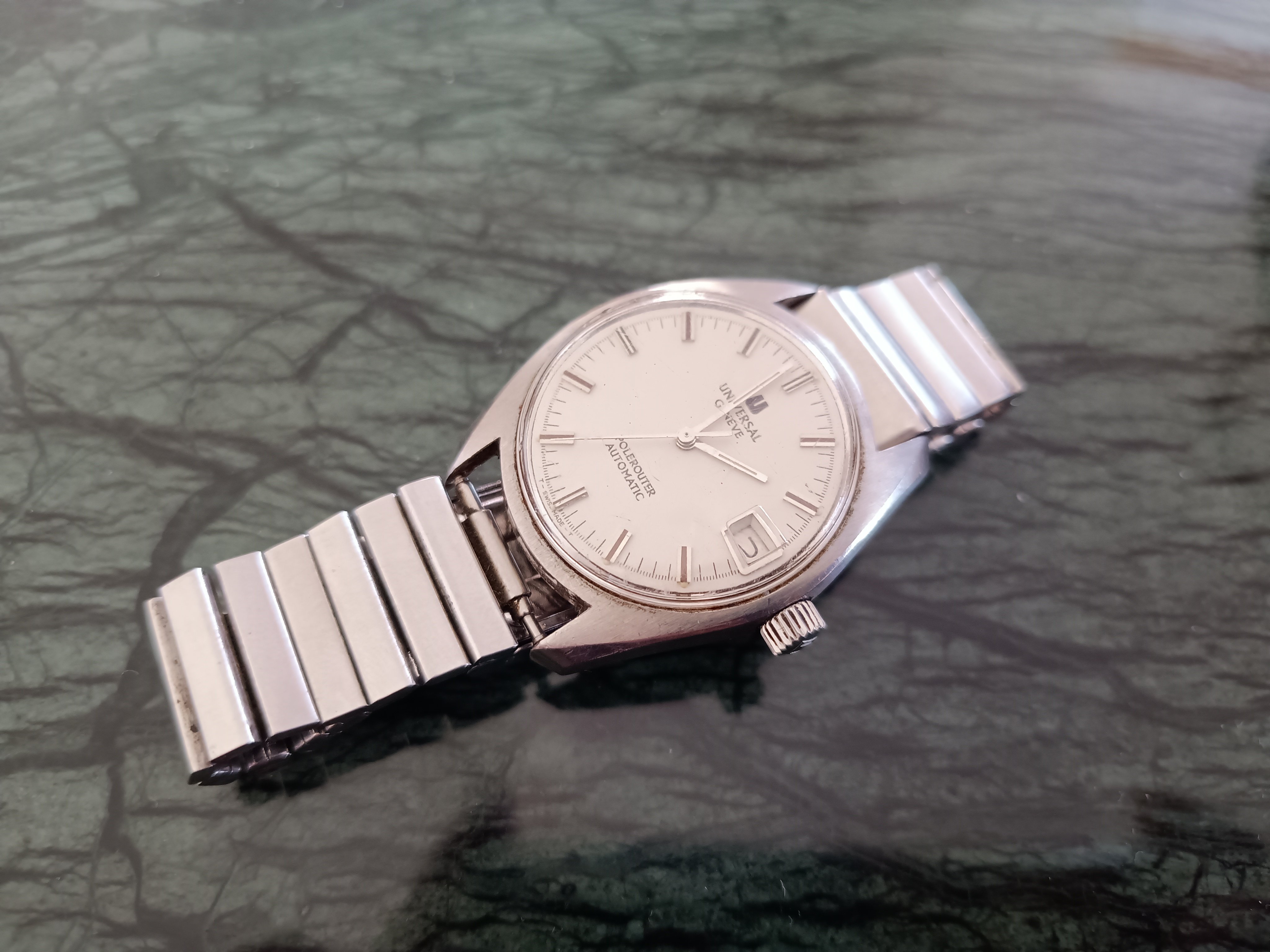 The watch itself is extremely dirty and kinda gross but the case seems to be in good shape and unpolished, the original crystal and crown are still there so it only needs a good cleanup and movement service to be up and runnig again - although it is not the most sought after Polerouter I thought it was still worth saving.