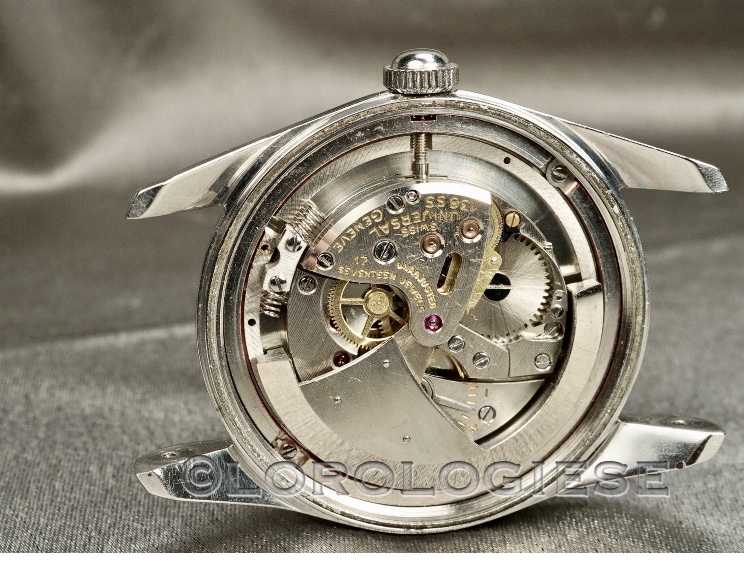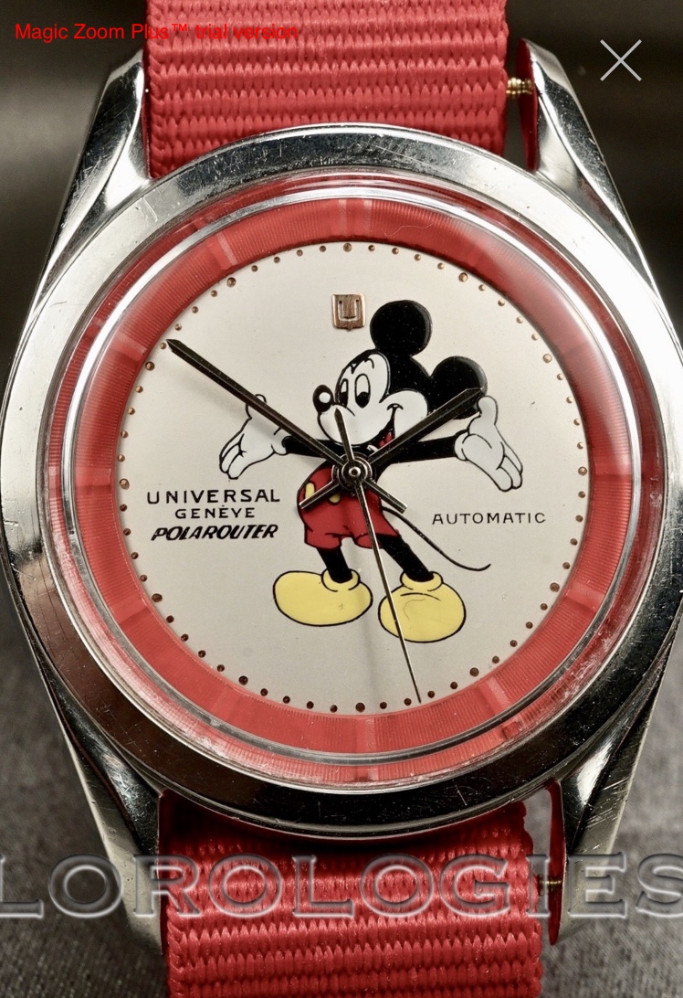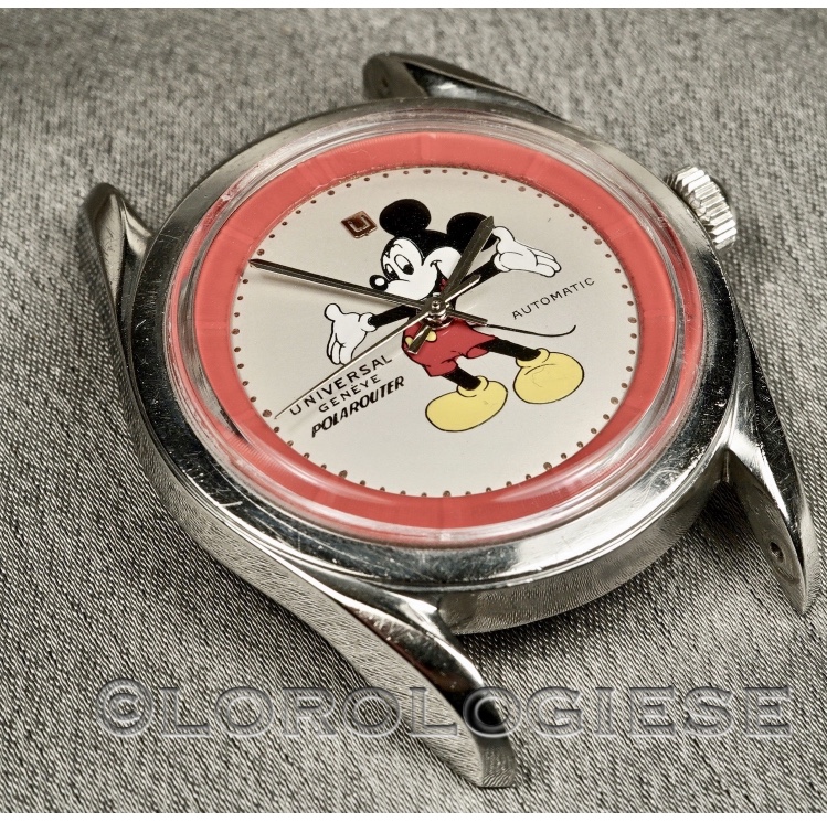« Original 1956-57 Universal Geneve Polerouter one-off custom-made larger-size Miceky Mouse dial steel watch in very good condition and in proper working order »