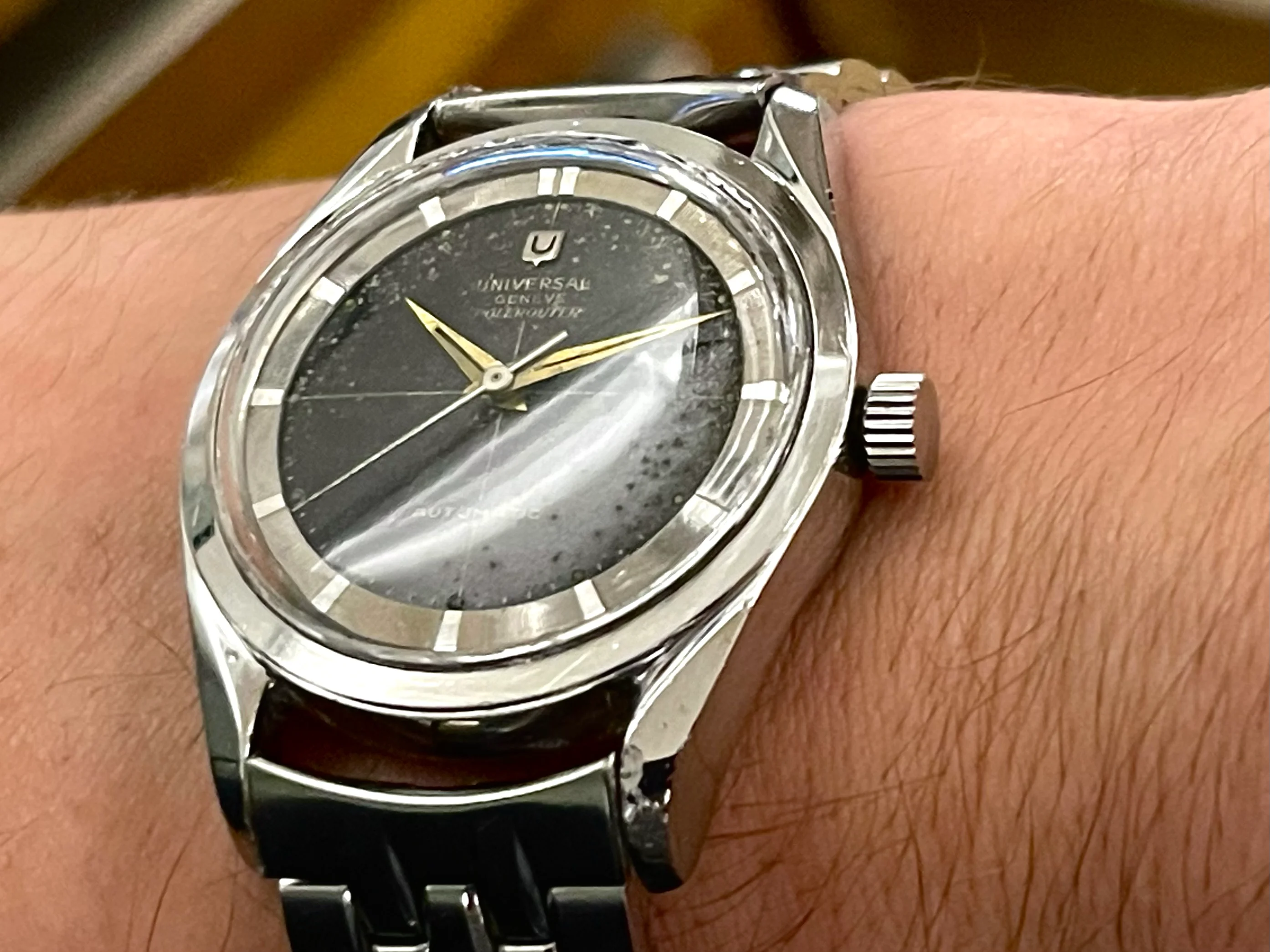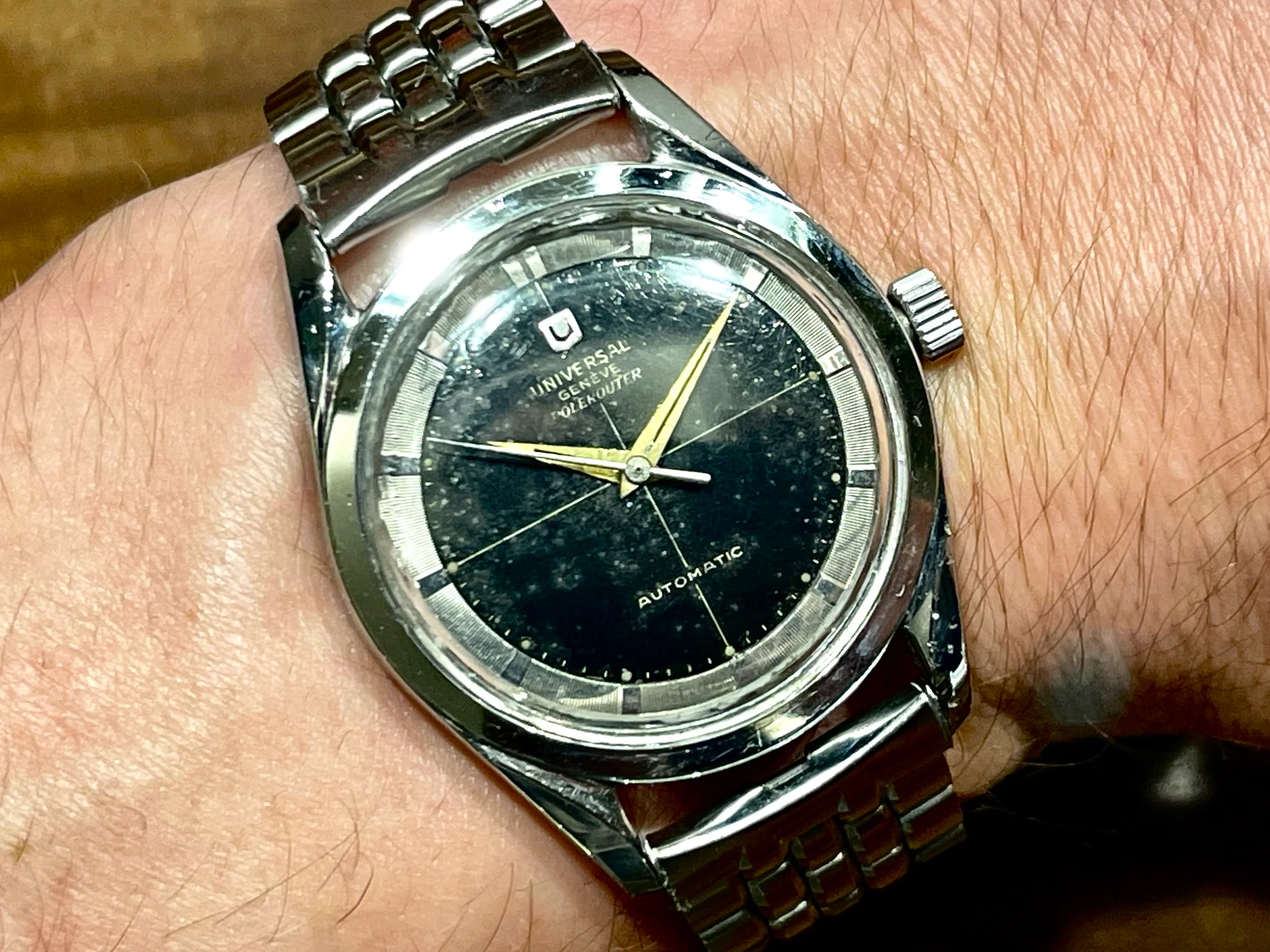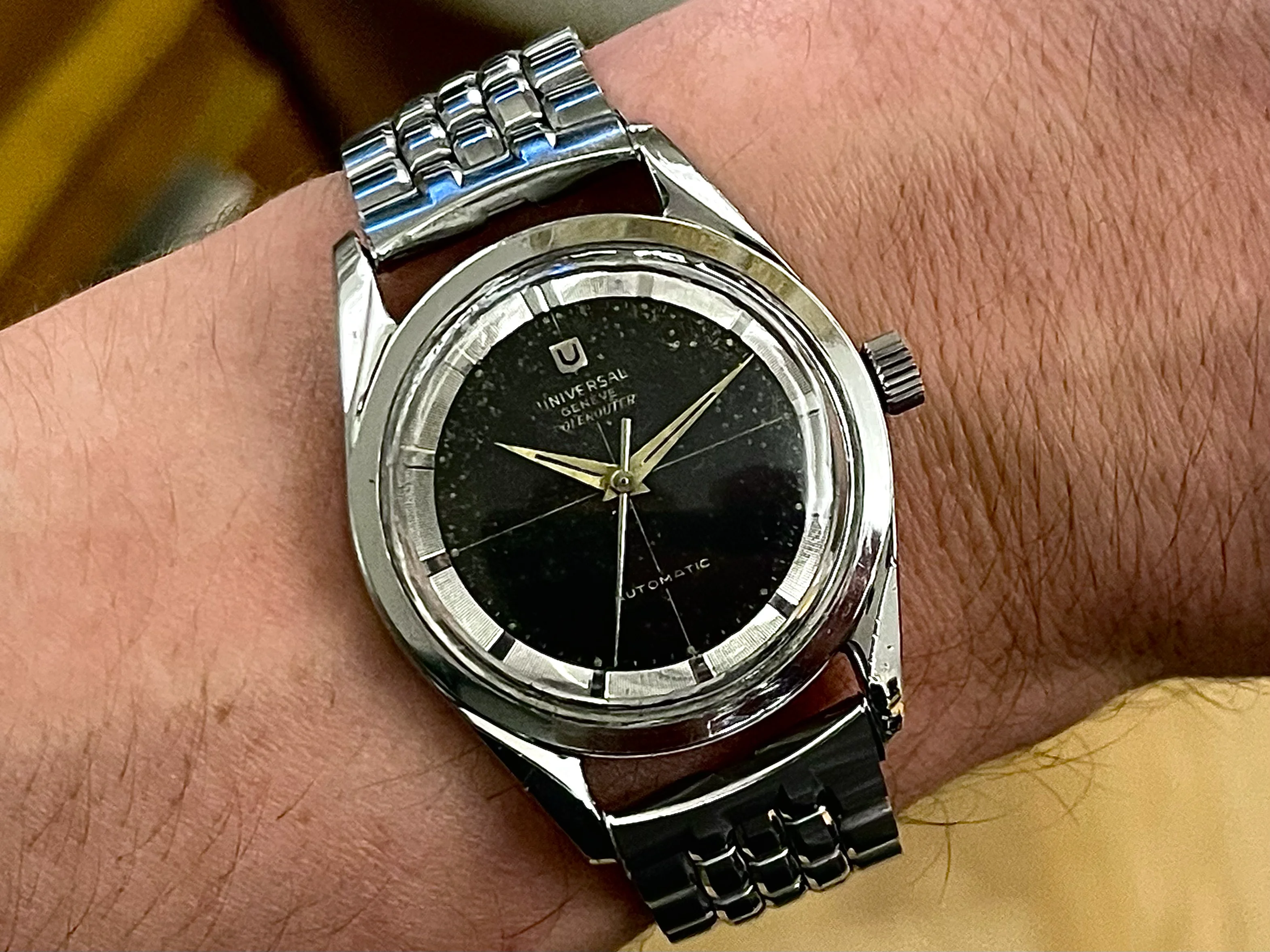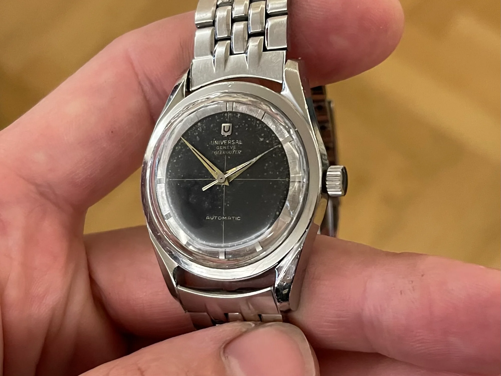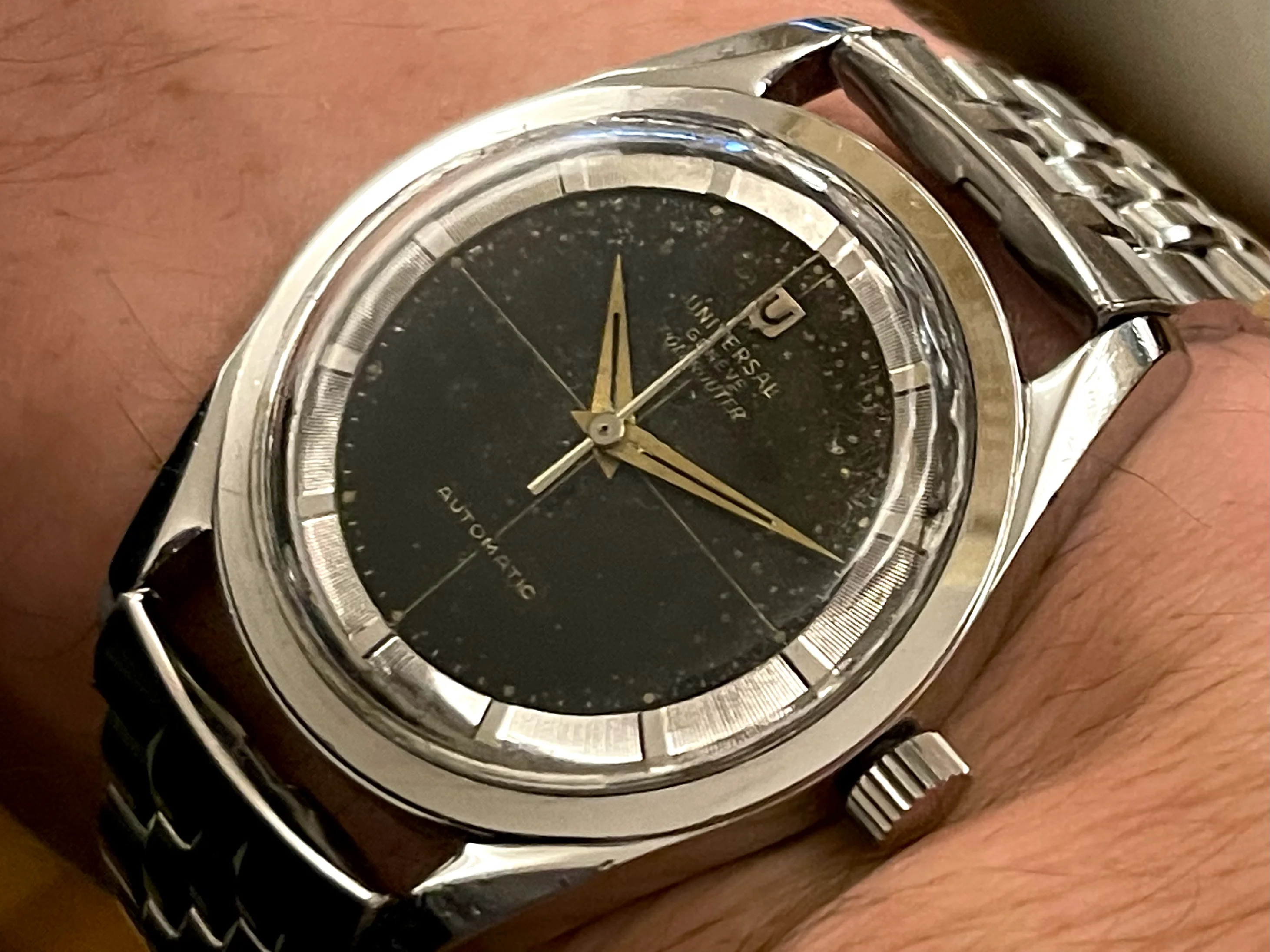I'm offering for sale a Universal Genève Polerouter Microrotor, black dial.