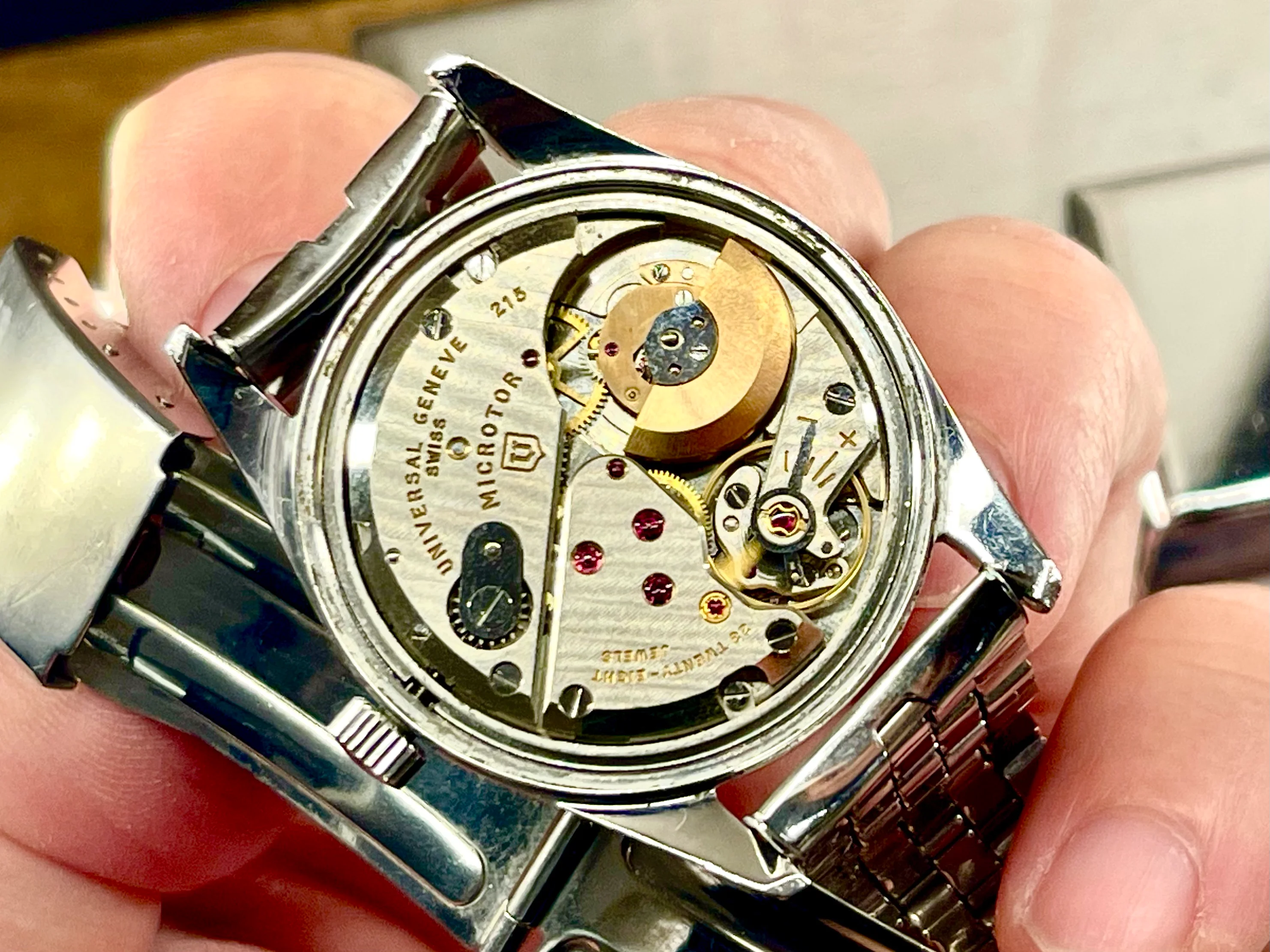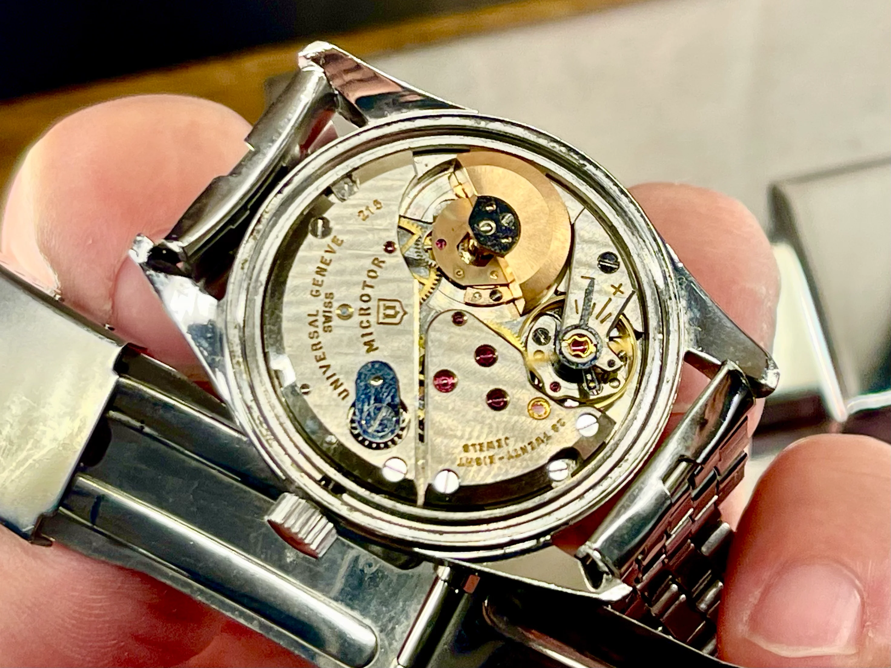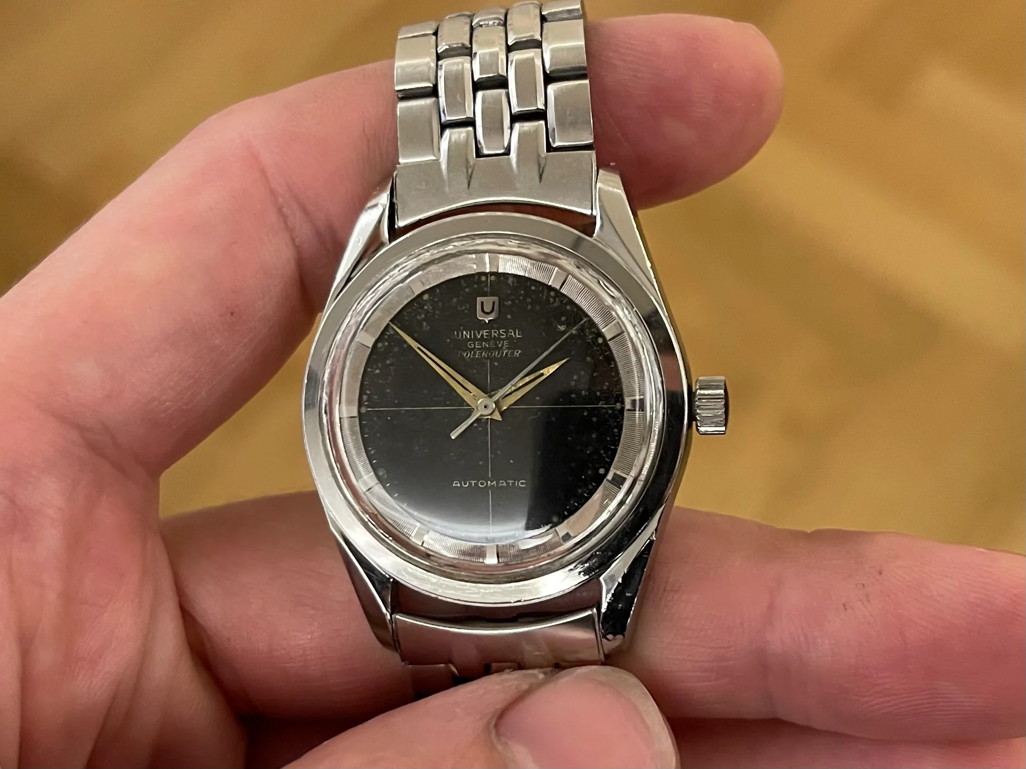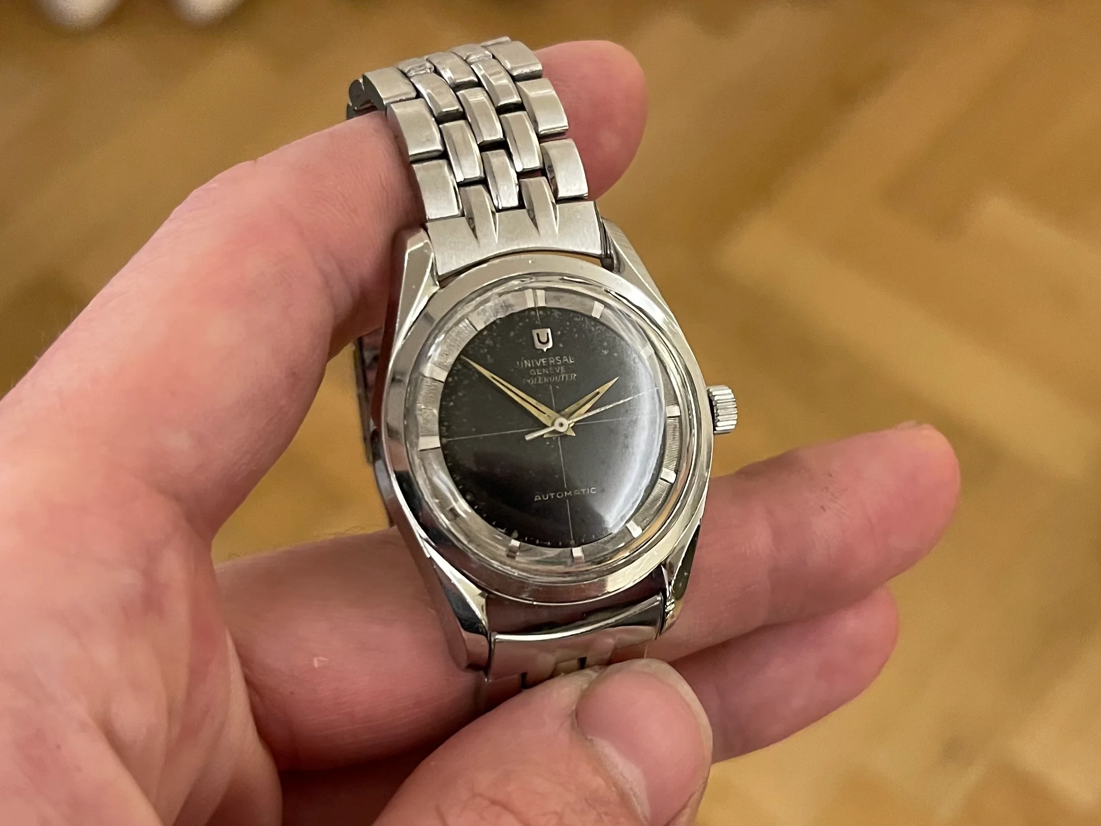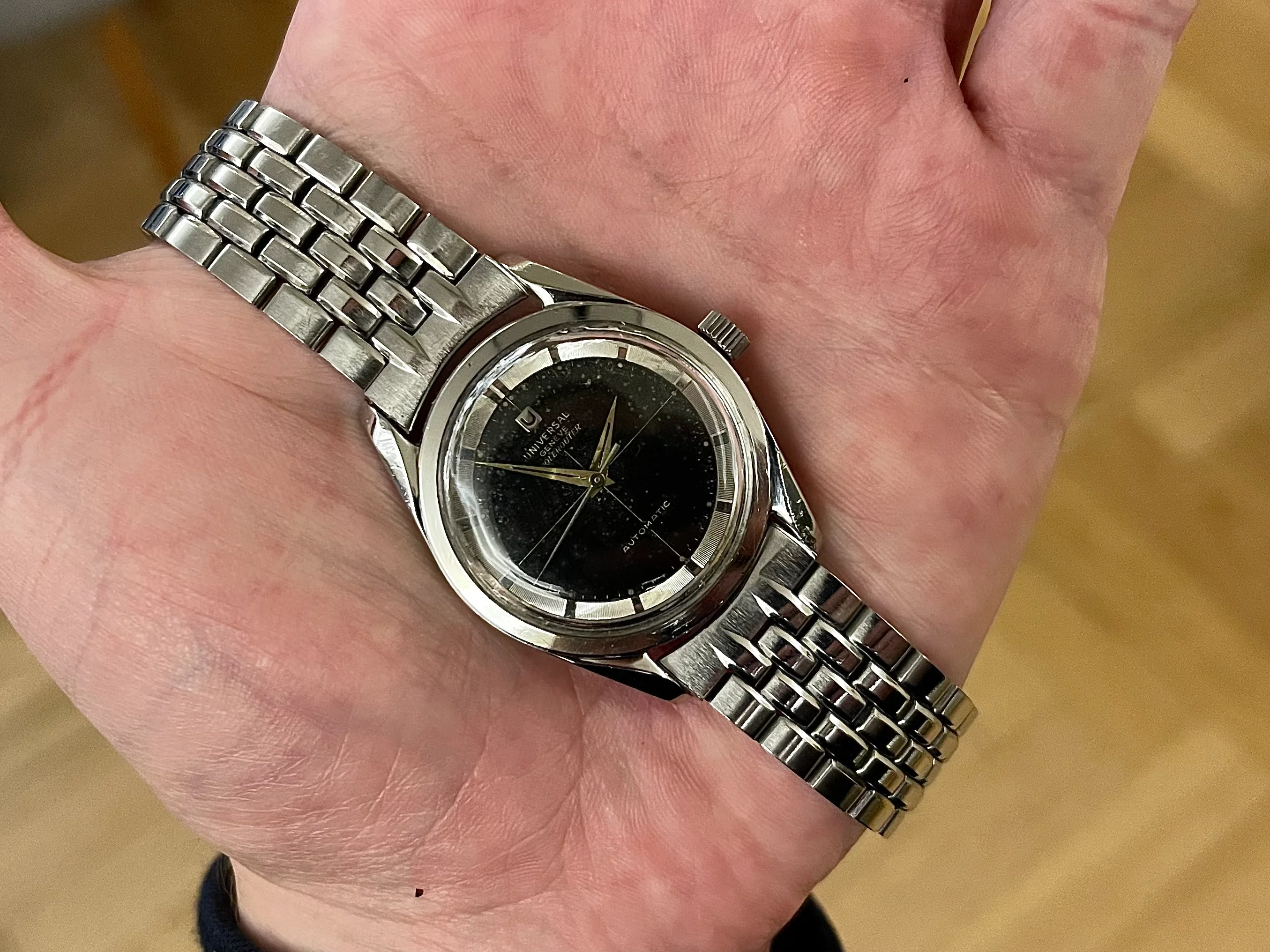 I'm offering for sale a Universal Genève Polerouter Microrotor, black dial.