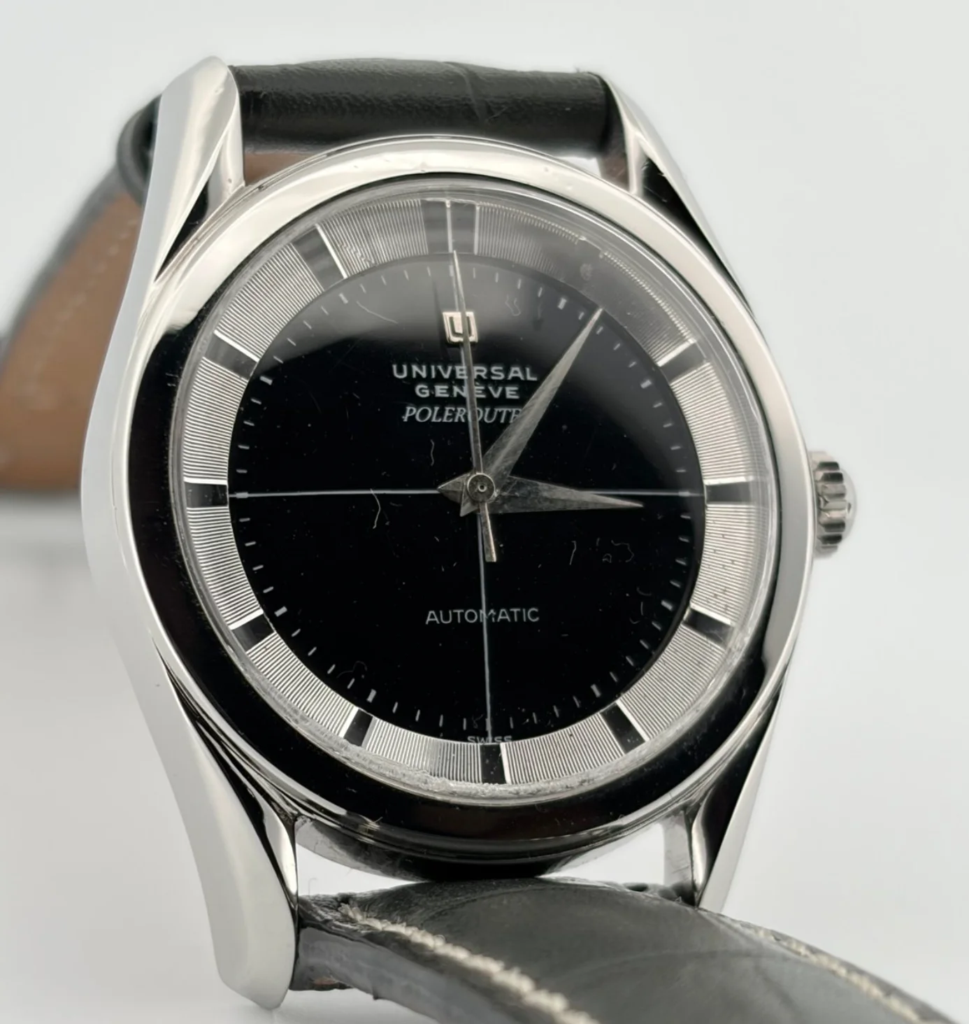 • Dial: Original black dial with silver inner ring, in beautifully preserved condition