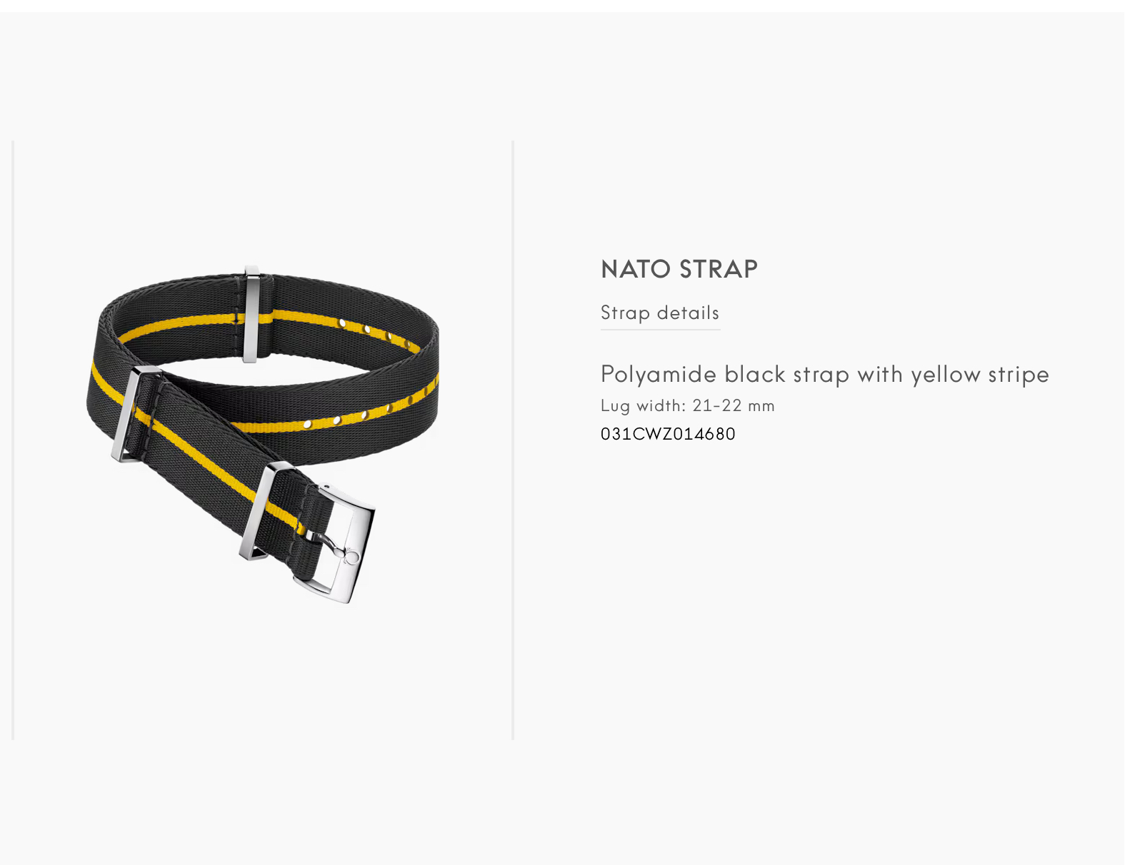 Posts 633 Likes 308 Omeg@007 ·Nov 21, 2024 Hello Looking to buy the following Nato: Polyamide black strap with yellow stripe Lug width: 22 mm REF: SKU:031CWZ014680 Condition: Like new If you have one, please drop me a PM Regrds
