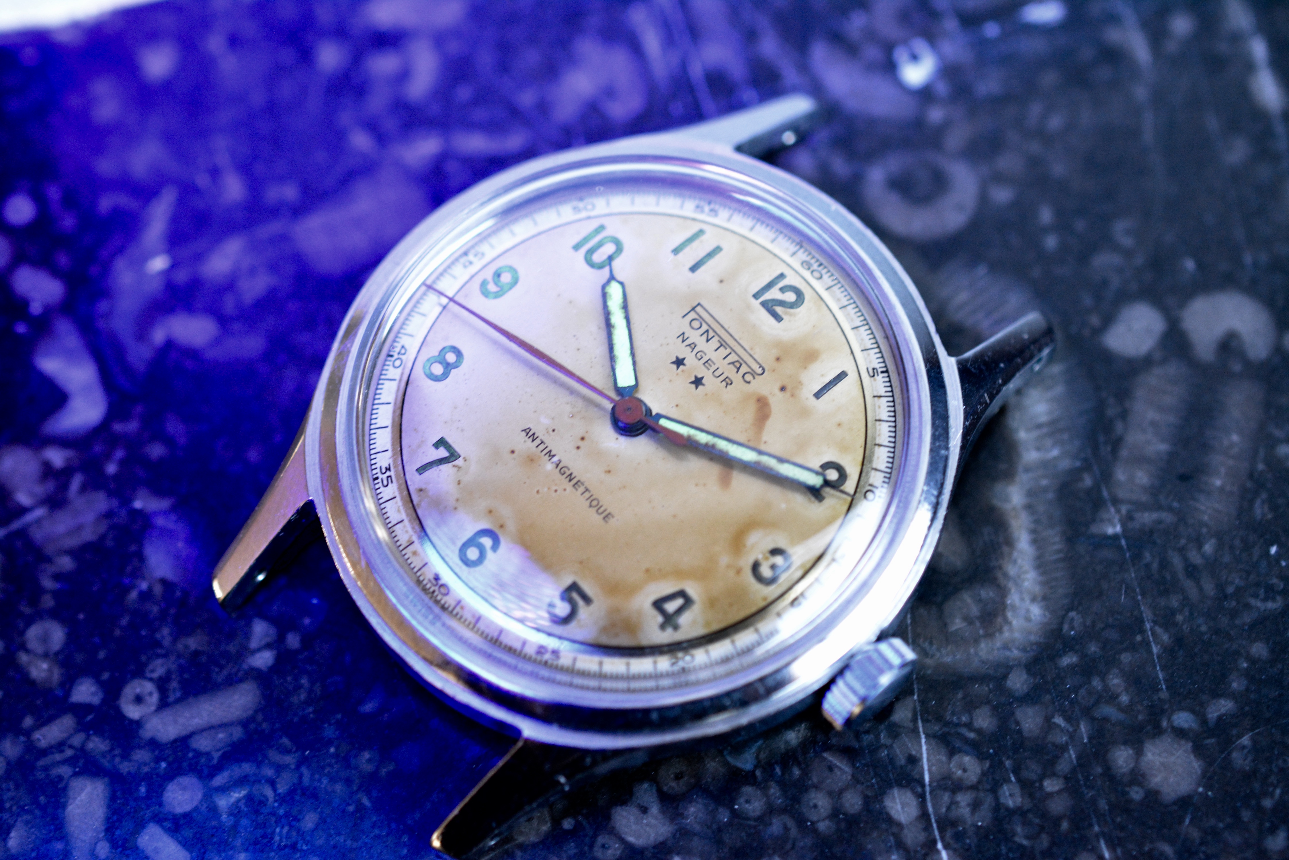 Dial has that amazing patina that you like or you don't. Last picture is taken under UV light.