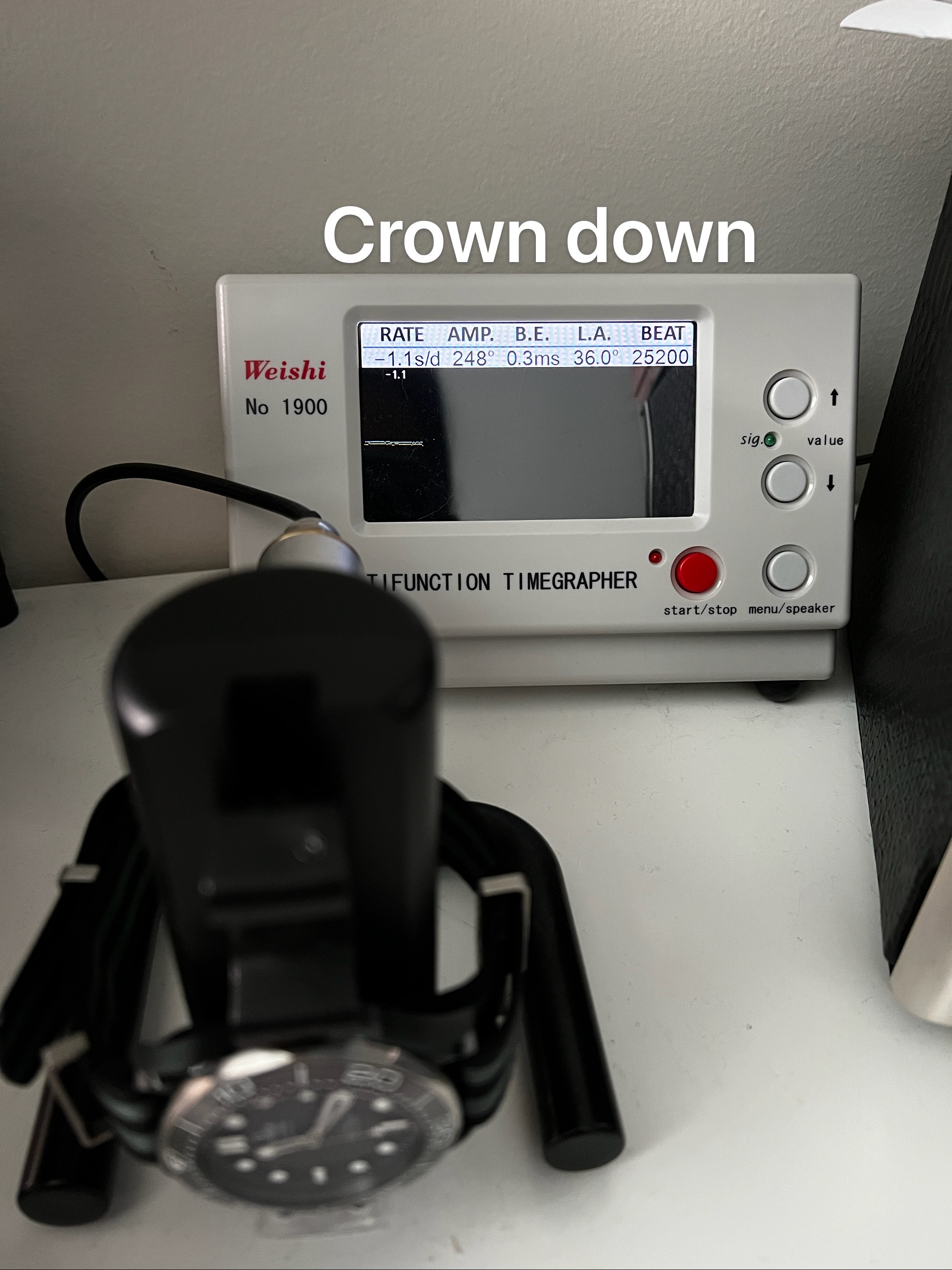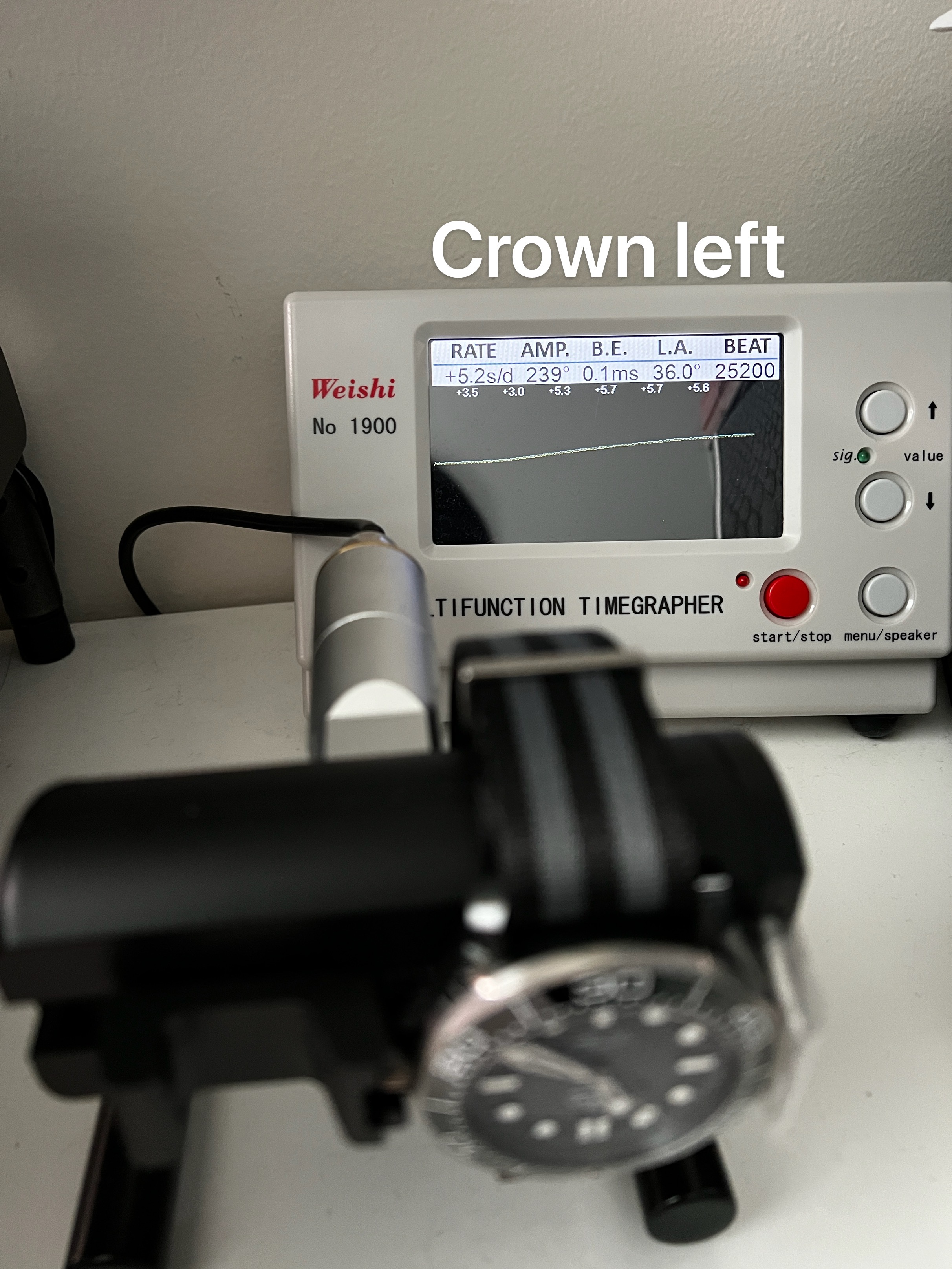 The thing is, on dial up position, the BE is 0.1ms which is quite nice. But when I turn it to crown right position, the BE will suddenly expand to 0.5(or 0.6 when the power reserve runs low). Some say it indicates wear on balance wheel pivot. But I would be surprised if my 2019 Seamaster started to show wear and tear already.