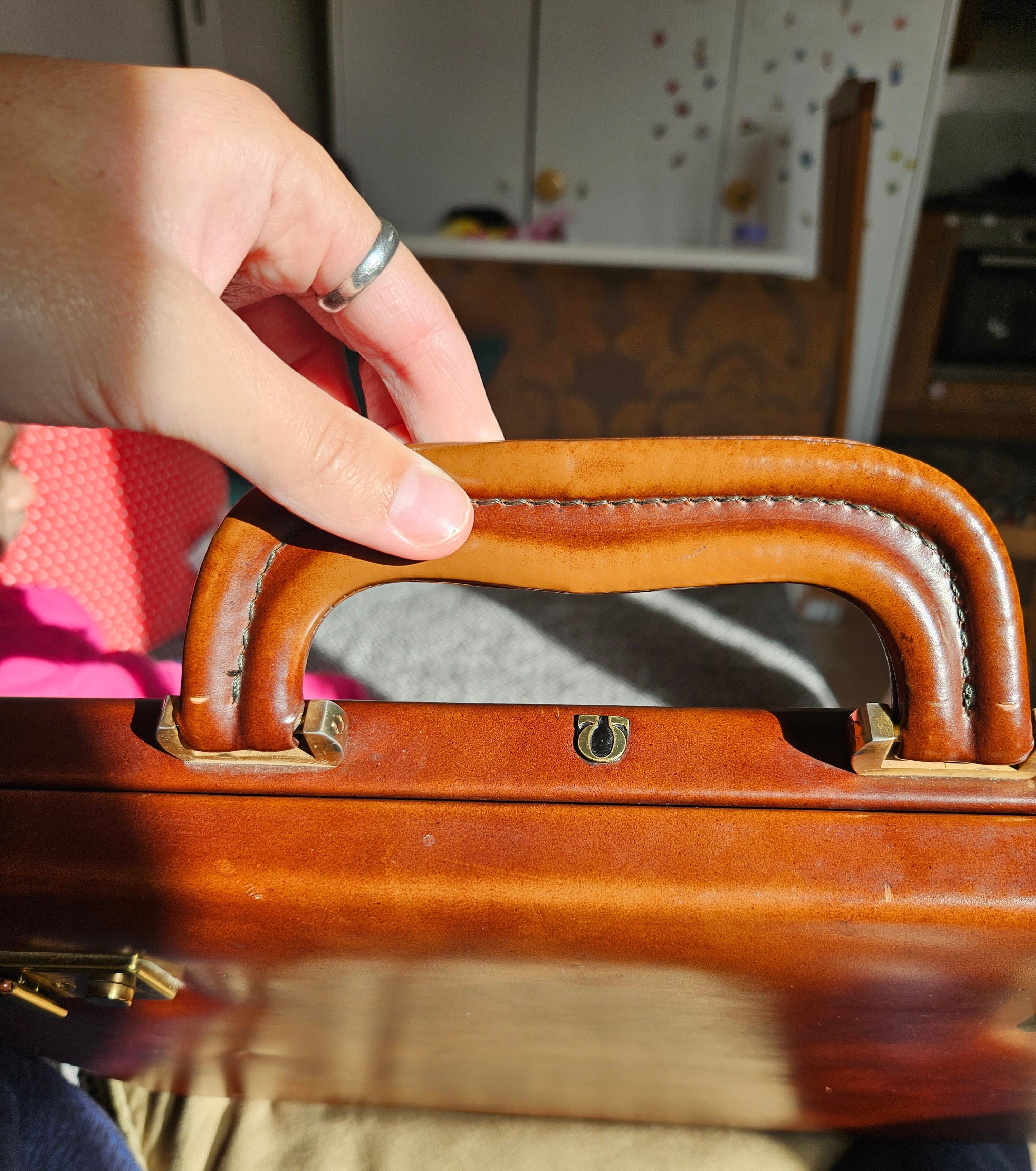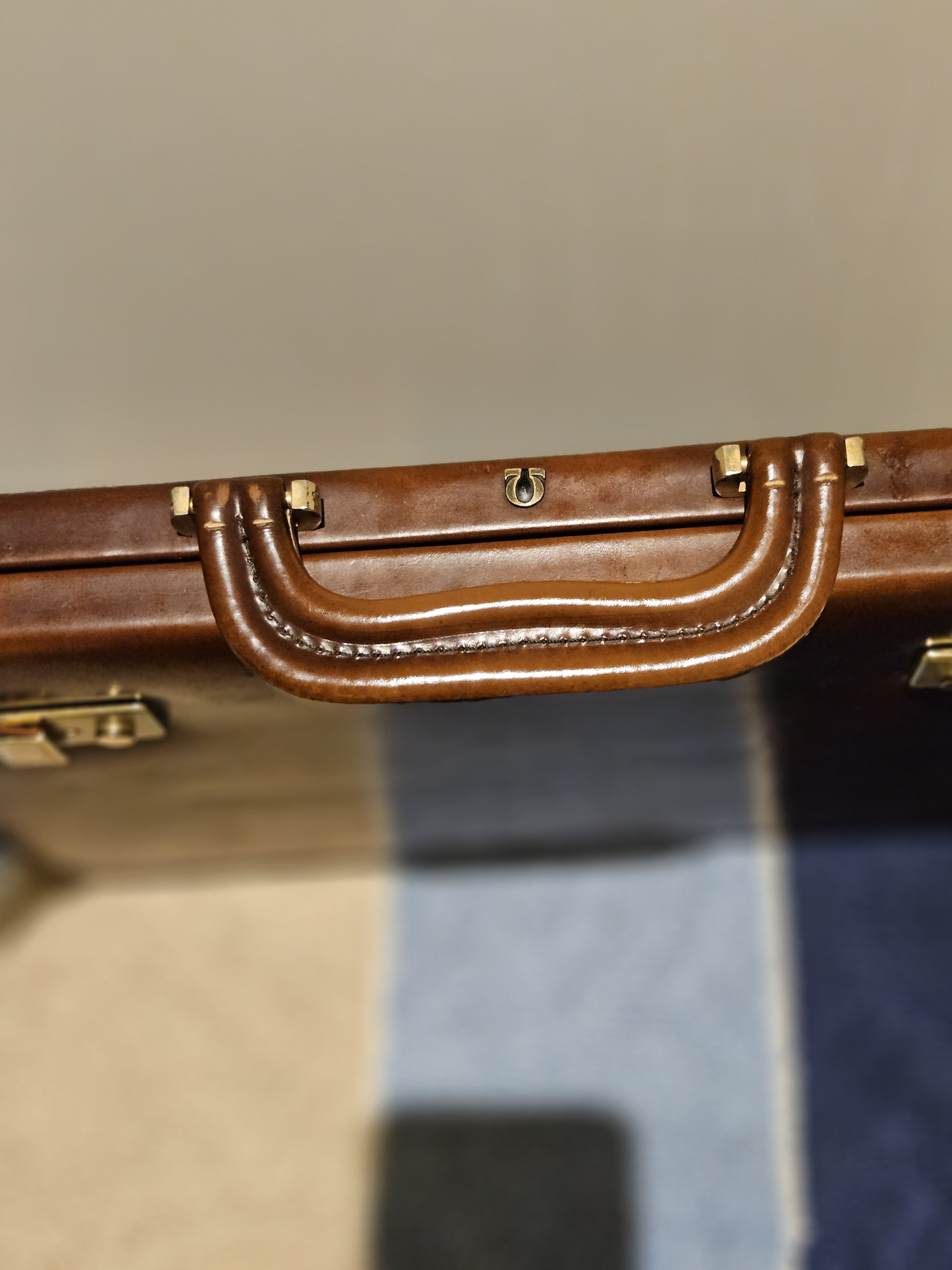 I got find an interesting item at the charity shop.And i think it may be worth some attention. It's a vintage tan colour man's briefcase. Details that caught my attention are metal Omega symbol on the outside of it. SHR.SWIP.2.5 written inside on the metal buttons and word Diana written on the Zipper .Tried to Google it out as much as possible and Omega symbol only comes as luxury watch makers company mark. SHR.SWIP.2.5 comes as vintage identification for Louis Vuitton bags.