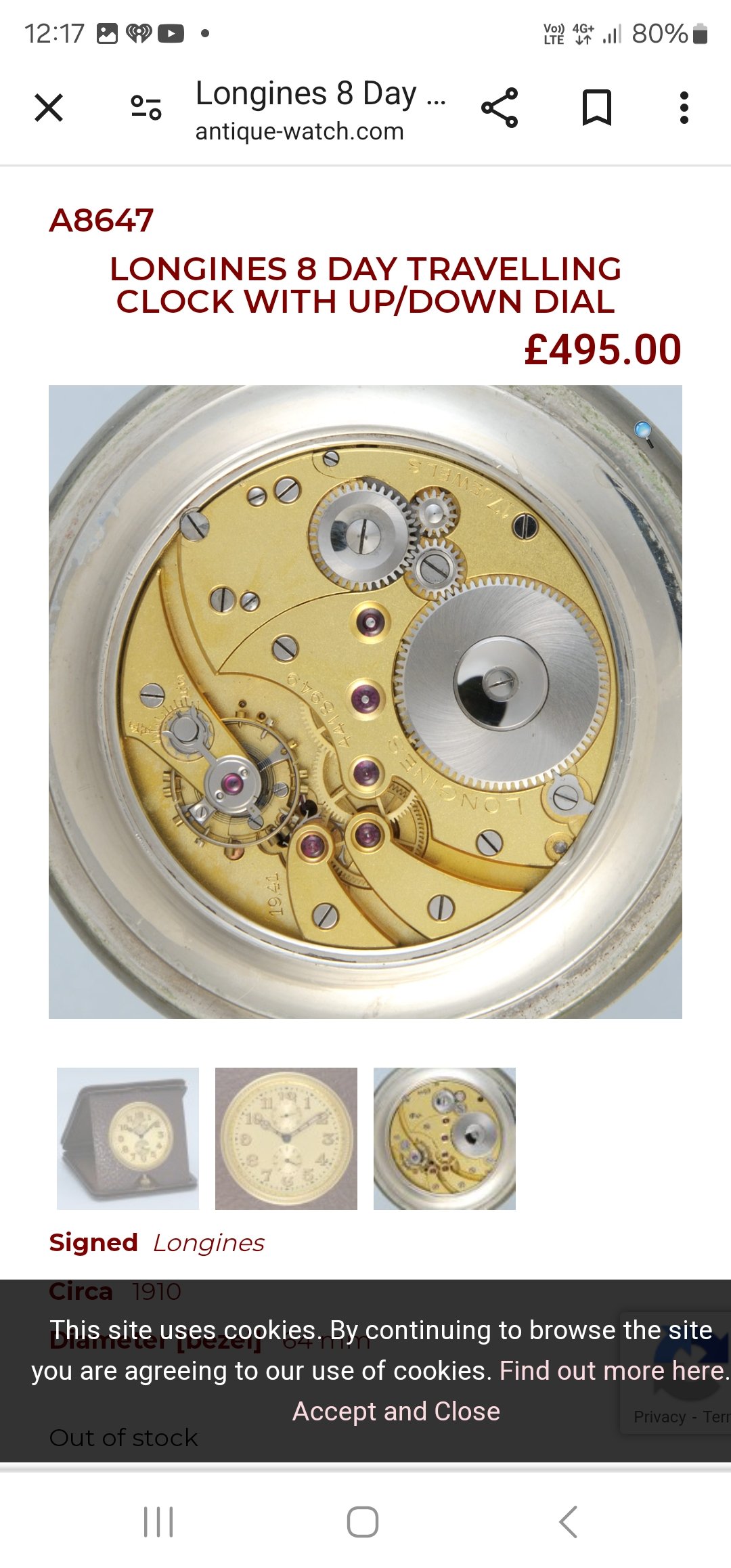 Posts 739 Likes 4,695 Raymondo5508 ·Apr 22, 2024 DirtyDozen12 Neat movement, but does not look like Longines. These are Longines 8 day travel clock movements I found on the net for comparison?