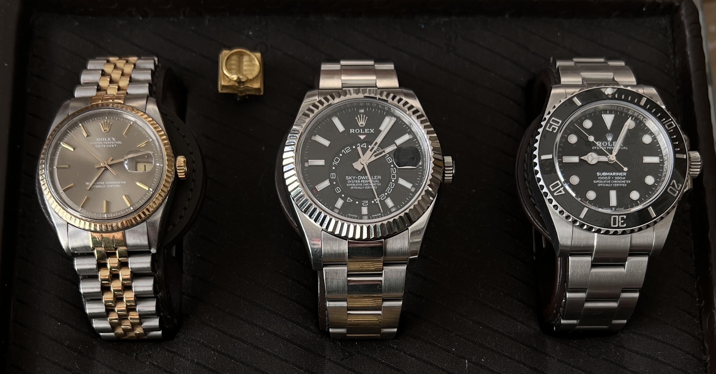 I don’t own any “curated” group of three from any one brand. I merely happen to have a few more than 3 Omega, exactly 3 Rolex, then less than 3 spattering of some other brands.