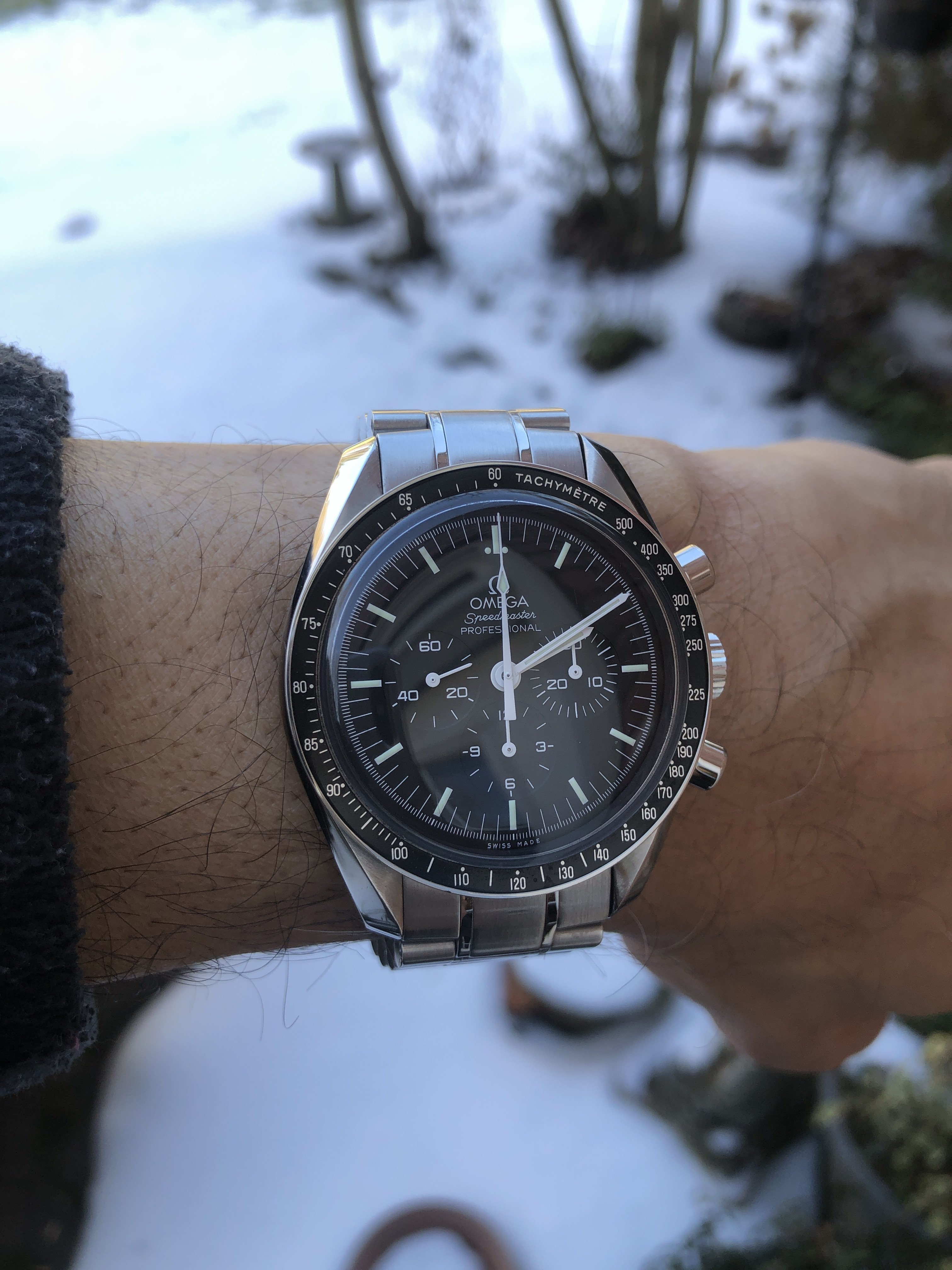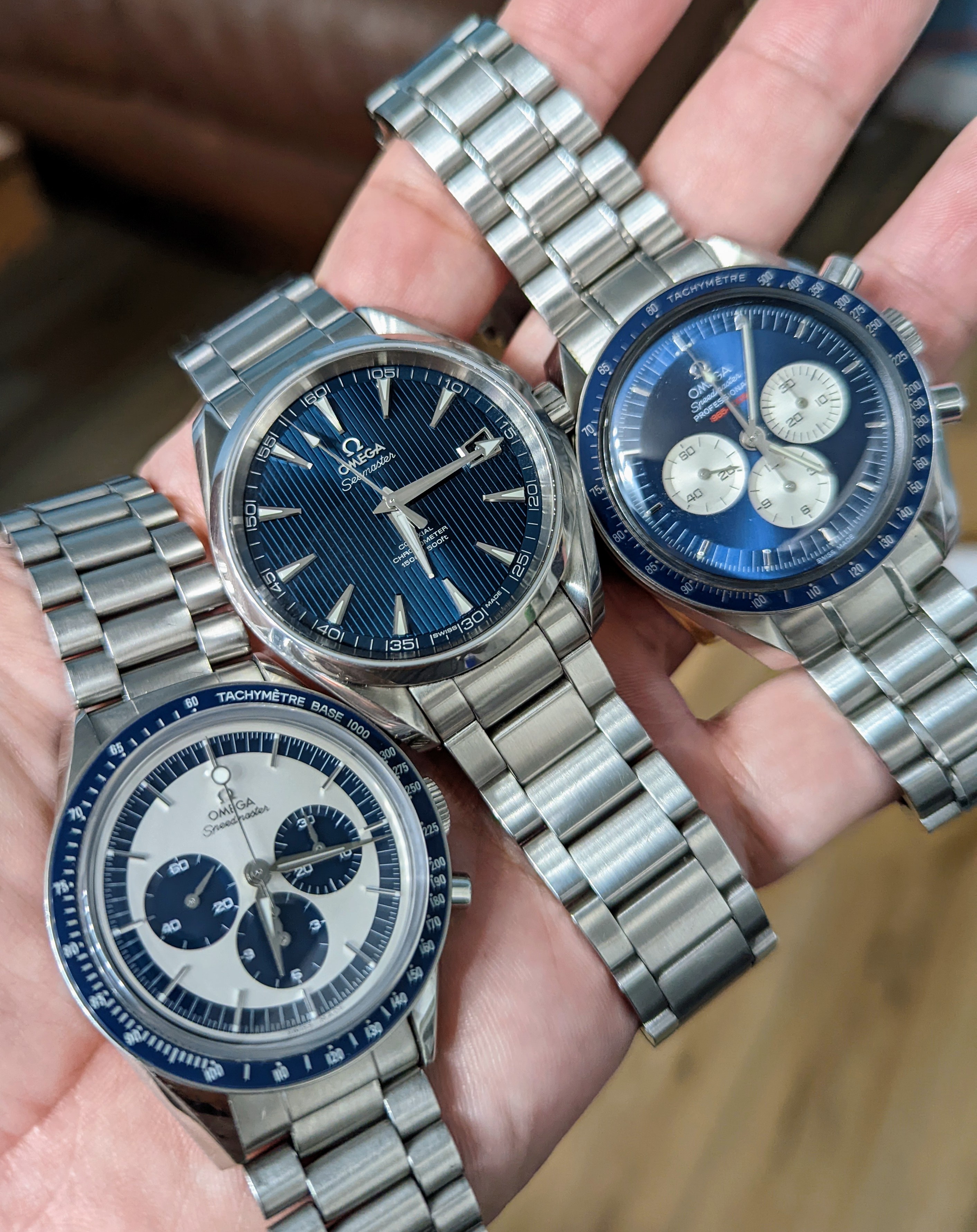 Three of my favorite watches. I would not be able to give up either Speedmaster if I had to go down to three watches. On the third, it is tough. The AT was a grail watch for me, but I don't often wear it. I have owned it for 7 years. About due for a service. It's from 2013, but I bought used used in 2014/15.