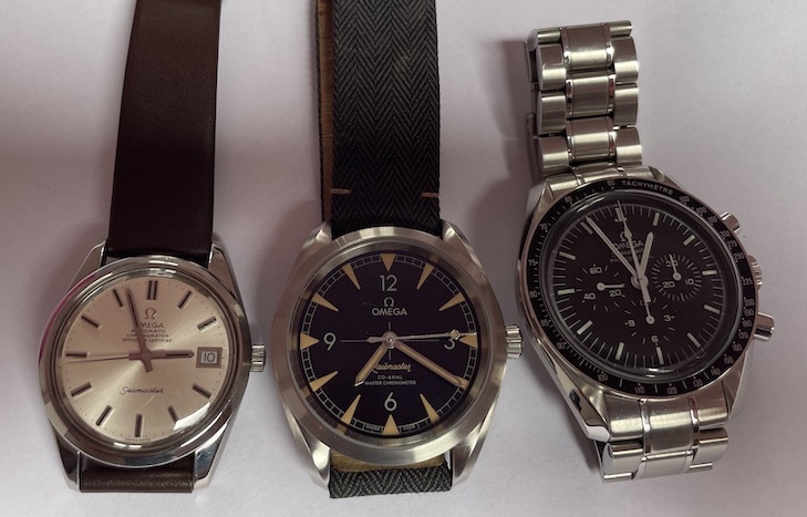 168.0061 to dress up a bit, Railmaster for tough work and a moonwatch in case wanna take a walk on the moon at a mild summer night.