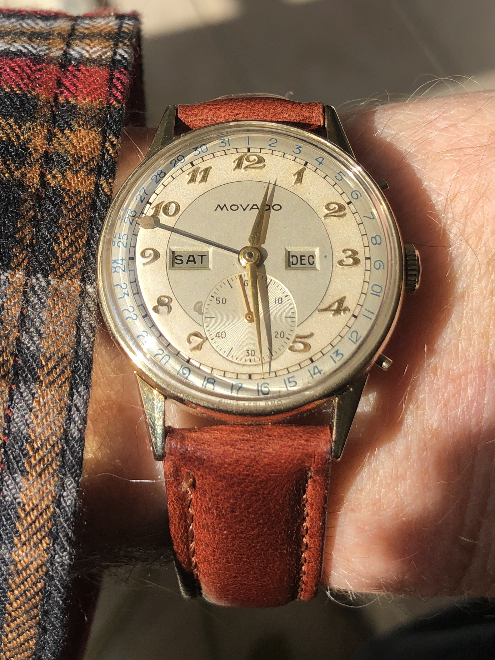 View attachment 1365304 Some modest UG. Members like LarryS have posted some way more impressive models. The smallest here is 14k. I bought it at DuMouchelles in Detroit for peanuts. Serviced in 2020. The tankish one is 18k. Serviced in 2019. Likely not worth much more than gold value but I am glad I saved it. It was destined to the crucible. The chrono is a Compur with seldom seen fisherman’s knot. Serviced December 2020.