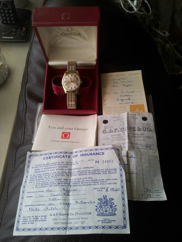 My first Omega purchased for £250 with original paperwork and receipt, I even managed to visit the shop it was originally purchased from in 1972 at the grand cost of £38.00 ha ha.