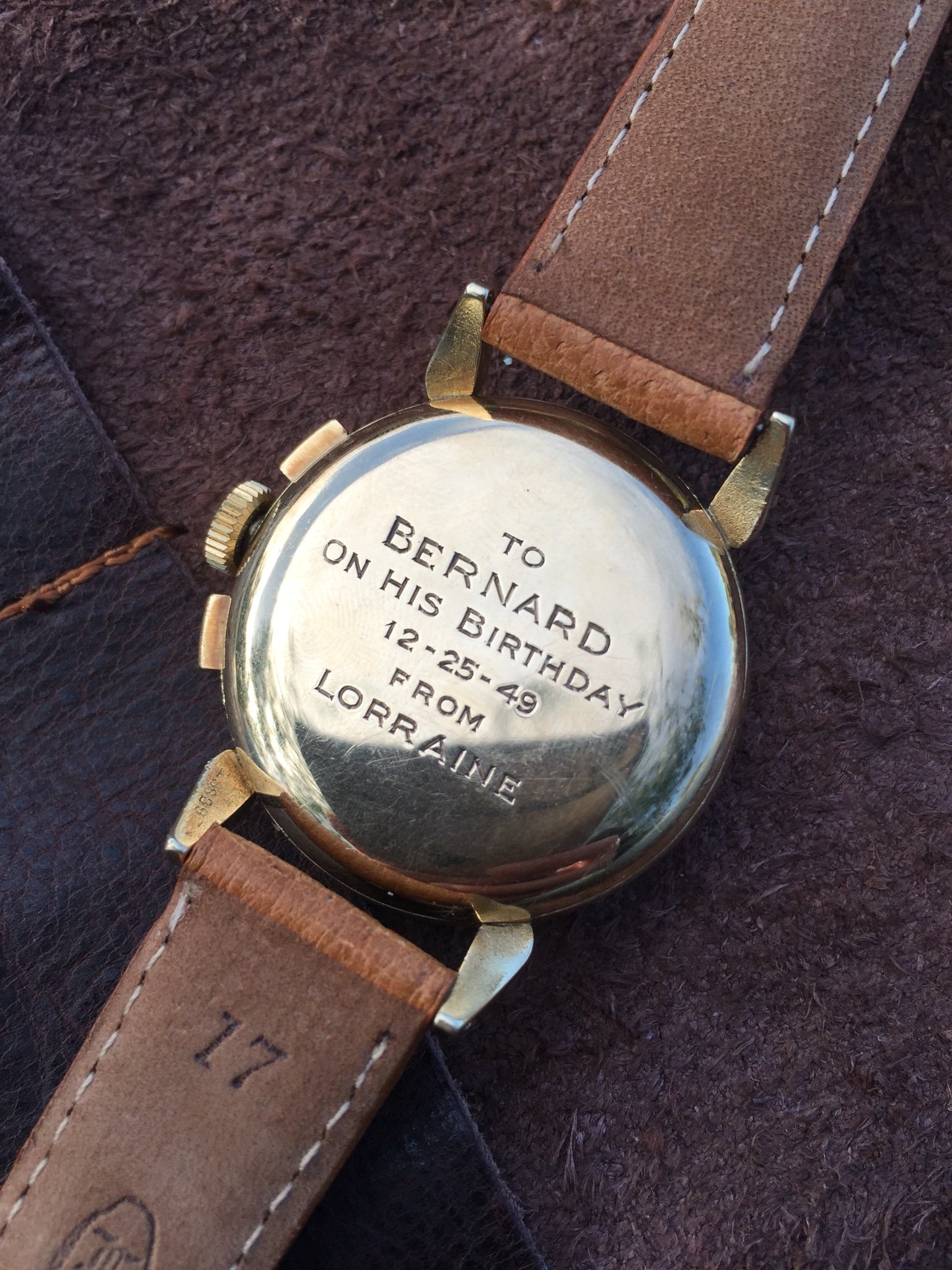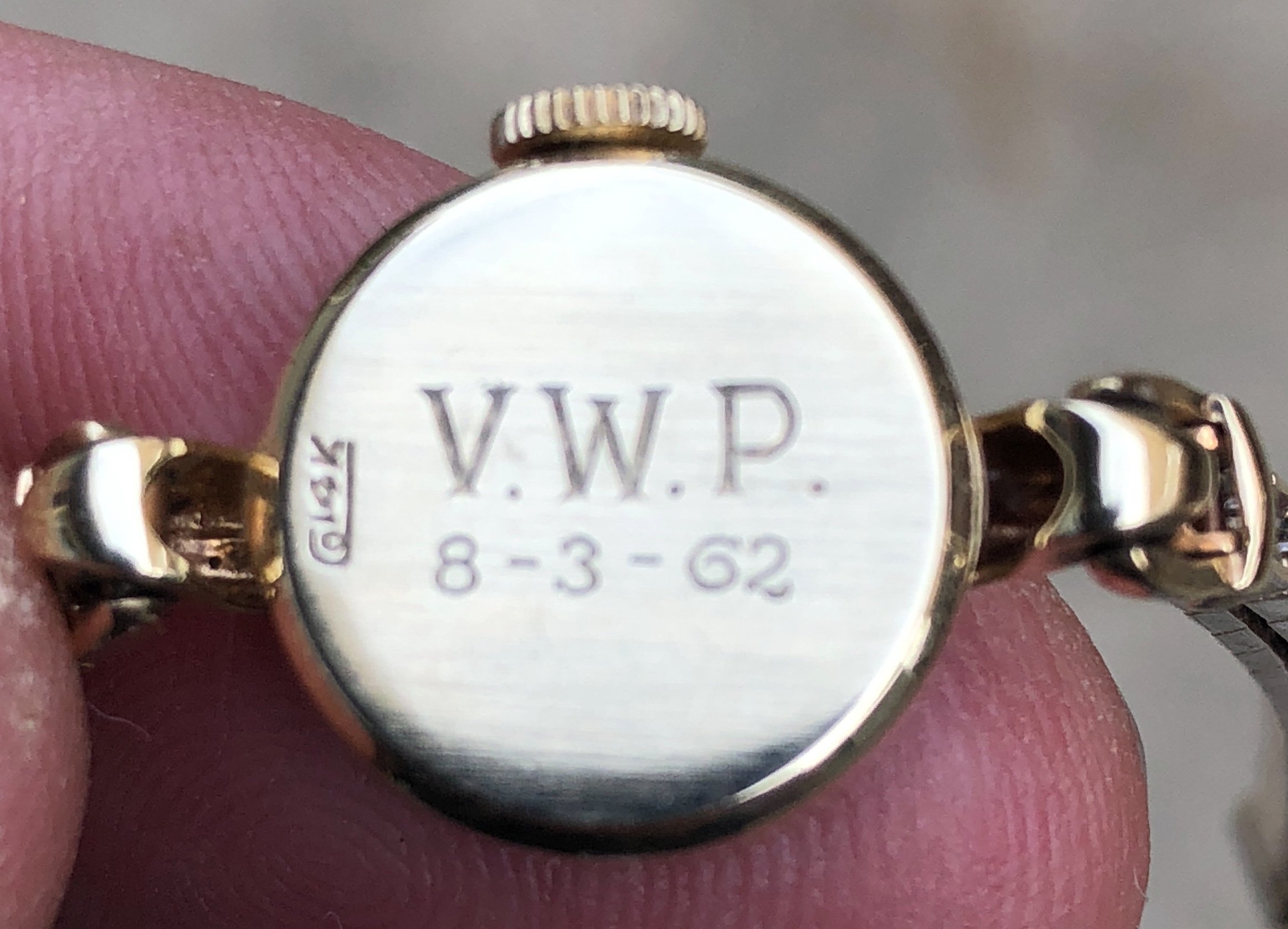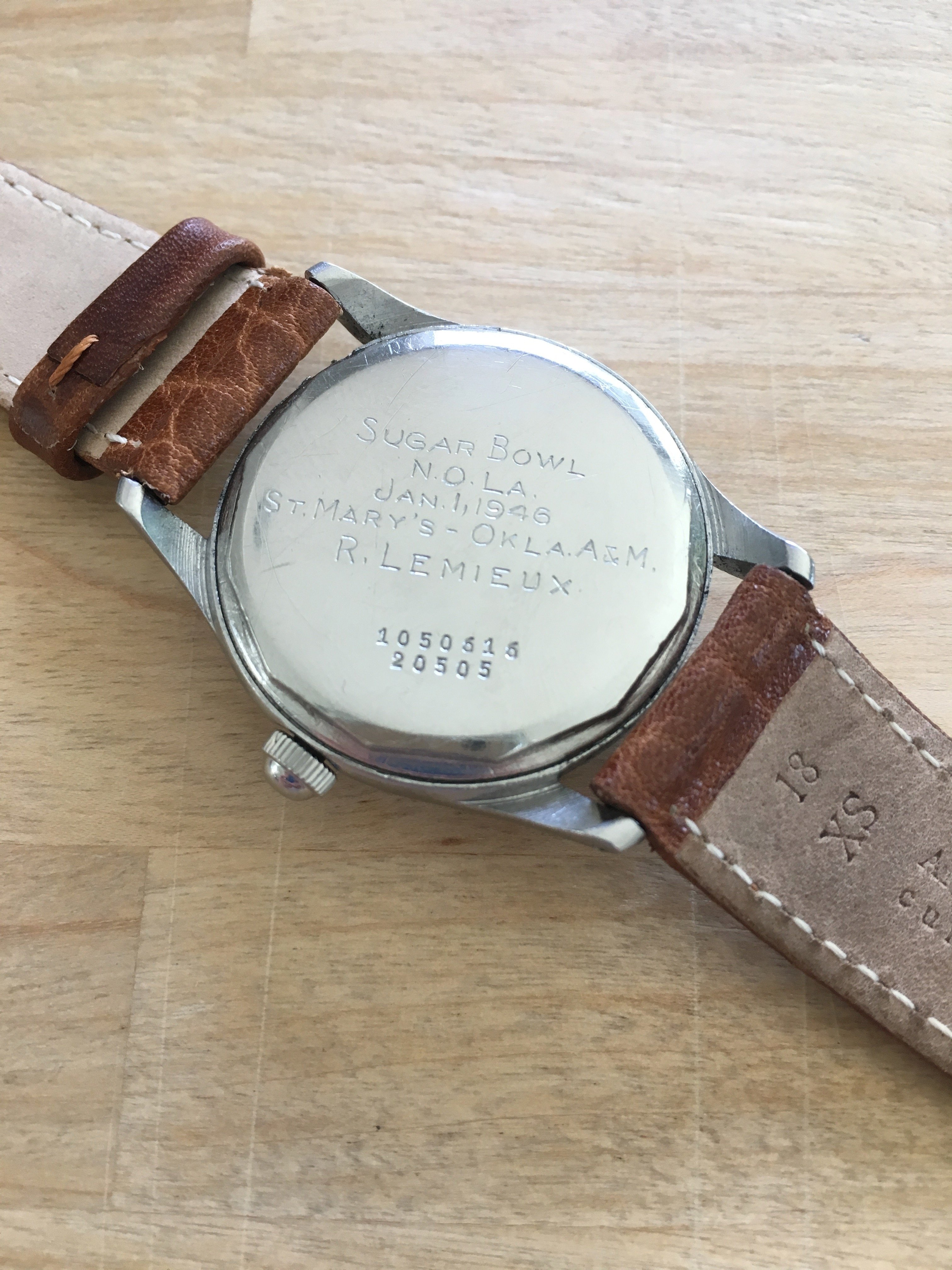 I have this on a virtually unidentifiable Mohawk Watch Co. watch. It was from an aunt I never met to an uncle I never met for Christmas