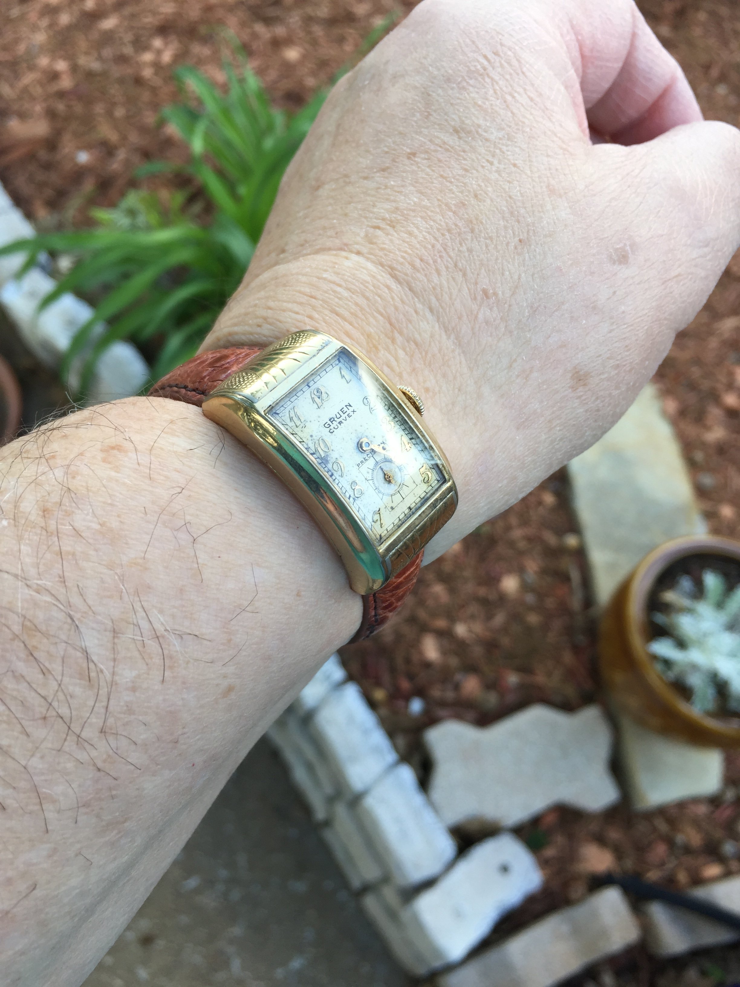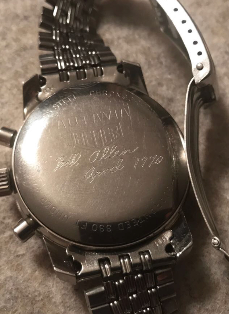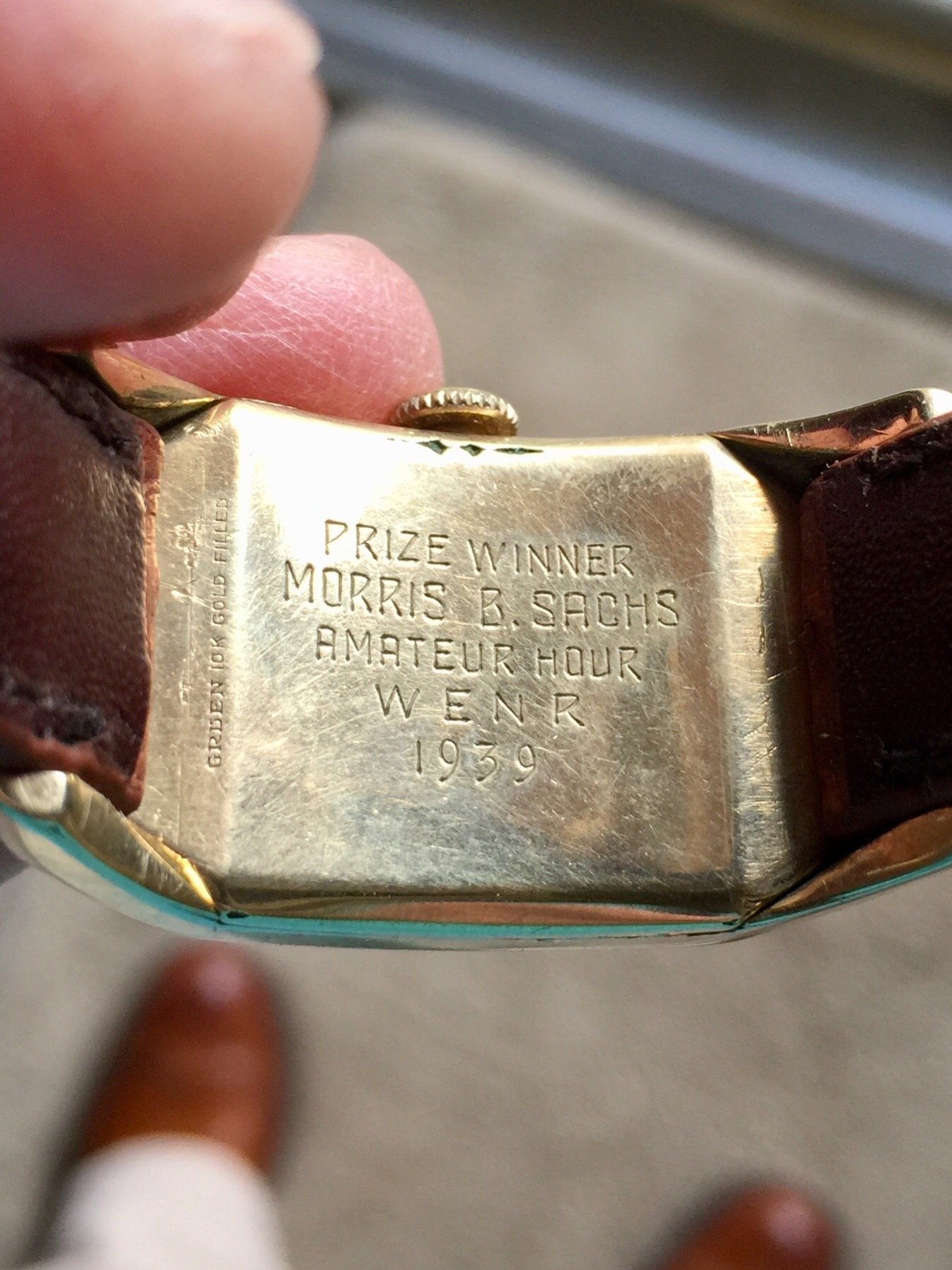 I have this on a virtually unidentifiable Mohawk Watch Co. watch. It was from an aunt I never met to an uncle I never met for Christmas