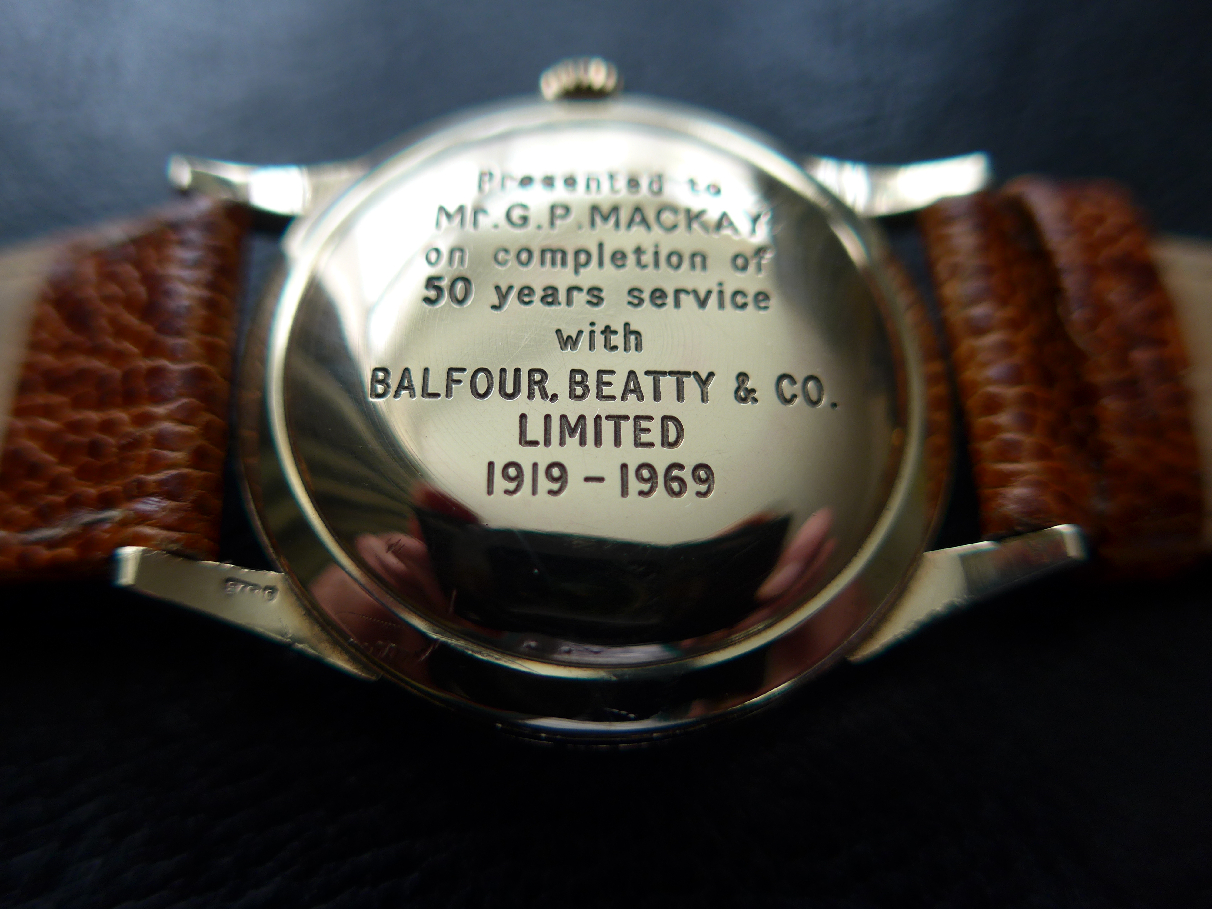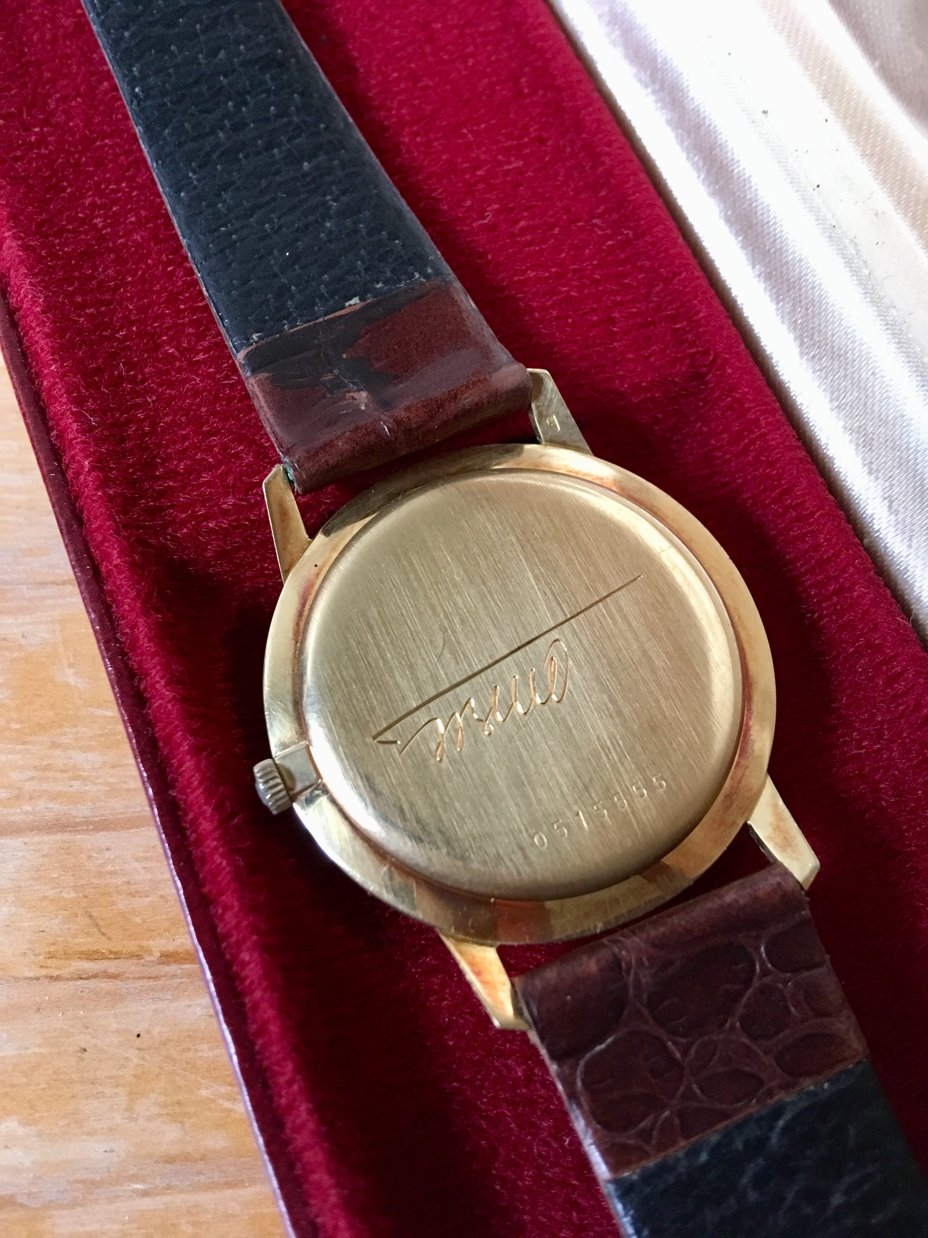 The signature of Marshal Tito, former President of Yugoslavia post WWII. A number of manufacturers would have his signature engraved on watches destined for the Yugoslavian market. This one is on a very cool solid 18k gold Marvin.