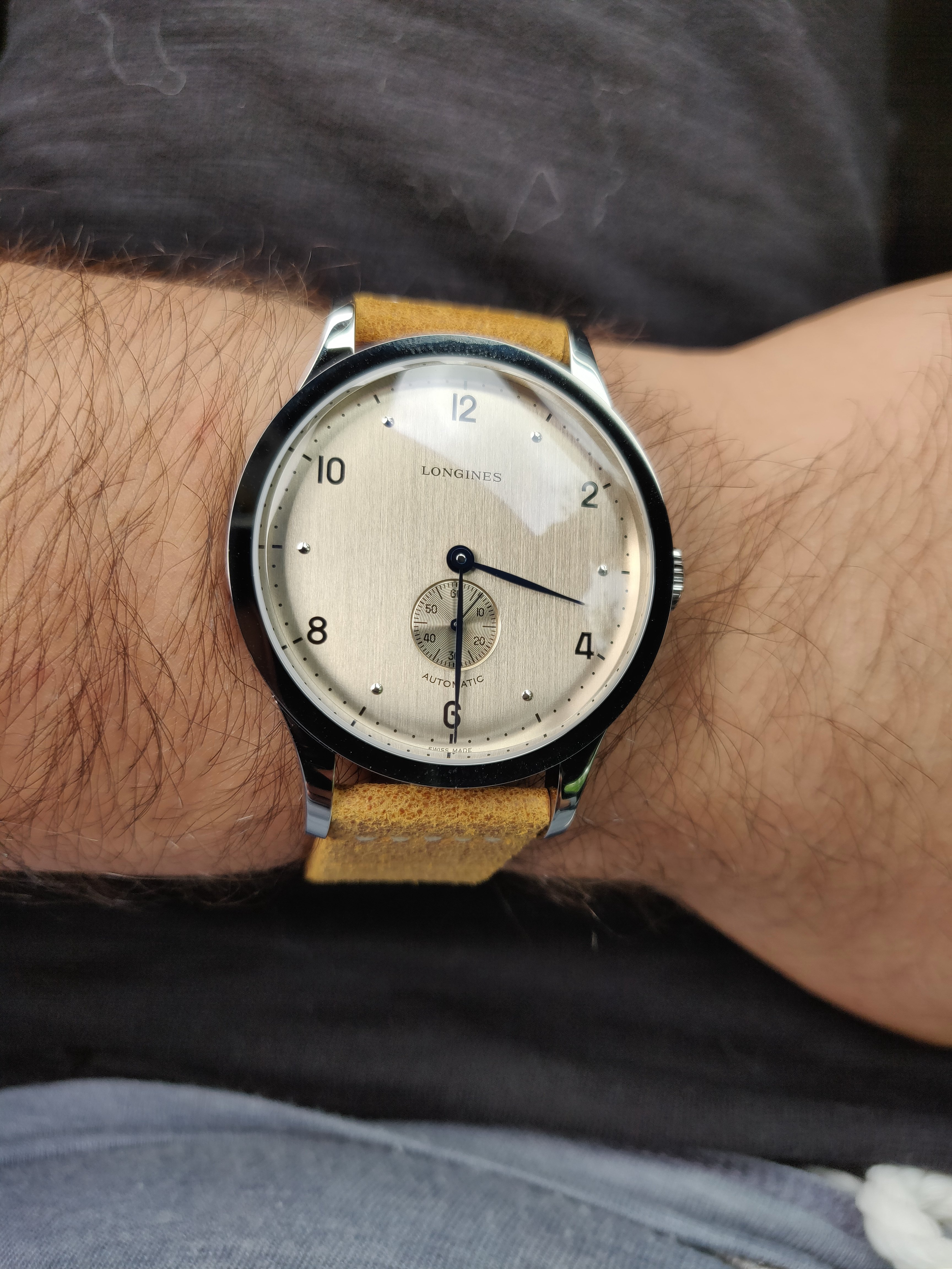 My favorite jeans are faded....my favorite jacket is worn leather with scars from the cow's life and my own....my favorite boots are scuffed and worn at the heels....I think your Longines is wonderful and well traveled.