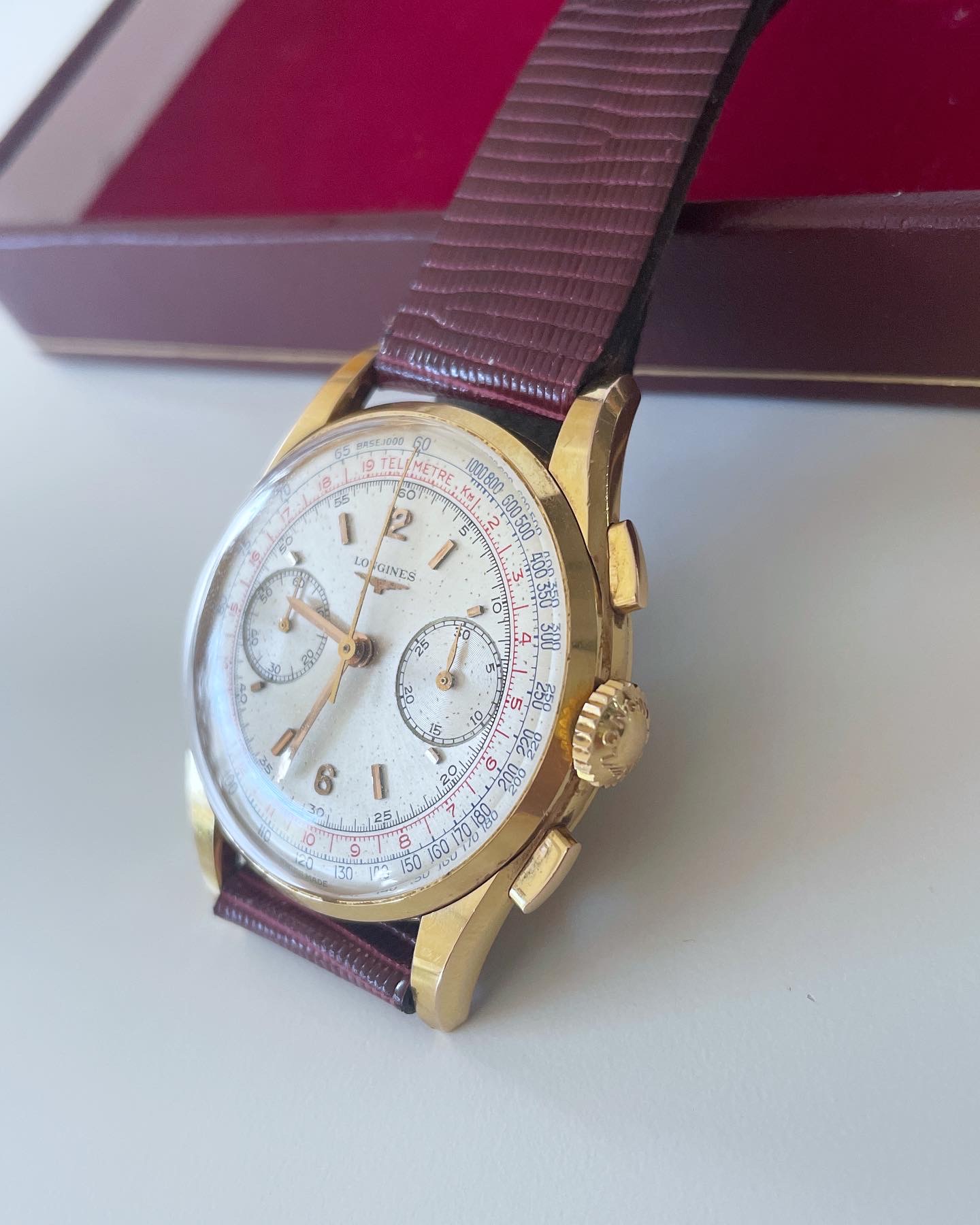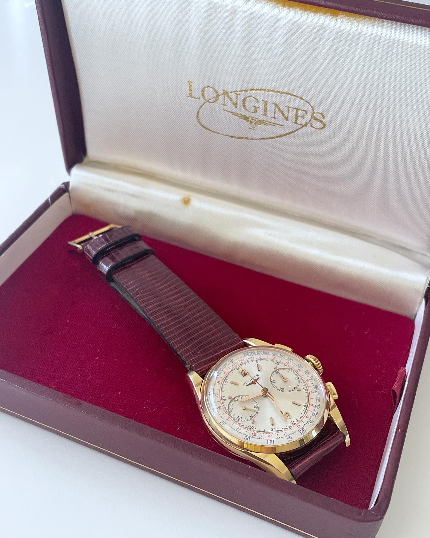 That lovely case reminds me of this that I hesitated to buy a couple of years ago from an antiques dealer in Vienna. He wanted 4,000 euros for it which was too rich for me at the time and in my head, just going off my gut as I couldn't find another like it, was about double what I would have paid. I did email Longines for info and it tallied with what the dealer said. It still resides in my memory though as it was just gorgeous....34mm exc crown.