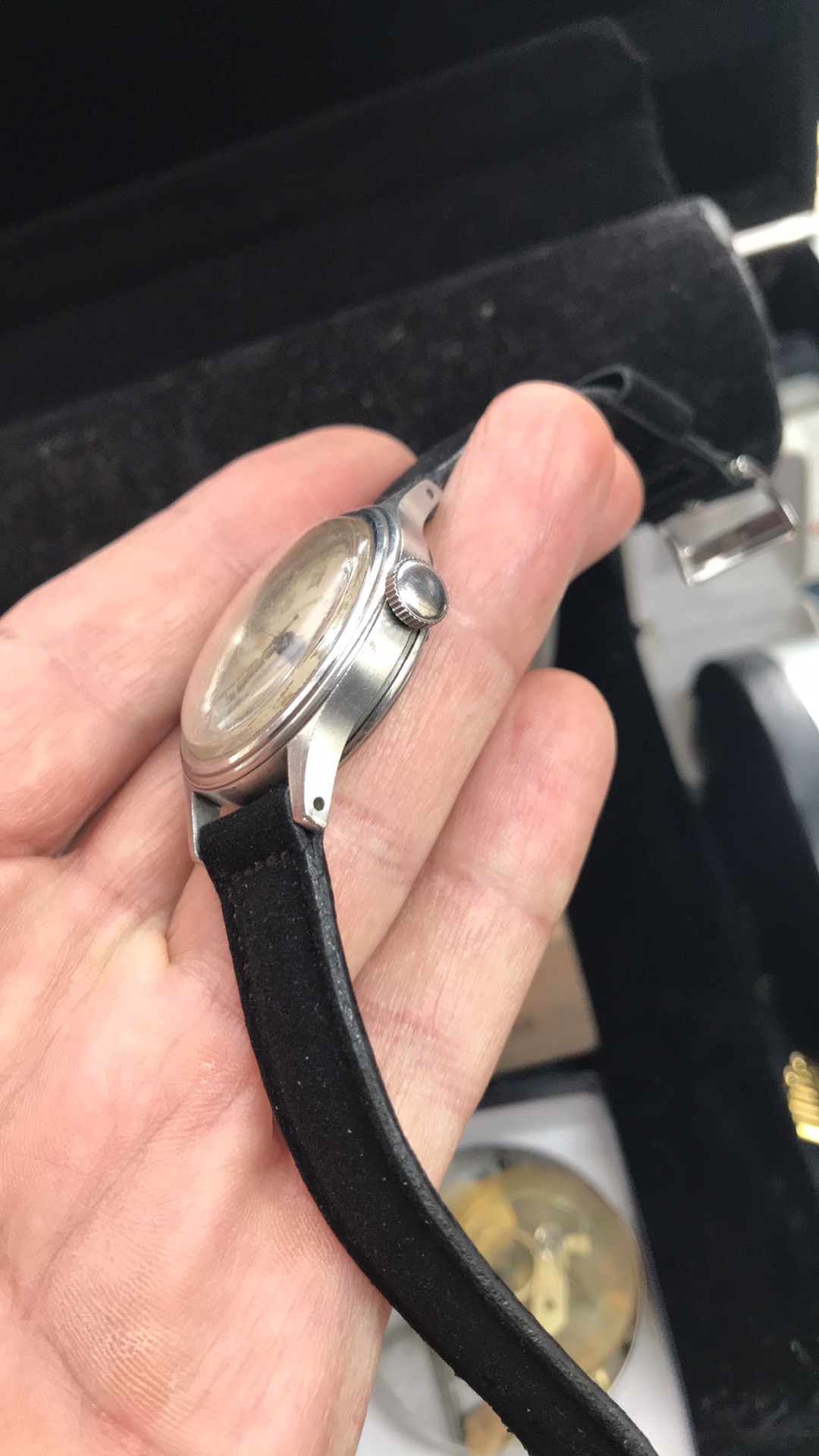 Very nice all original condition, lower movement number, it has it all. So have fun with that fine piece 👍 and greetings from mine (mvm. 9830..., sent to Sweden, August 1956)