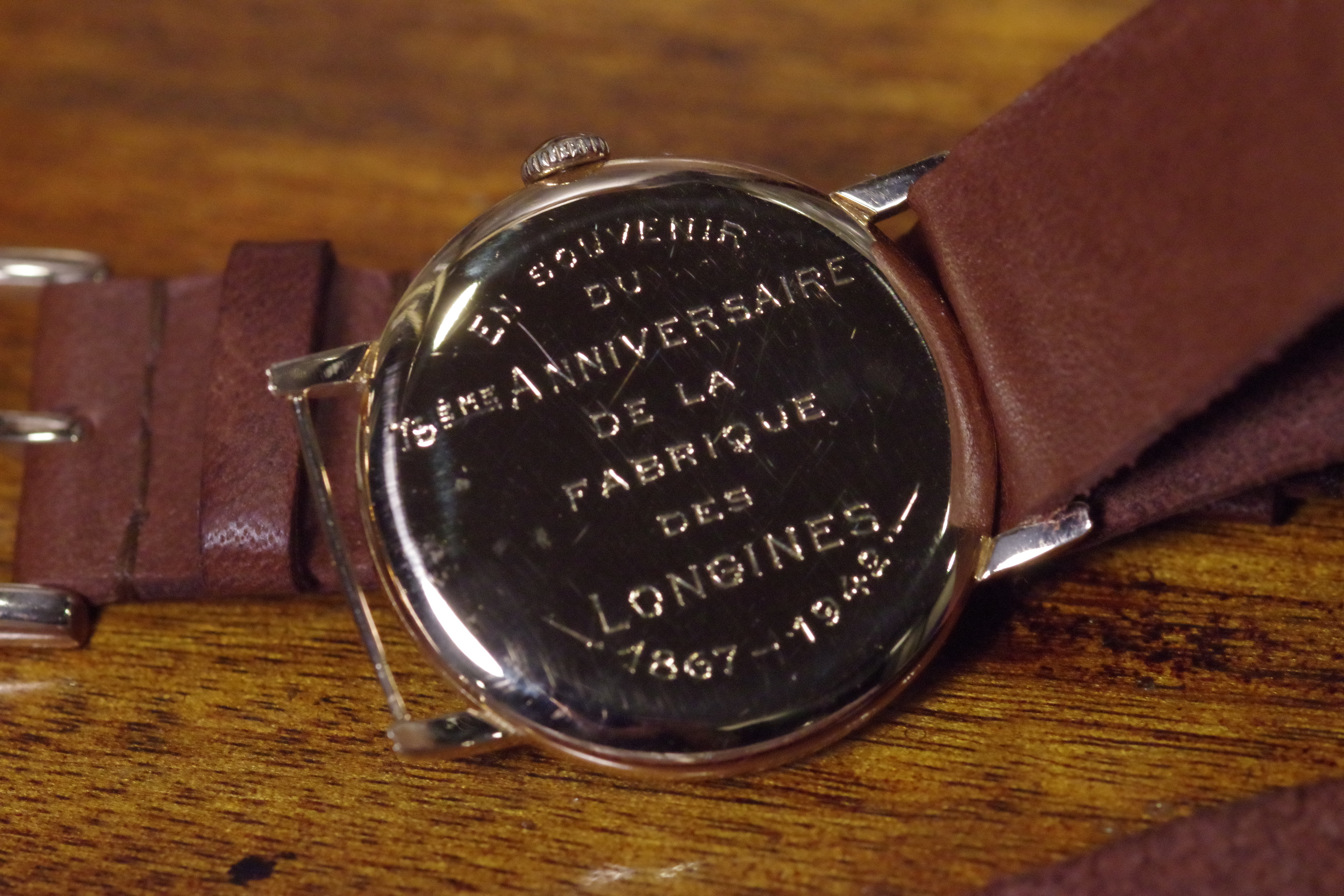 "It is fitted with a Longines manually wound mechanical movement, caliber 23. M and was invoiced on 12 December 1942 to Longines"