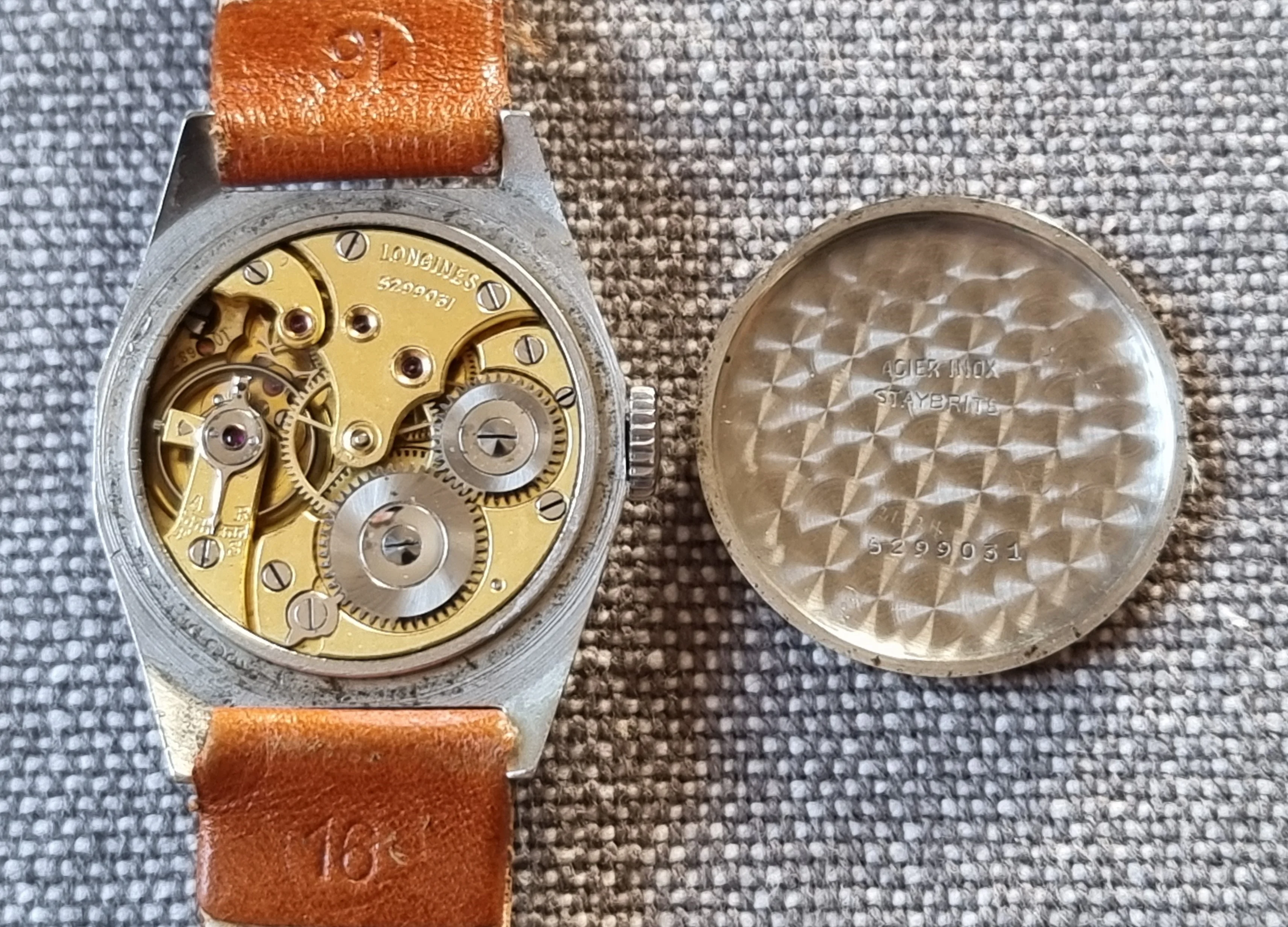 Neat example, with "Longines" on the outside of the case-back and "5 ADJ." on the movement, which looks to be a caliber 23M.