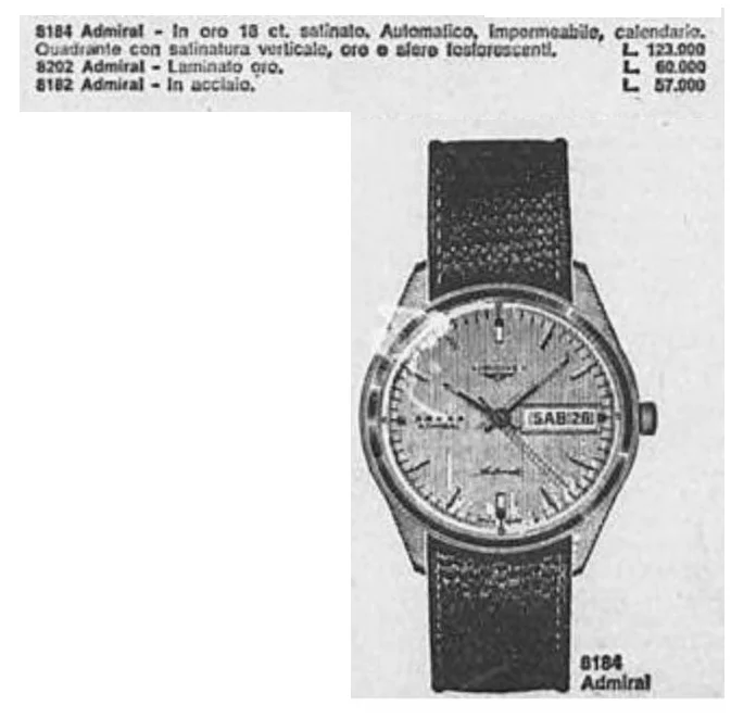 After much research, I managed to find an exact ad for my Longines model, for the Italian market, so you can know the exact price of the time and the comparison with other models of the manufacturer, as well as the effort in monthly payrolls that had to be made to acquire it.