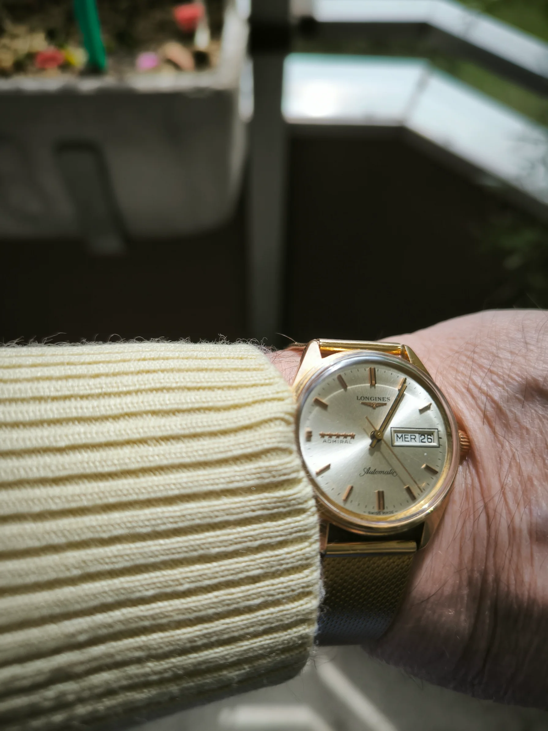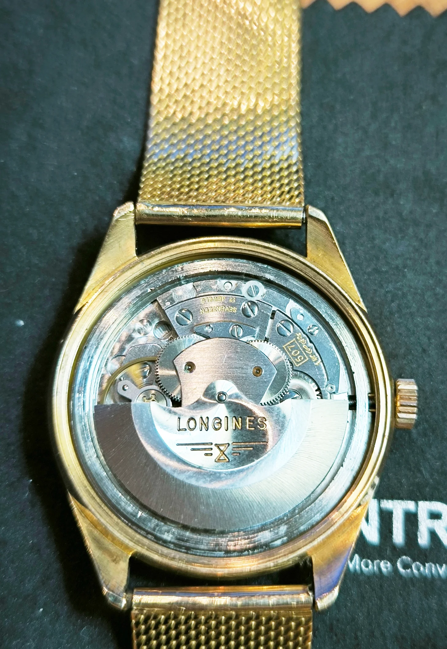 The bracelet pleases me greatly as it consists of a solid gold milanese, 18K) which is very much in the taste of the time, although it is not original Longines.