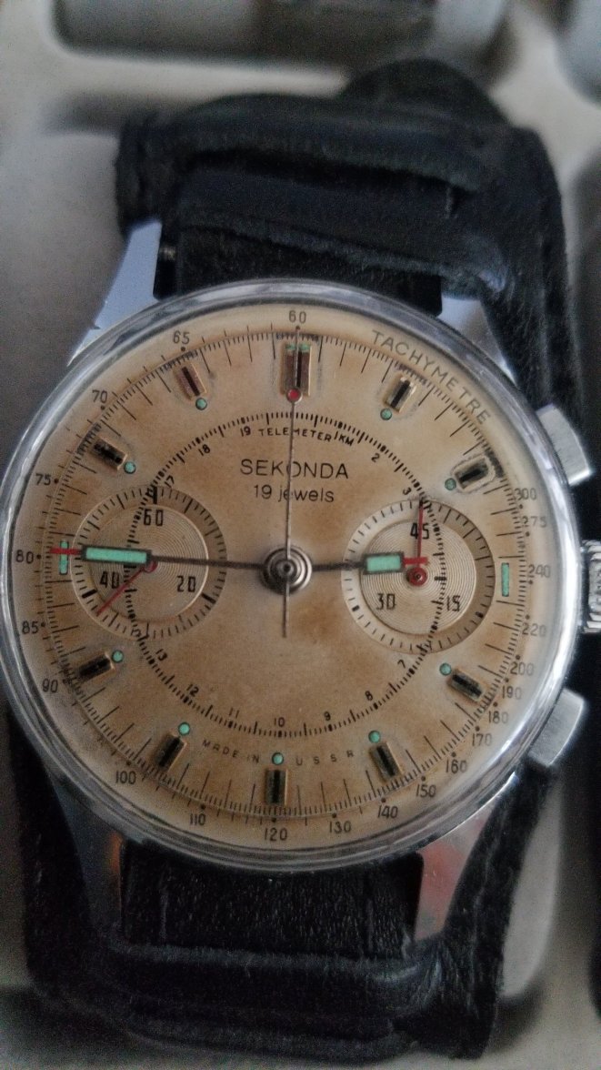 The Sekonda dedicated to a Russian Major from his comrades. I have seen better dials but the whole dial seems nicely aged to me. Regardless, it was the inscription that sold it for me.