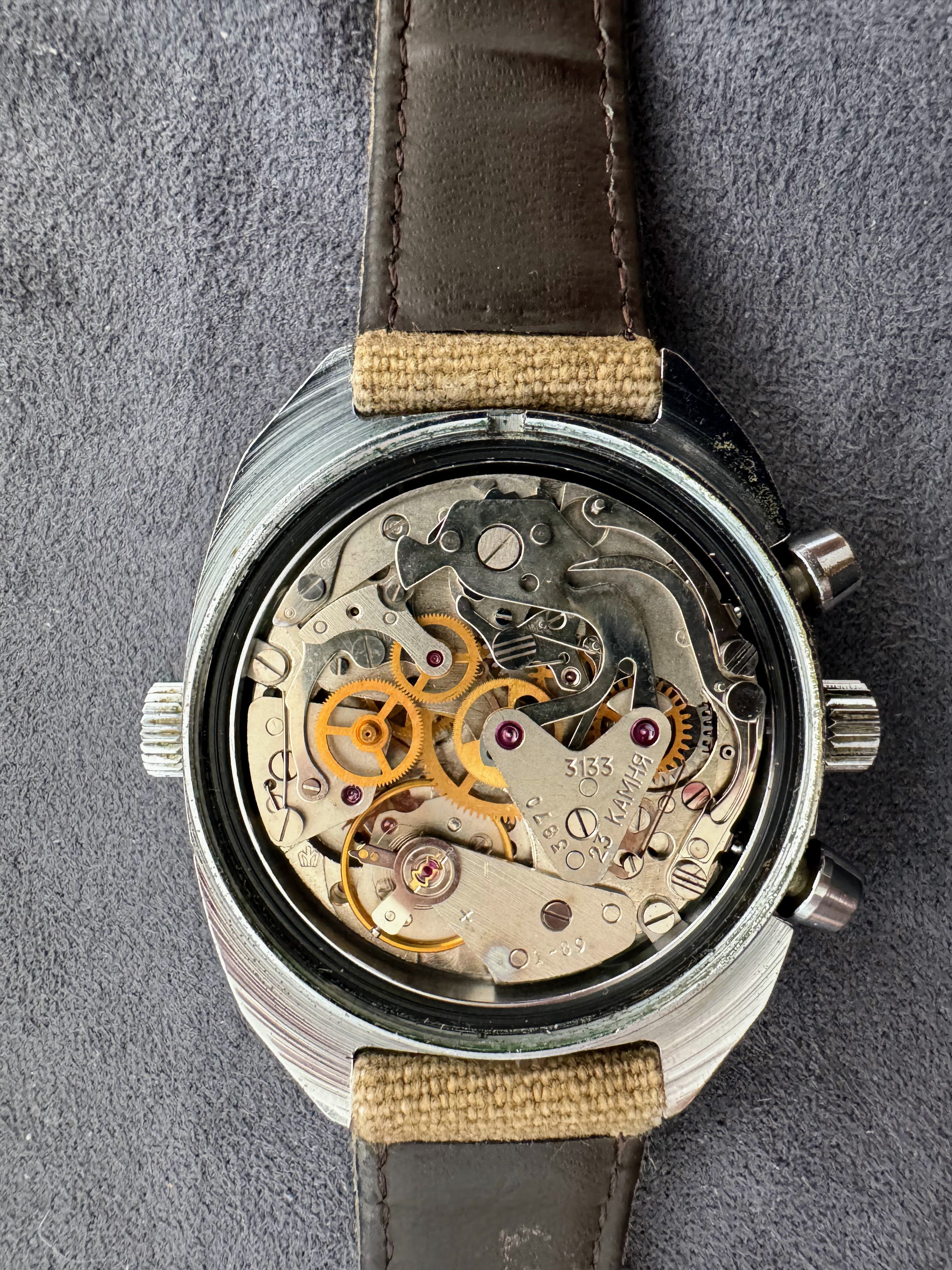 I also dug out an early, first generation 1964 Poljot Strela 6-12 dial 3017 Chronograph. High 18000’s movement serial number and rhombus logo. Again, I mainly bought it for the patina on the dial.