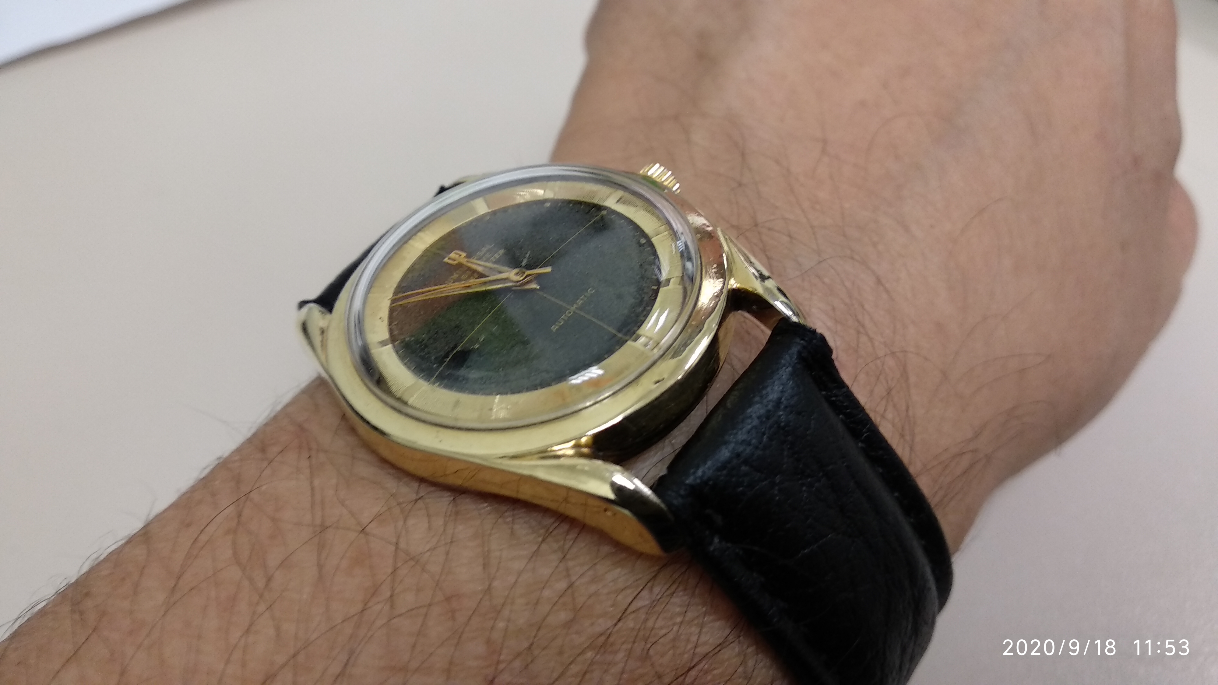 Univeral Geneve calibre bumper 138SS y circa de 1955 con plaque de 300 micrones de oro y acero inoxidable.