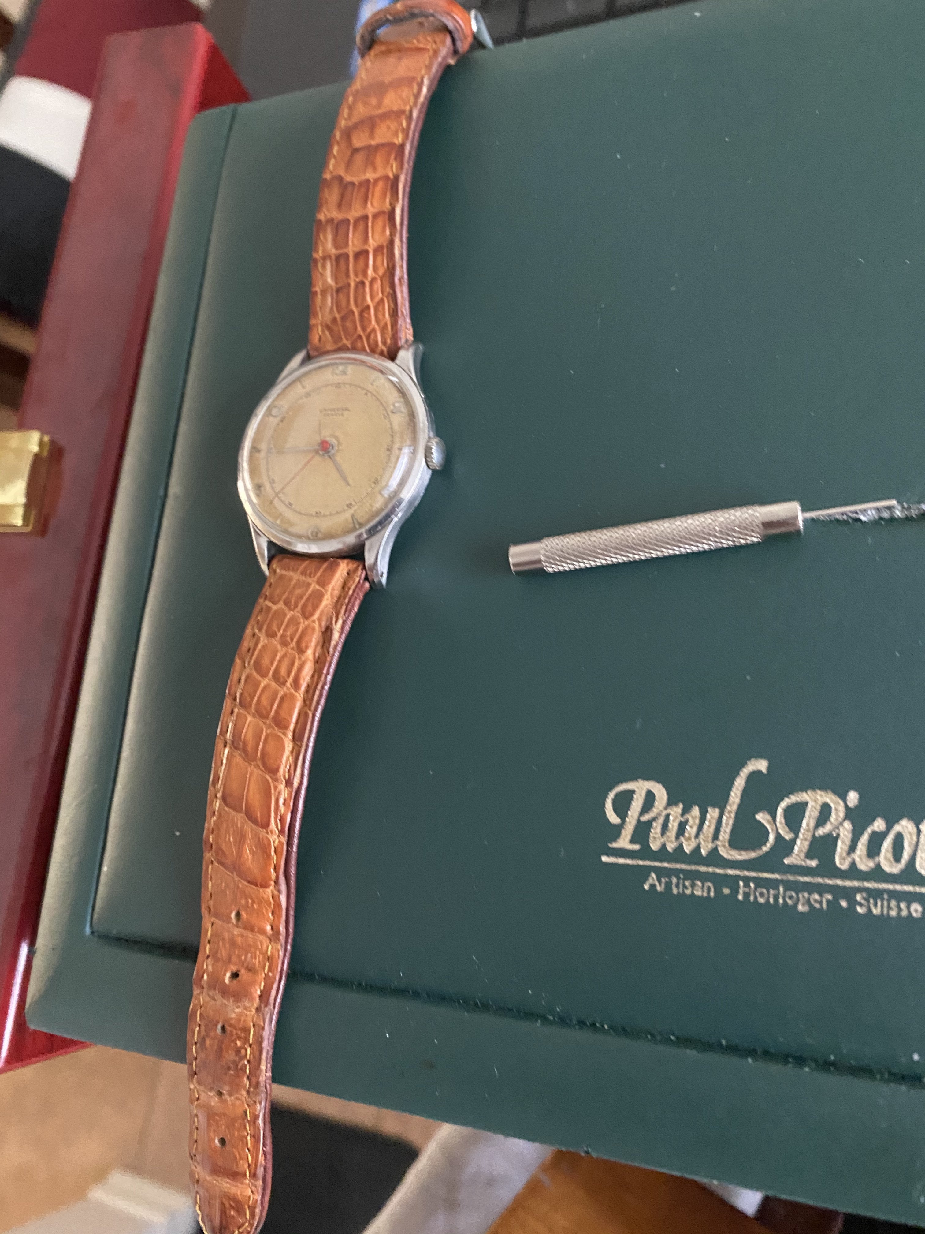 love that vintage pigskin strap on it but unfortunately it takes 17mm straps and not 16mm..