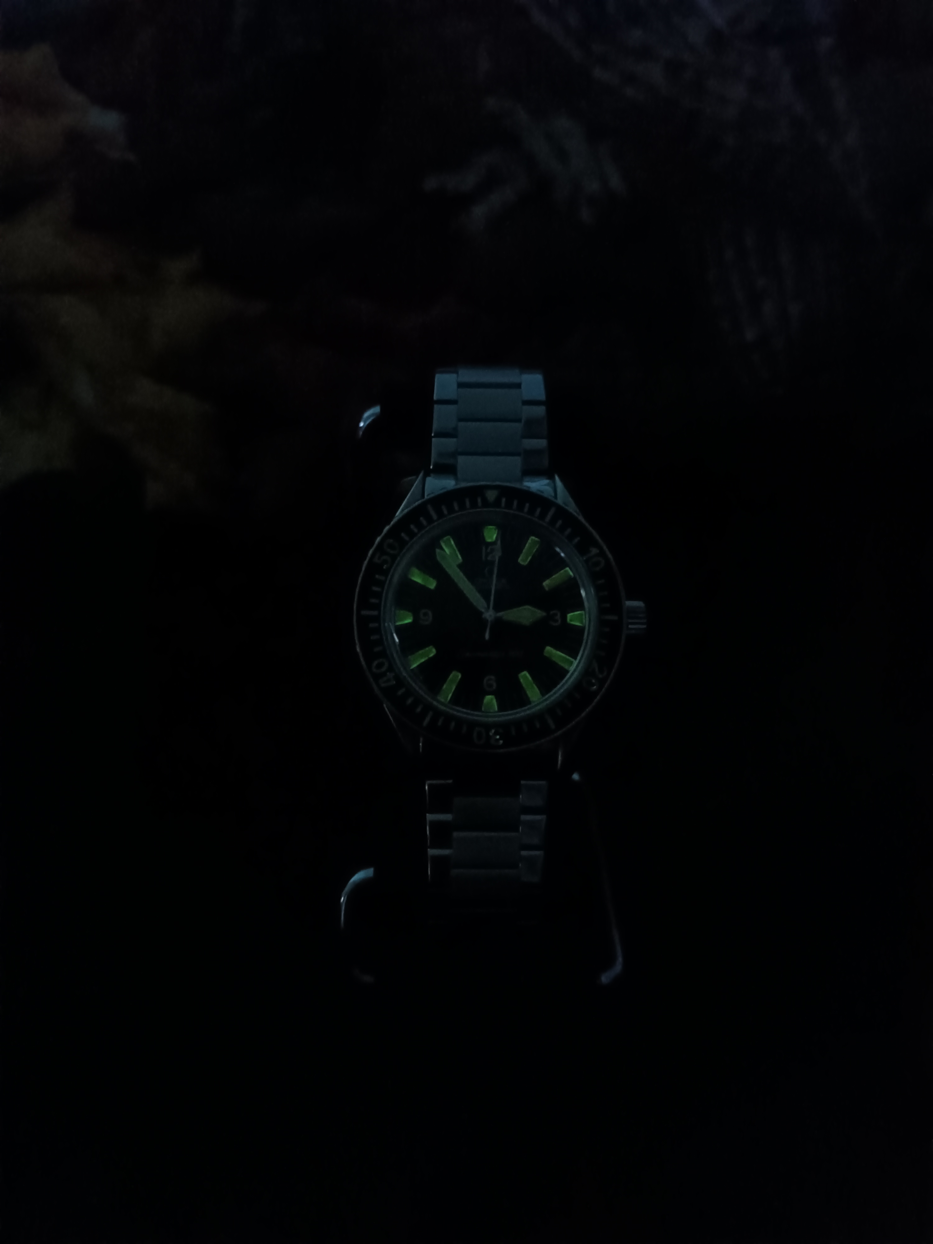 Posts 511 Likes 2,180 Enzo ·Aug 23, 2022 vitriol How does the ZnS lume glow? Never tried to take lume shots before, not great pics, but this is what I get after holding the watch under a lightbulb for about 20 seconds: fades pretty quickly, this is after about another 20 seconds: