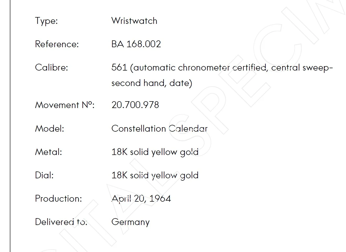 So, according to Omega, 168.002 are neither "grand luxe" nor even "de luxe"...🤔