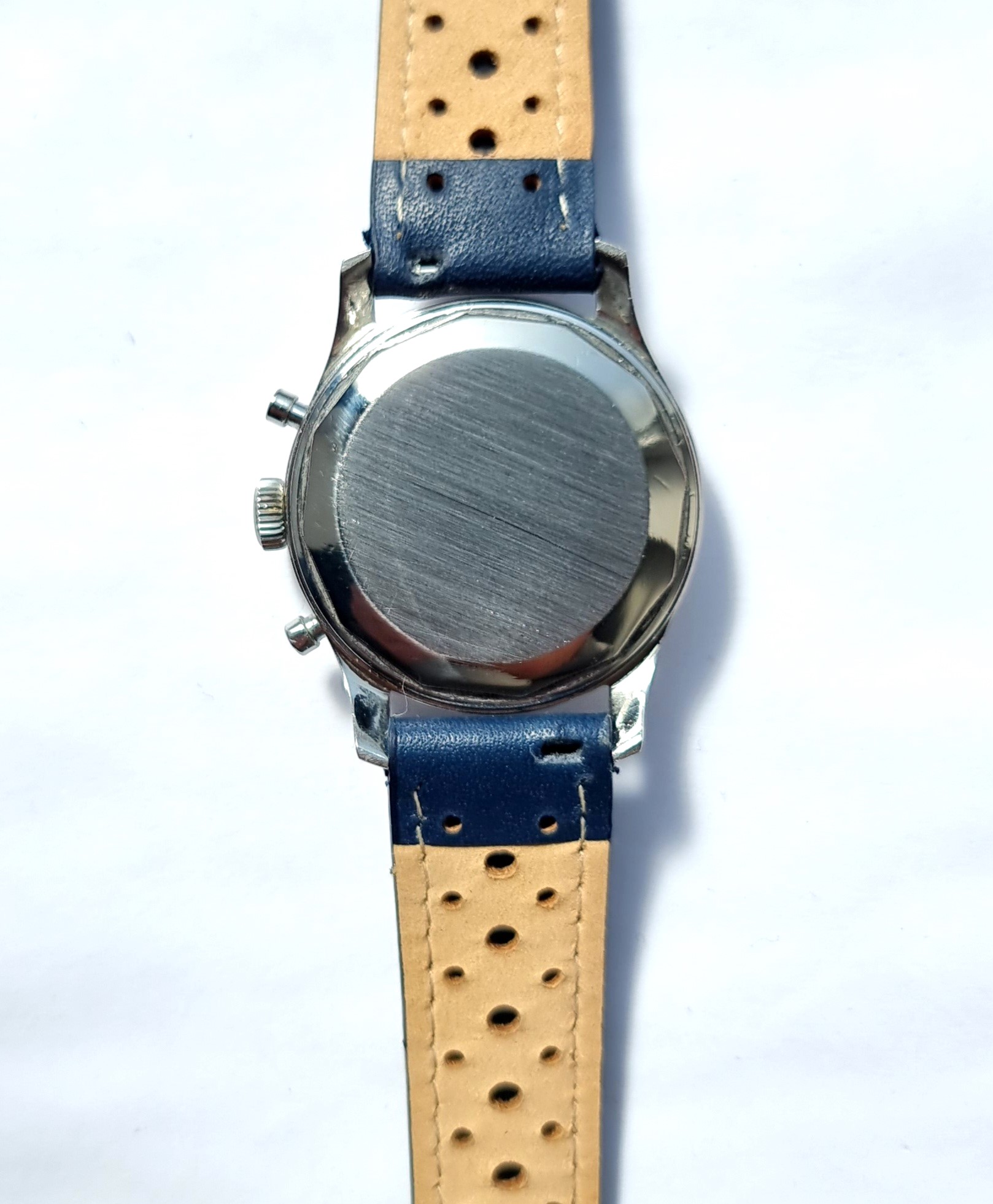 These are getting harder to find in nice condition and this one comes on a new blue rally strap as seen.