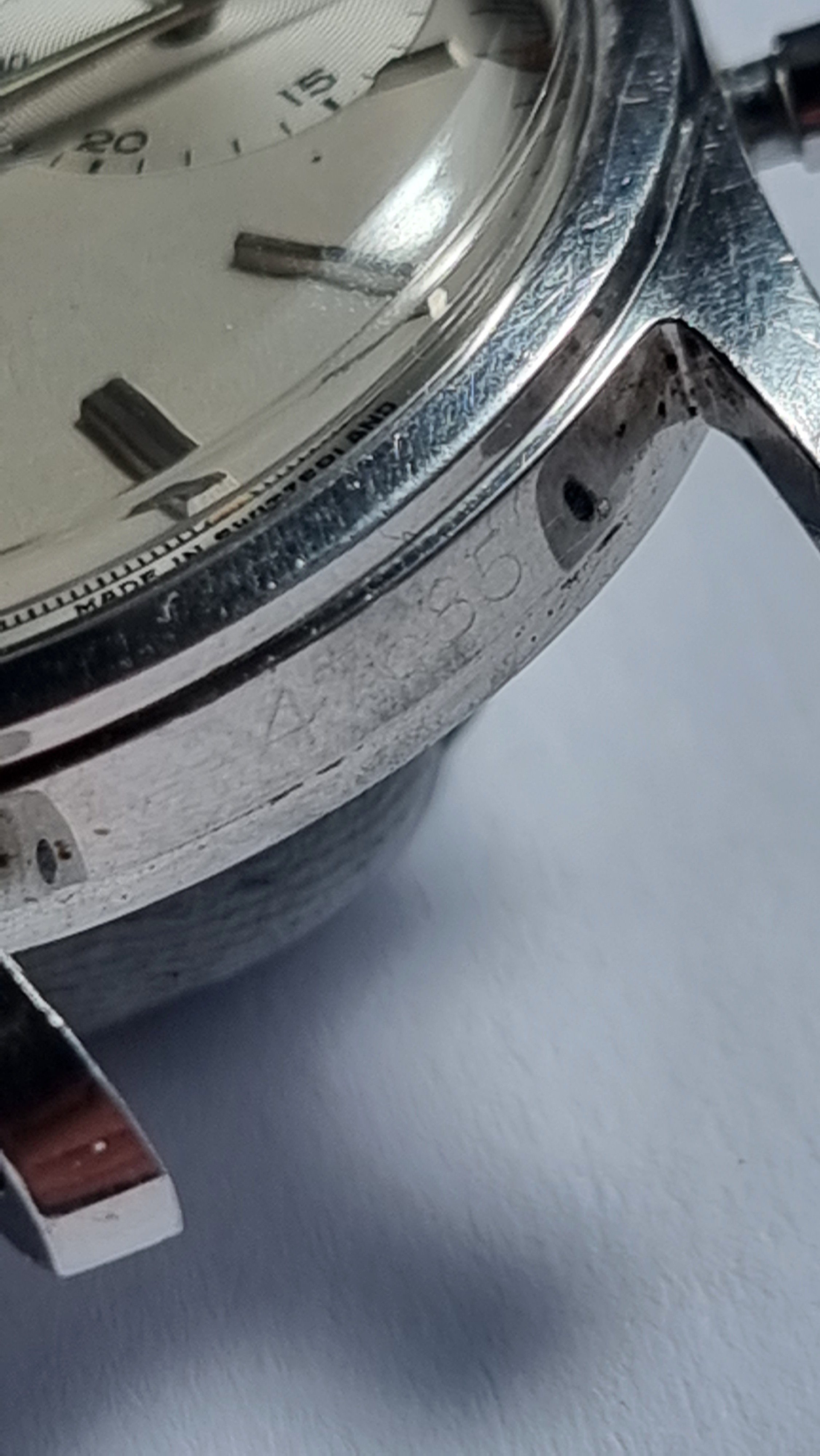 This reference was only produced for a few years in the early 1960s, and this one has the serial 47685 between its 18mm lugs at 6.