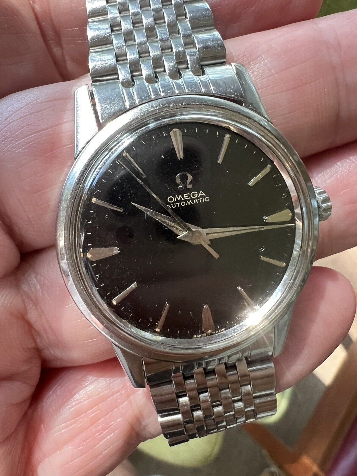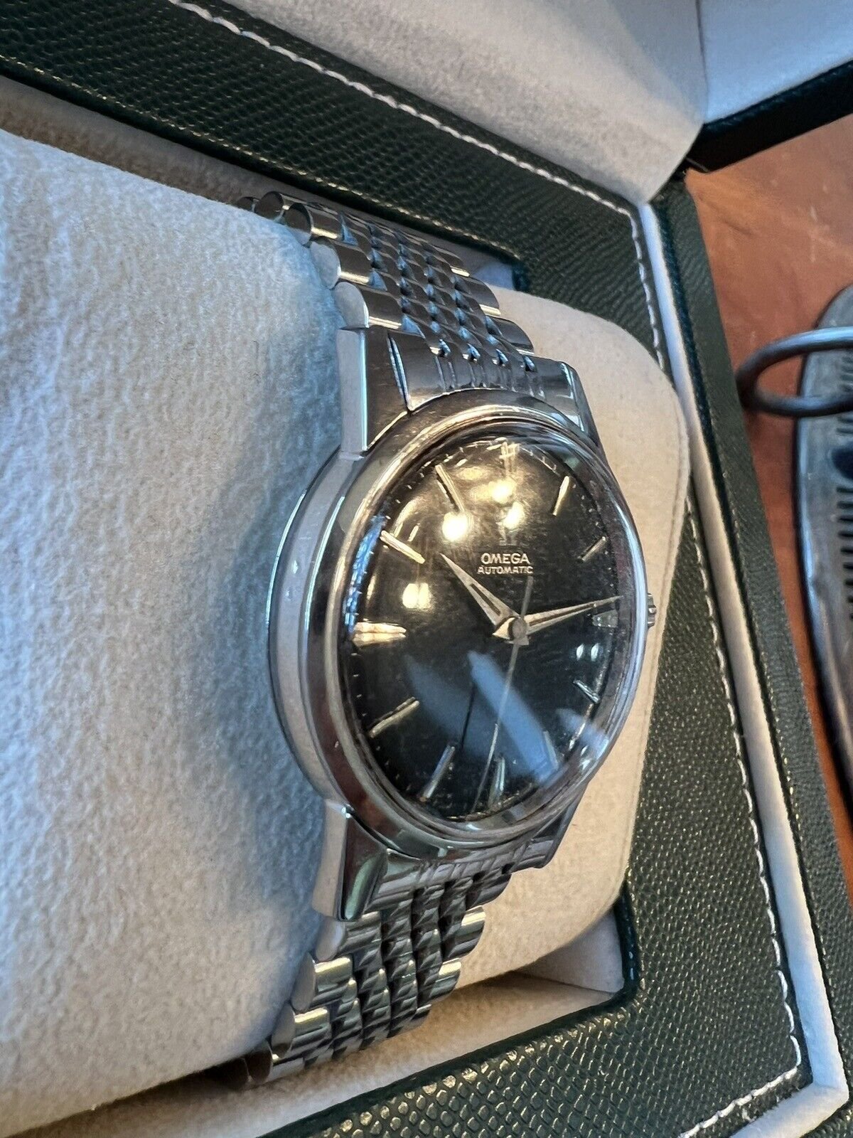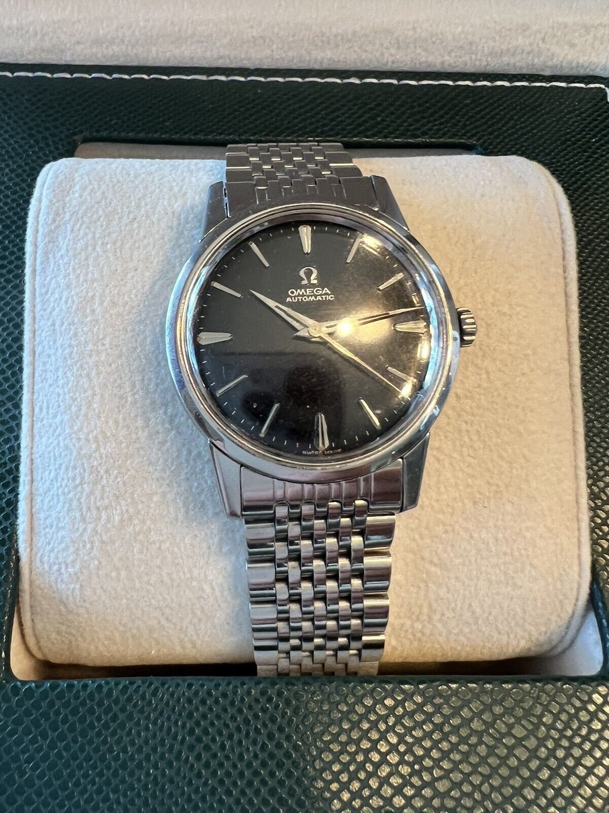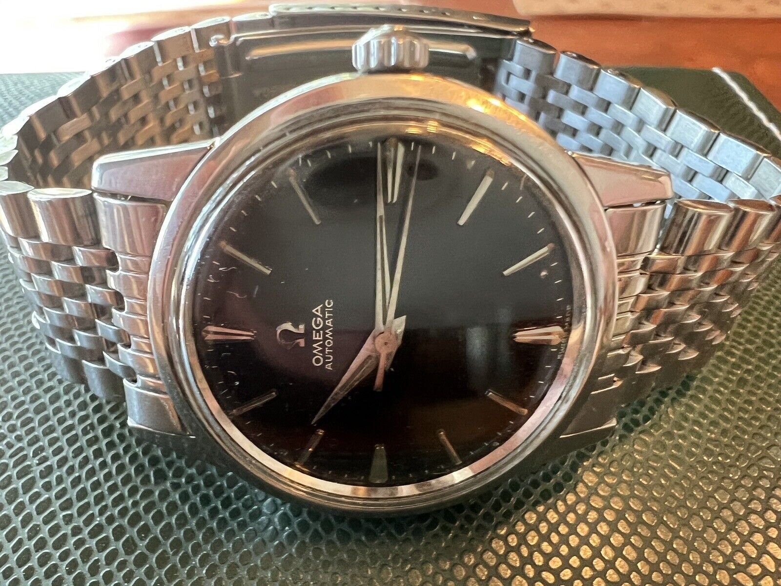 Vintage Mint Swiss Omega Pre-Seamaster Automatic Watch with Bracelet, Black Dial