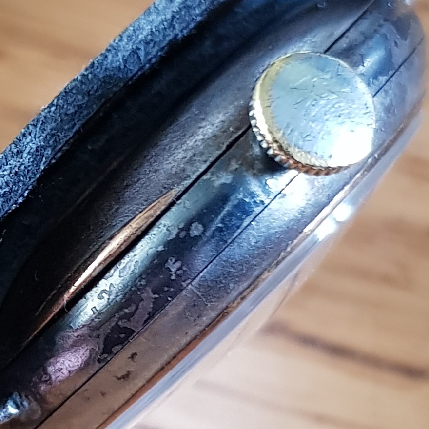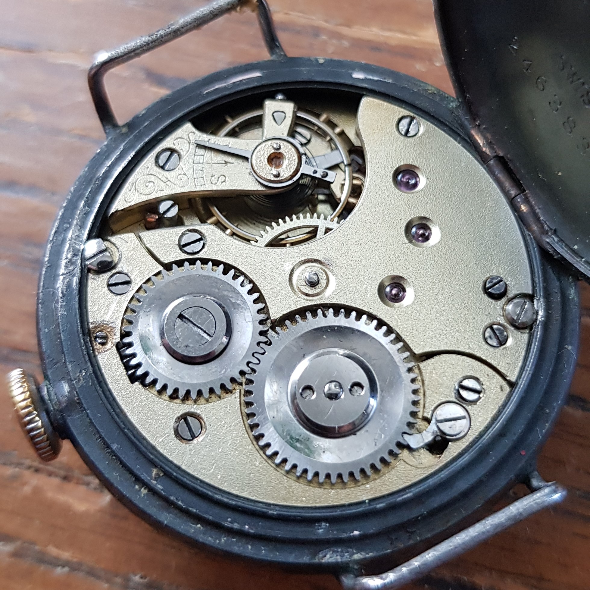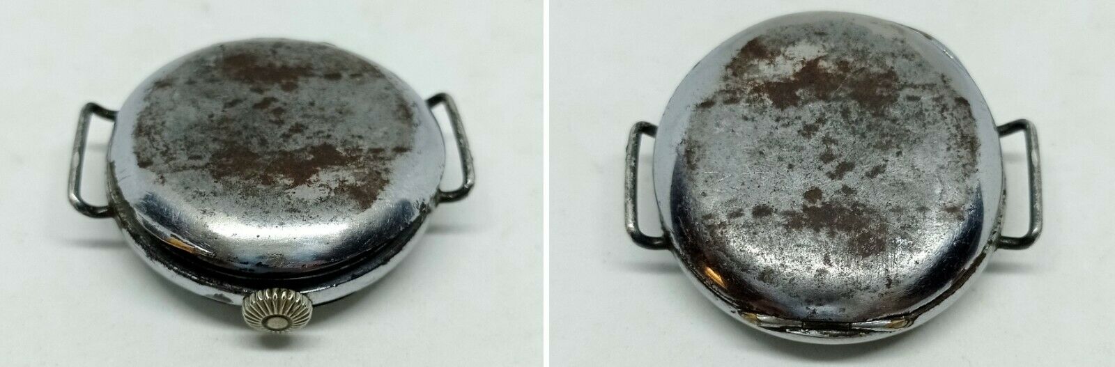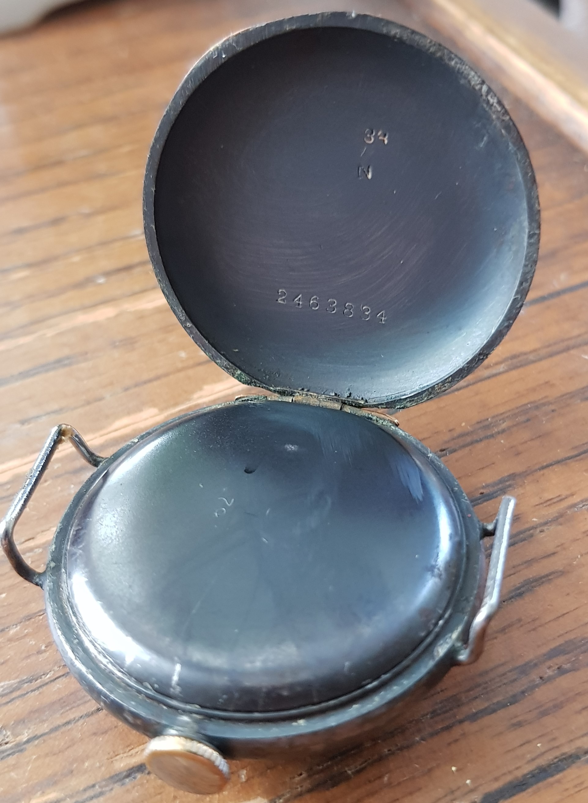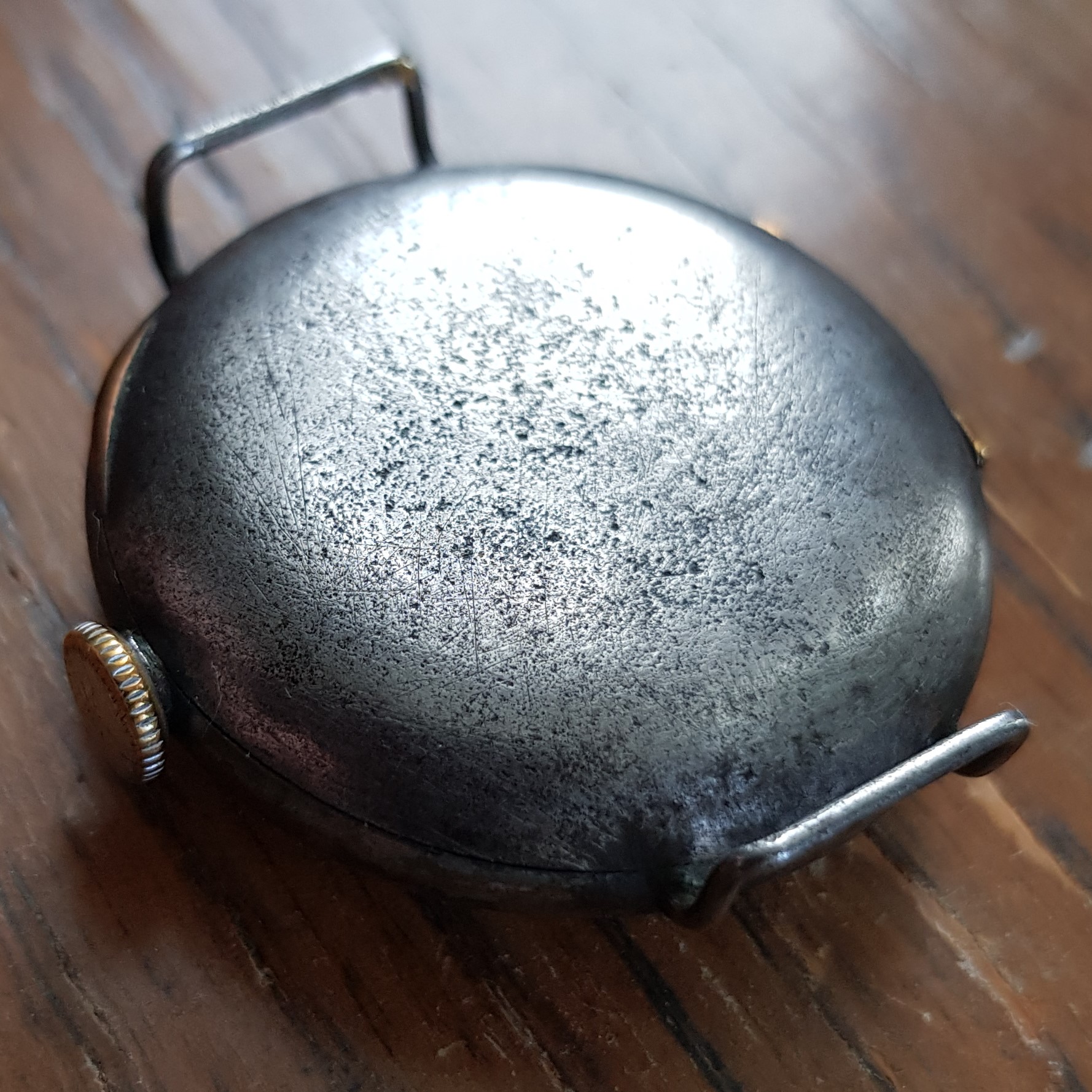 There seems to be a rash of these on eBay at the moment. Details of 3 below. They all seem to have similar cases, made out of base metal with gold coloured highlights around the inner rim of the bezel and the lip to open the case back. The inners tend to be blackened by some sort of oxidisation process and I wonder if the whole watch was once like this as it seems unusual to make the case from a base metal unless there was originally a reason like this blackening process.