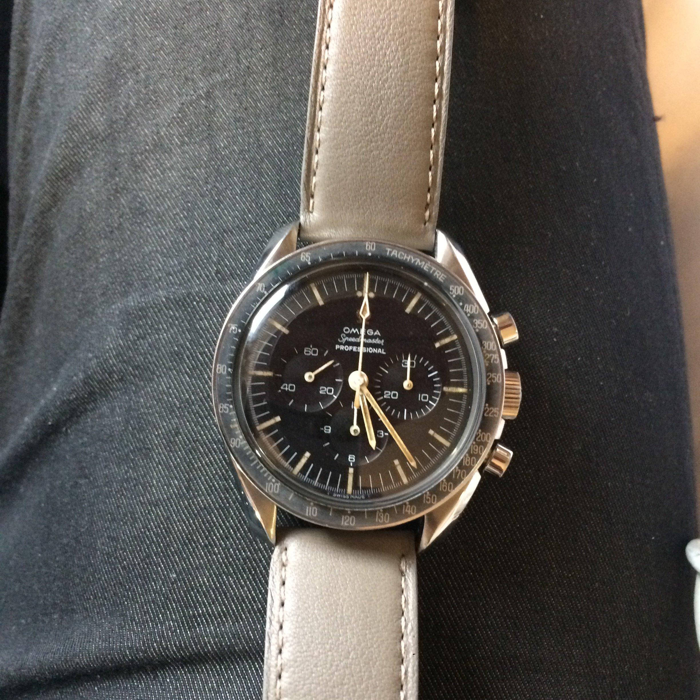 Posts 323 Likes 254 Maitreyoda007 ·Jun 26, 2017 My first Speed, received today - 105.012-65, second owner! I'm searching a nice leather strap, if you have an address... 😉