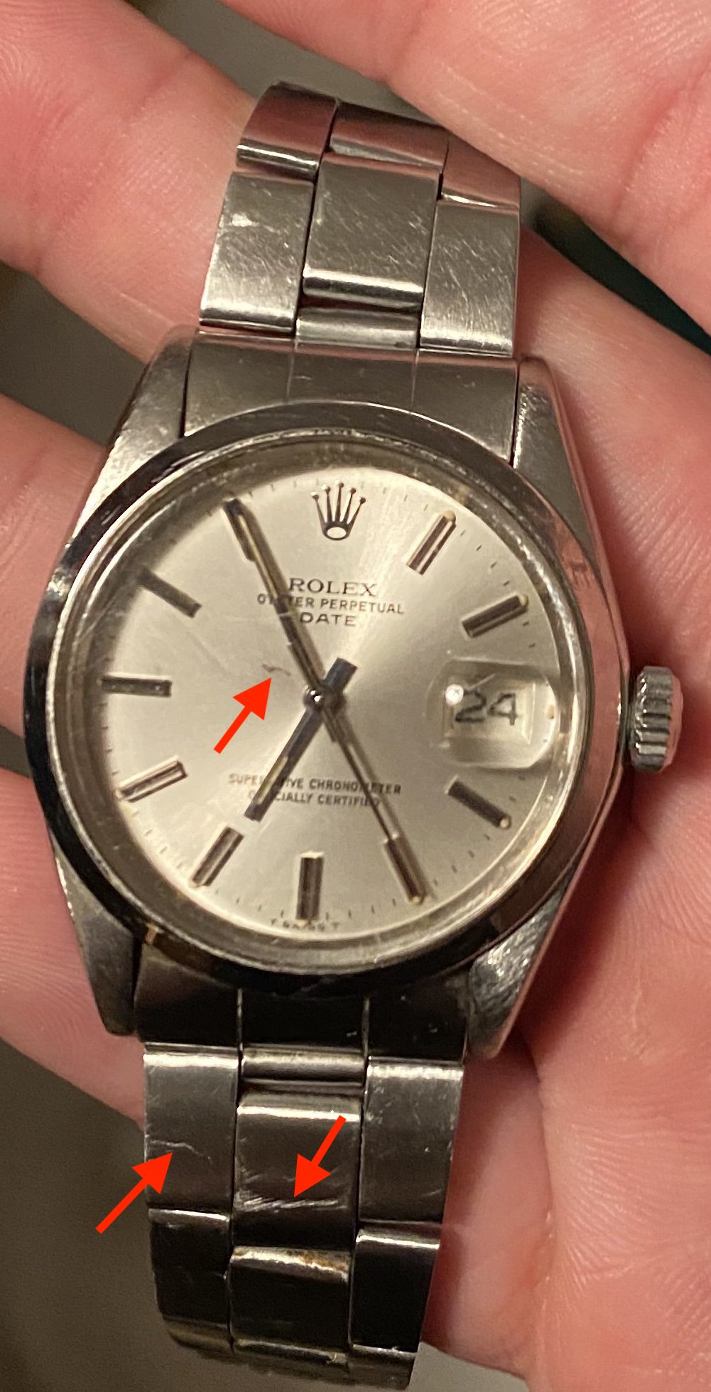·So I’m trying to buy these two watches off someone and considering the condition I wanted to know what would be a reasonable price to give for them. I don’t have much more info on them apart from the pictures. The owner recently passed away and the papers are no where to be found for the Omega. They Oyster has the box and a certificate but I don’t know from which year they’re from. I’m probably going to have to service both after I buy them, especially the Omega since it’s pretty banged up.