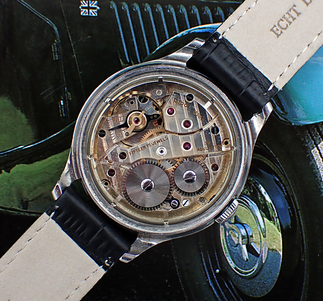MOVEMENT: Under the hood beats a very attractive 15-jewel Mido caliber 1200A, which according to Rannft is based on the Felsa 390, featuring three adjustments, Superchoc shock protection, gold lever and a high level of finishing. I do not know this watch's service history but it keeps good time with a strong power reserve. Guaranteed to be the case at the time of shipping, though a future service may be warranted.