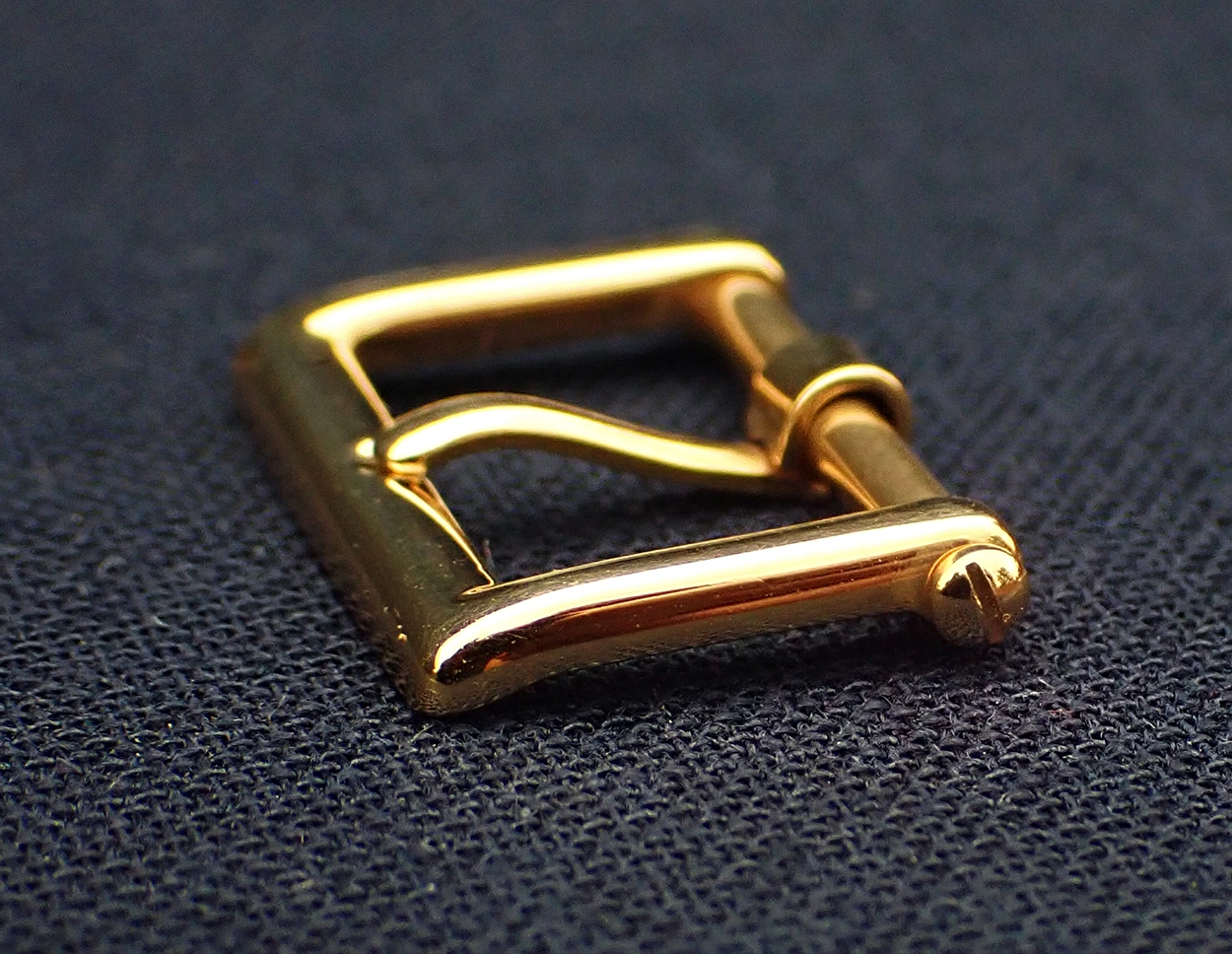 ·On offer here I have a genuine vintage 18k yellow gold Patek Philippe buckle in classic flat style with 14mm width and quite rare screwed tang bar. Based on some new info from a far more knowledgable PP collector than I, I now believe this buckle style dates to Patek's 150th anniversary "Jubilee" era, so more like late 1980s-early '90s, where it can be found mounted on a few special commemorative models, most notably the Jubilee Officer's ref. 3960 and the rare ref. 3969 Jump Hour.