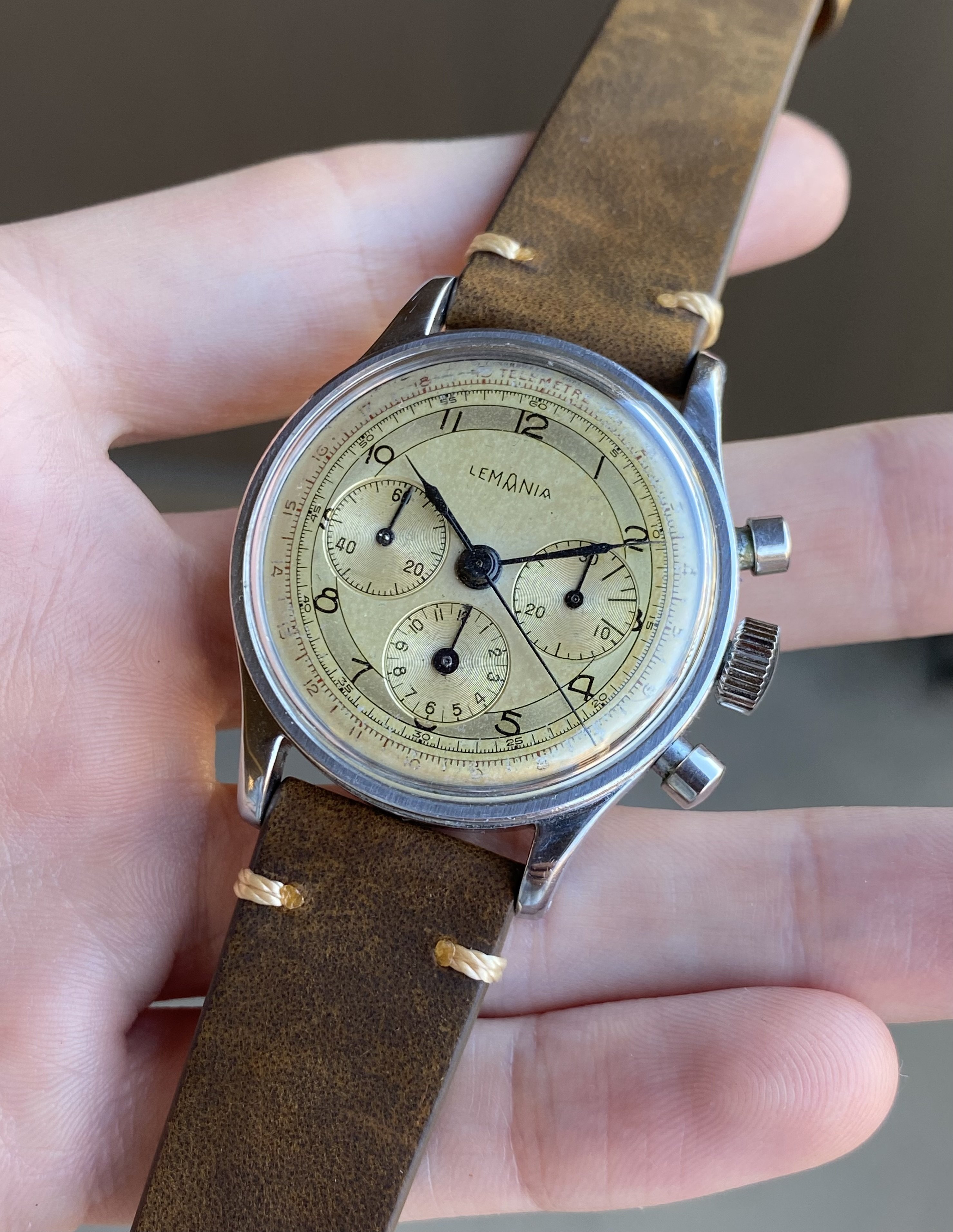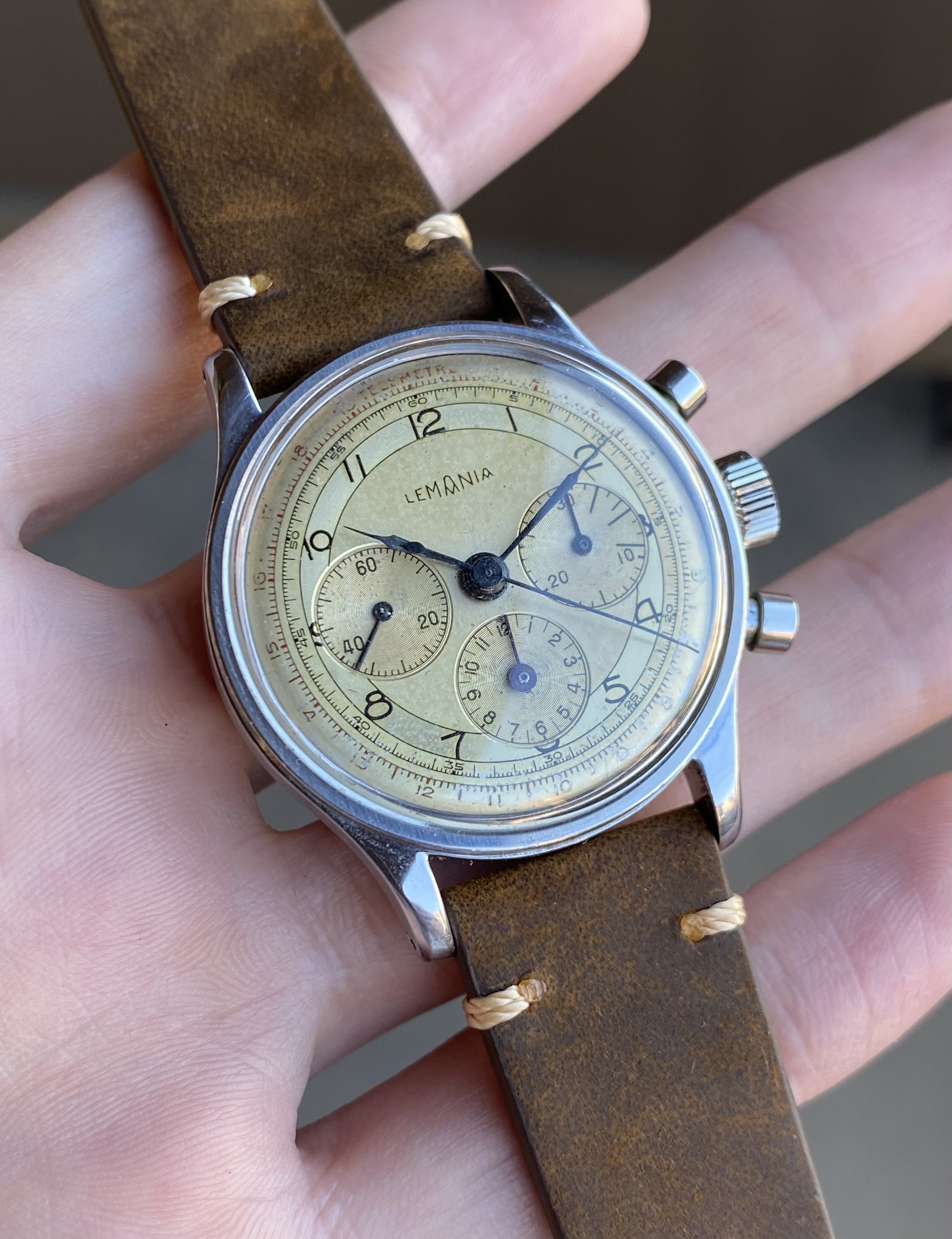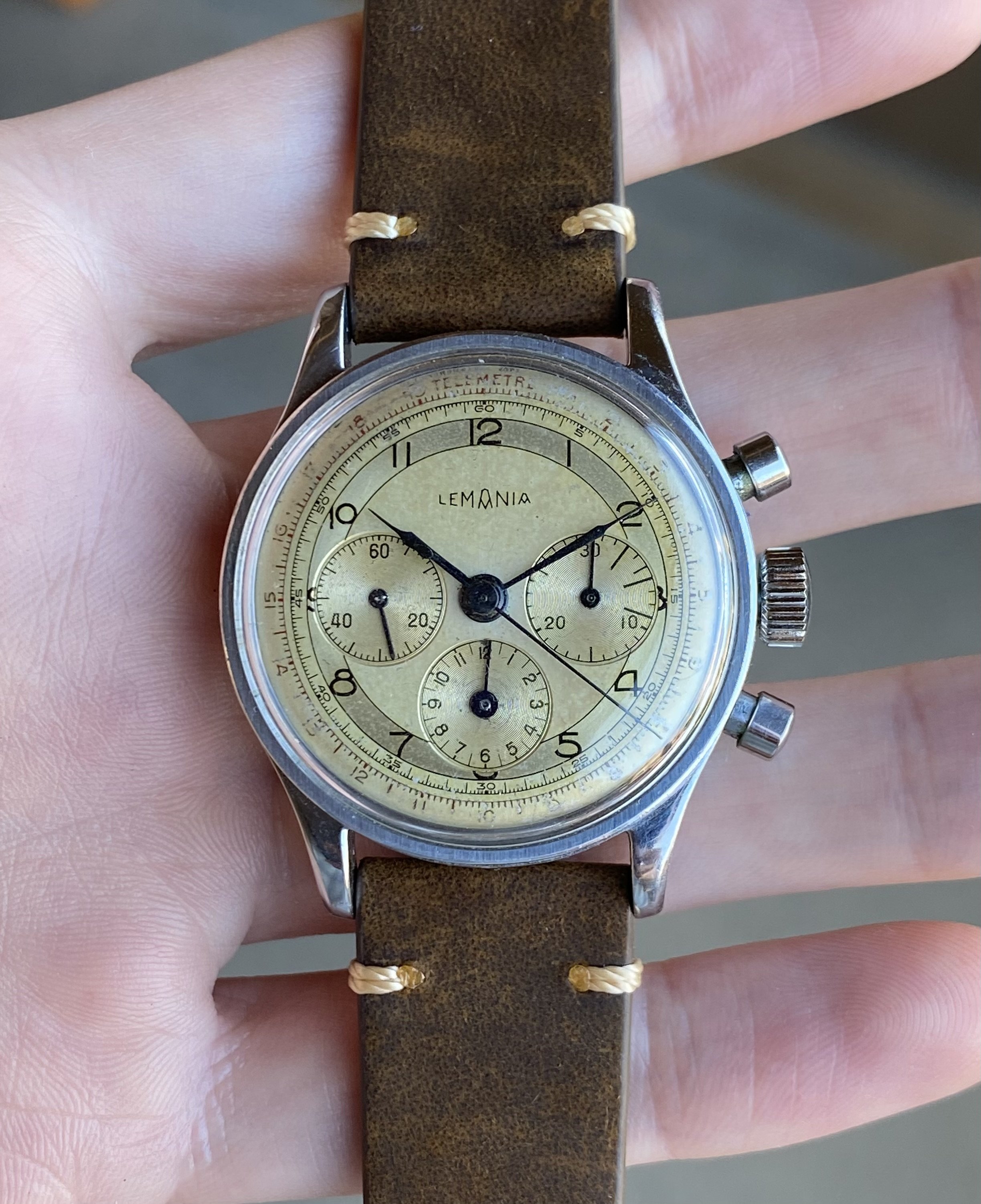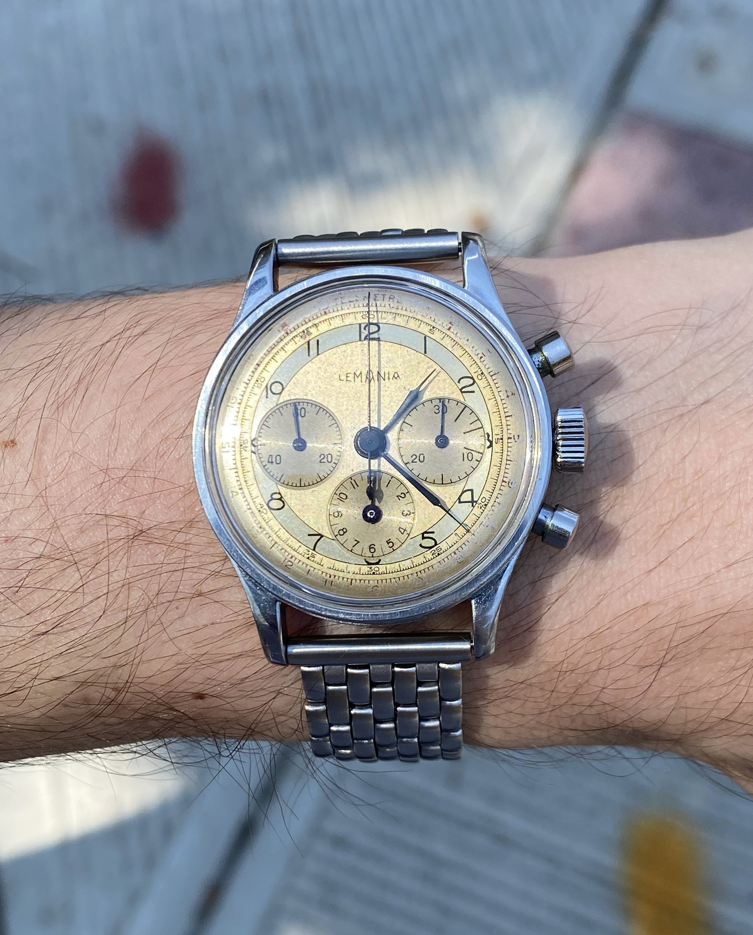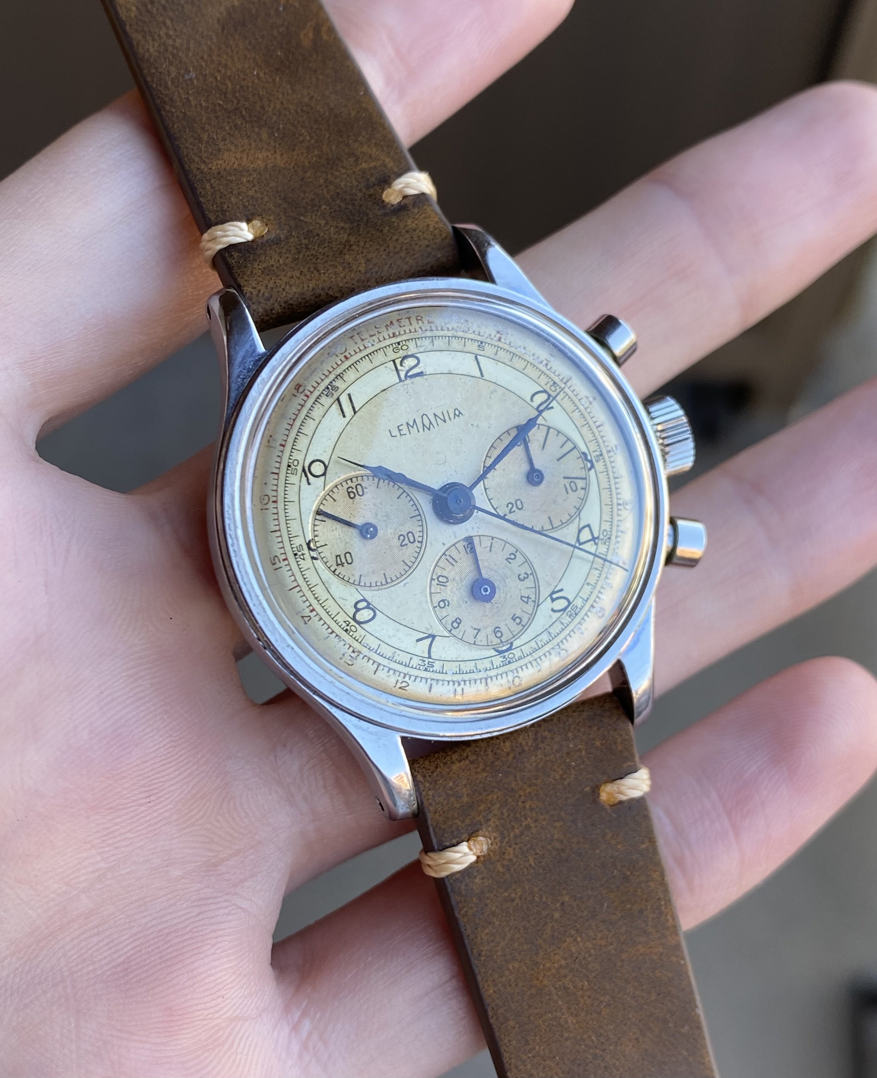 ·Up for sale is a nice waterproof steel Lemania 27CH chronograph. The two-tone dial has developed an attractive patina and the 35mm waterproof steel case is in nice condition. See below for full info, and don’t hesitate to message with questions.