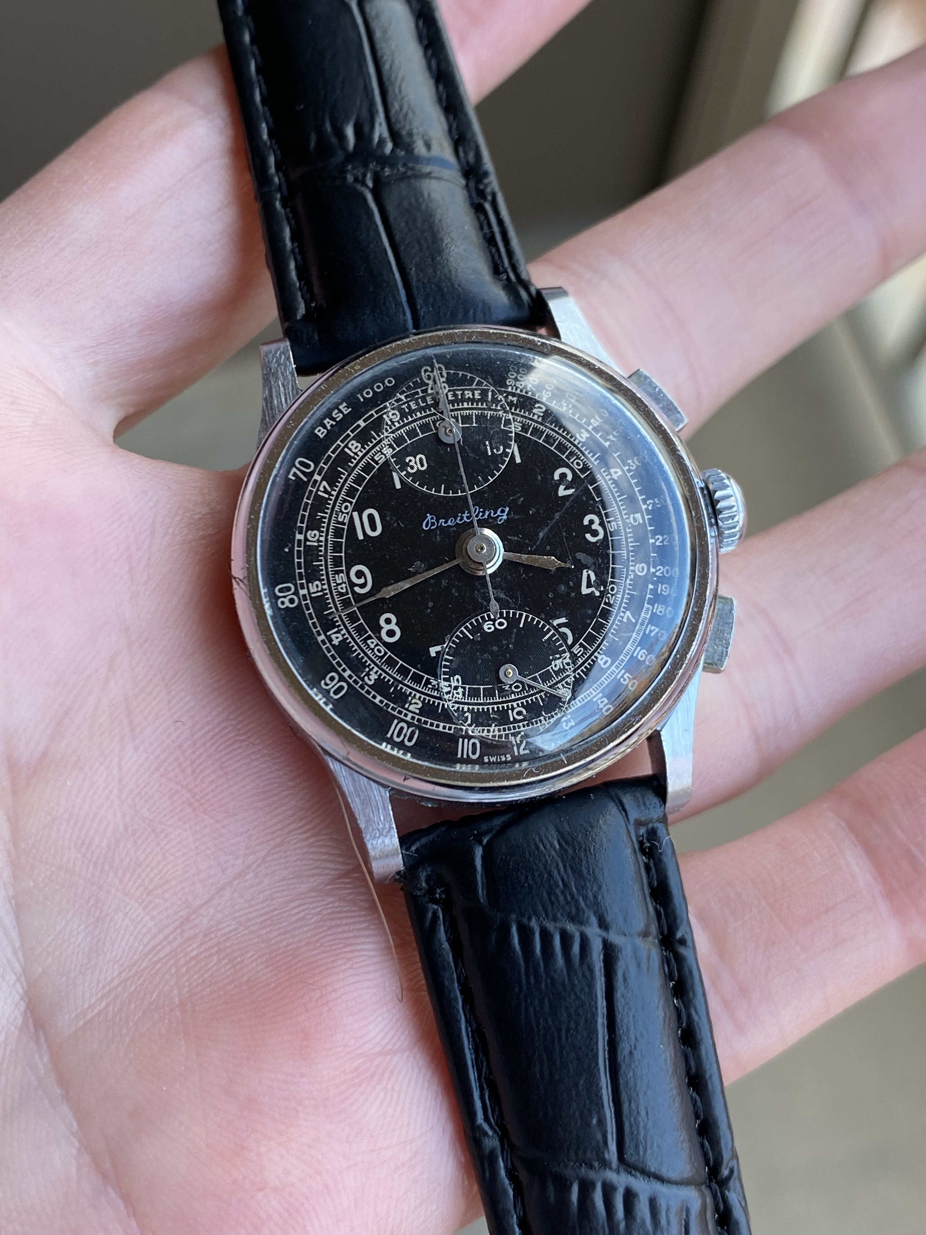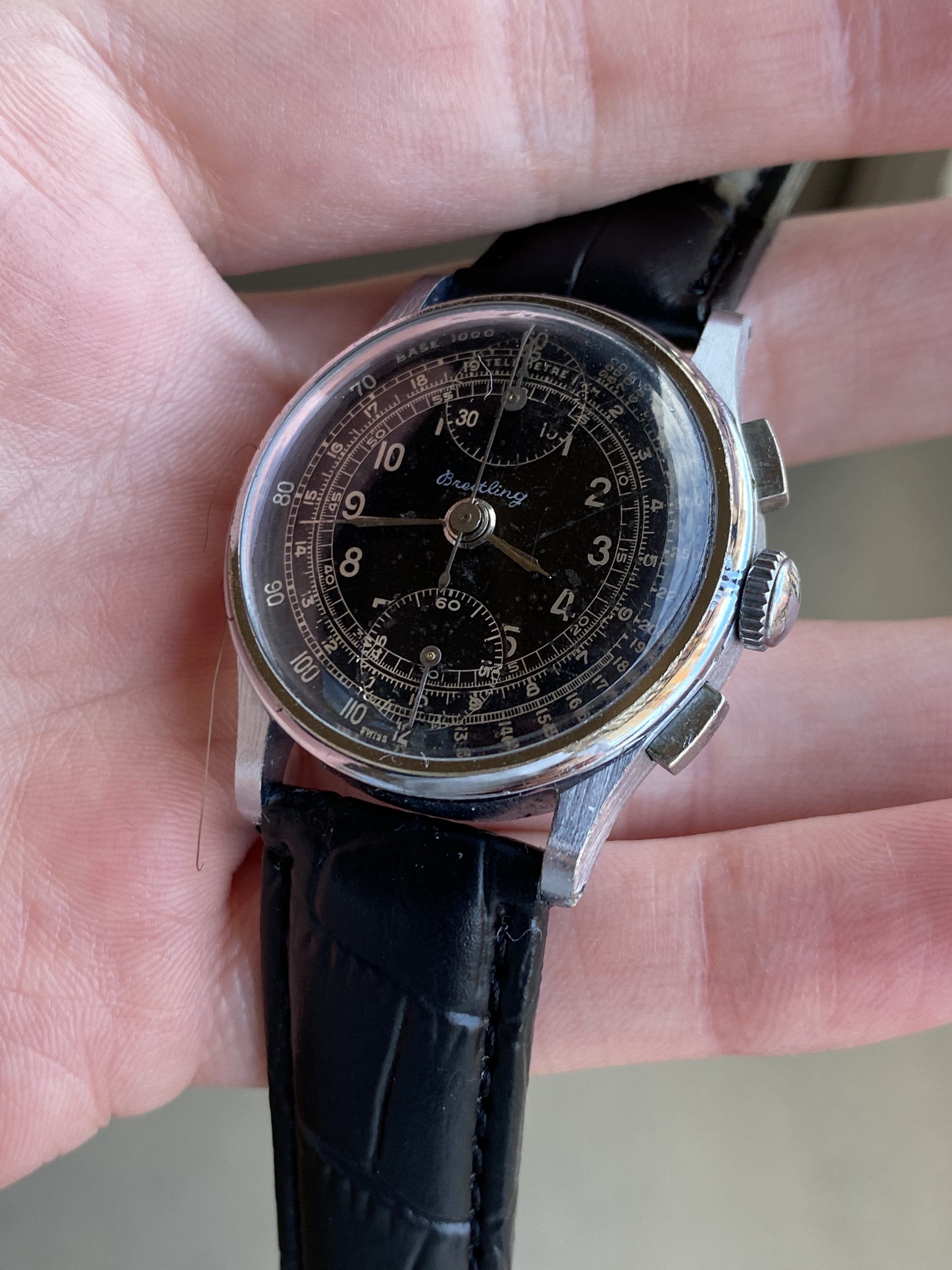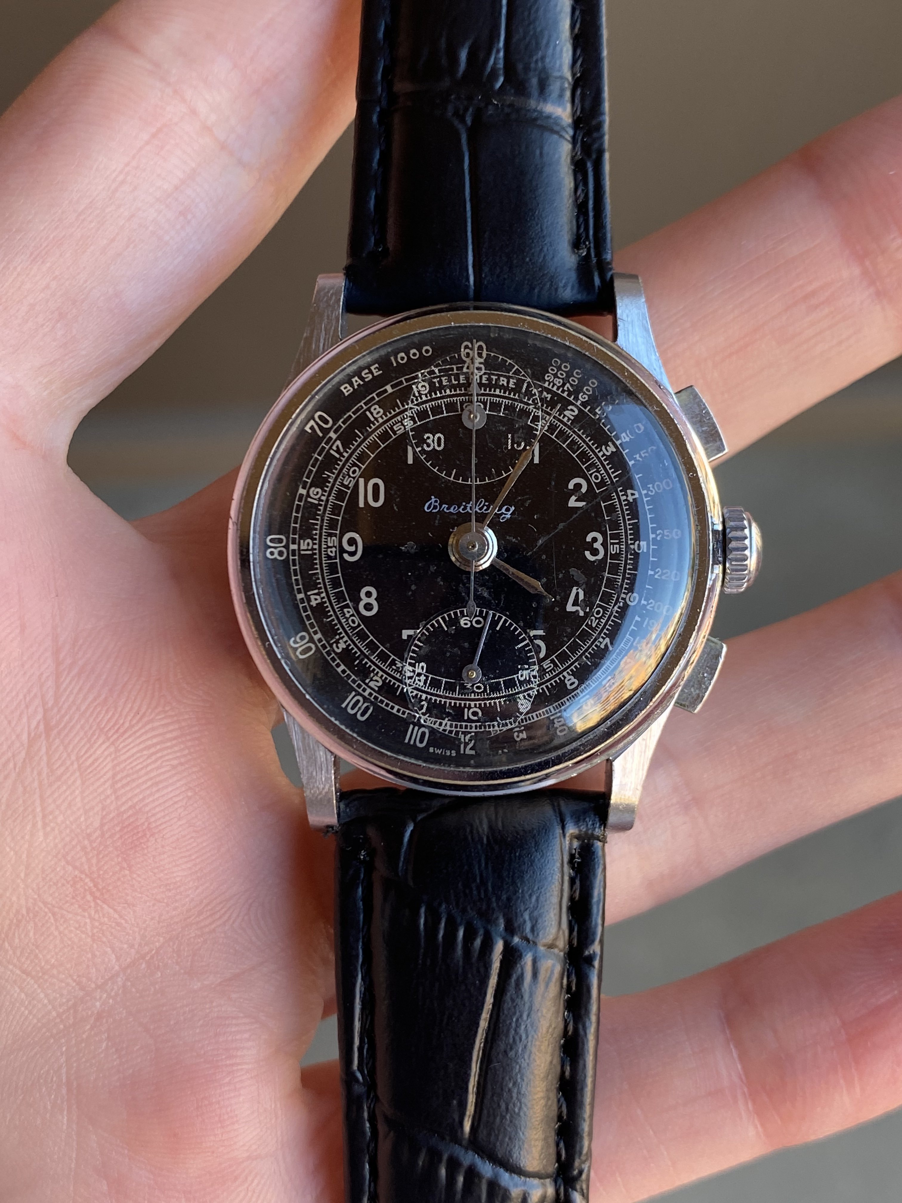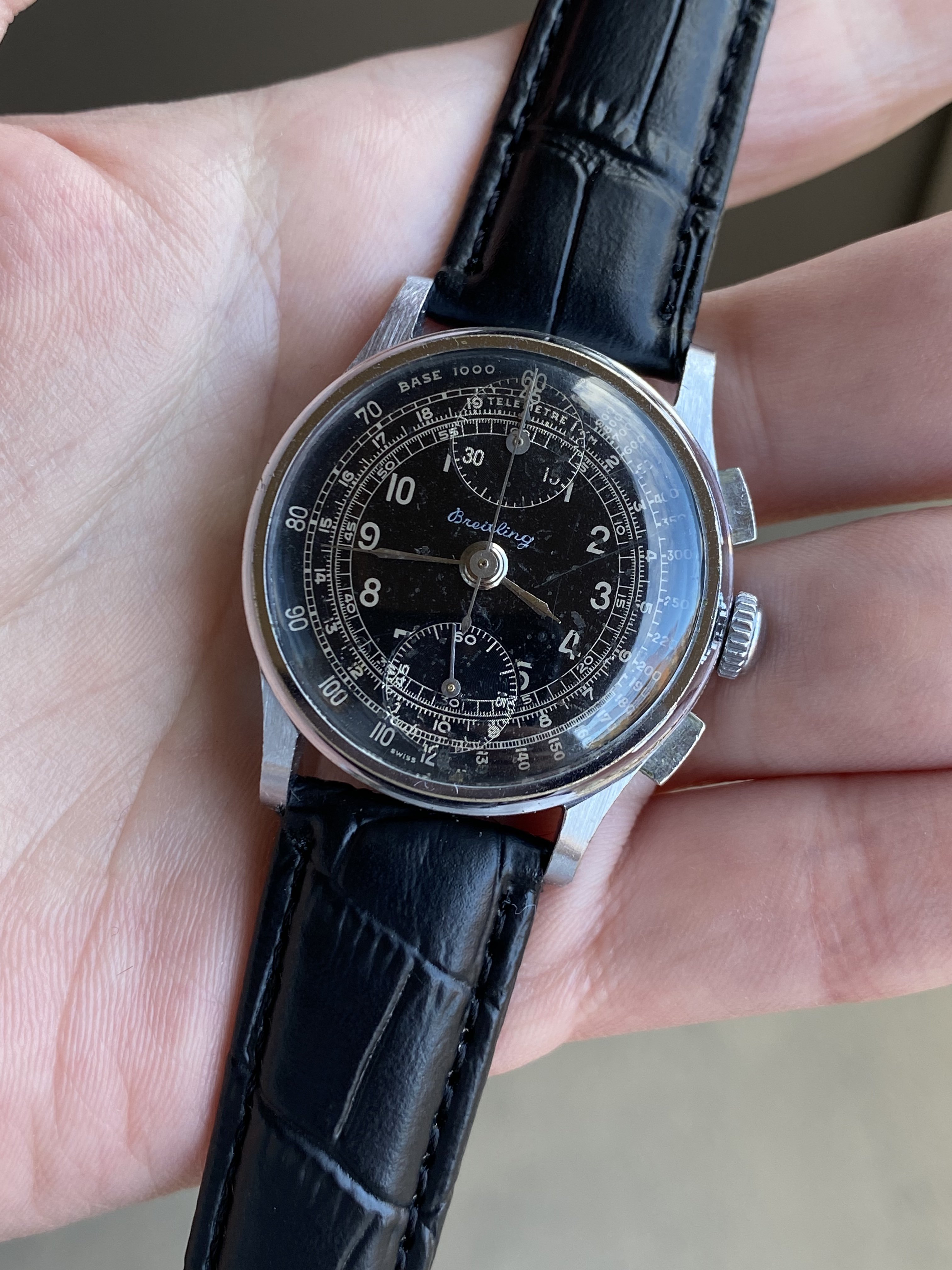 ·For sale is a very nice Breitling chronograph from the 1930s with an original black dial. The watch is relatively small but is in great condition for its age. Please see below for full information, and do message me if you have any questions.