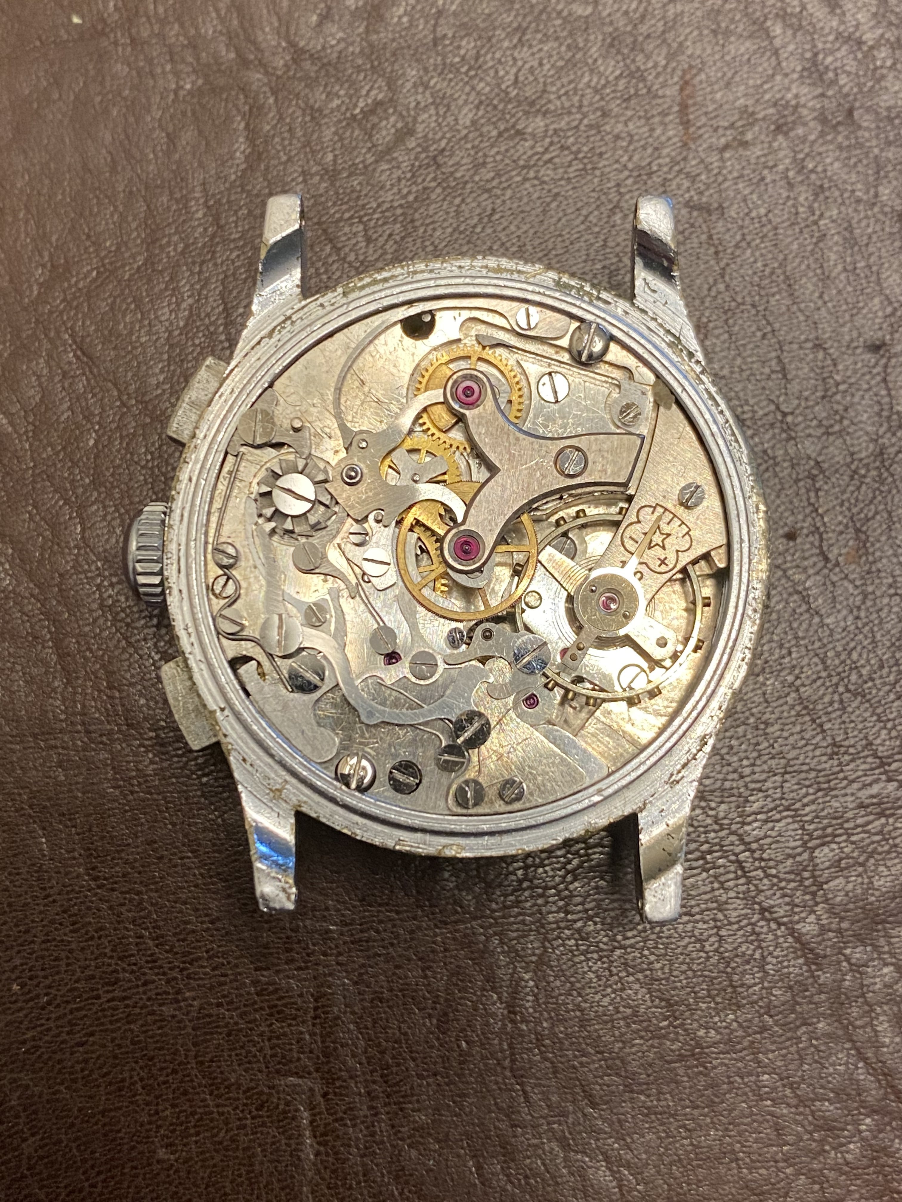 Movement: The original Venus 170 movement runs, winds, and sets well and was serviced by “The German Watchmaker” (Vancouver BC) in December 2020. Update: I have noticed that while the timekeeping is great and the chrono functions usually work fine, occasionally shortly after the chrono is engaged, the chrono hand and the second hand will stop running. No issues when the chrono isn’t running, it only happens sporadically, and it resets and can be started again fine. I’m no watchmaker, so I’m not sure the issue.