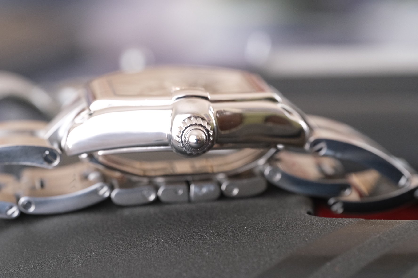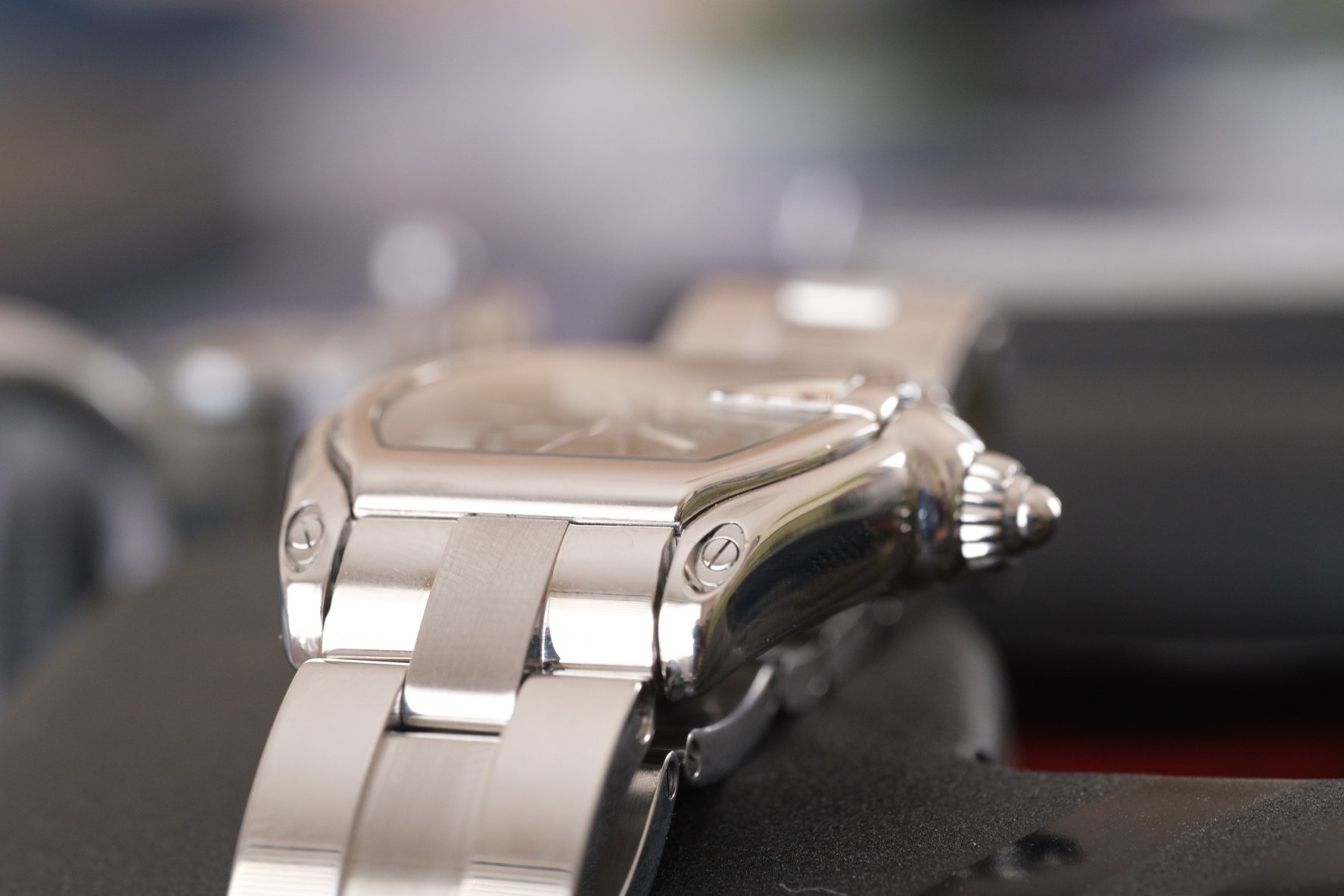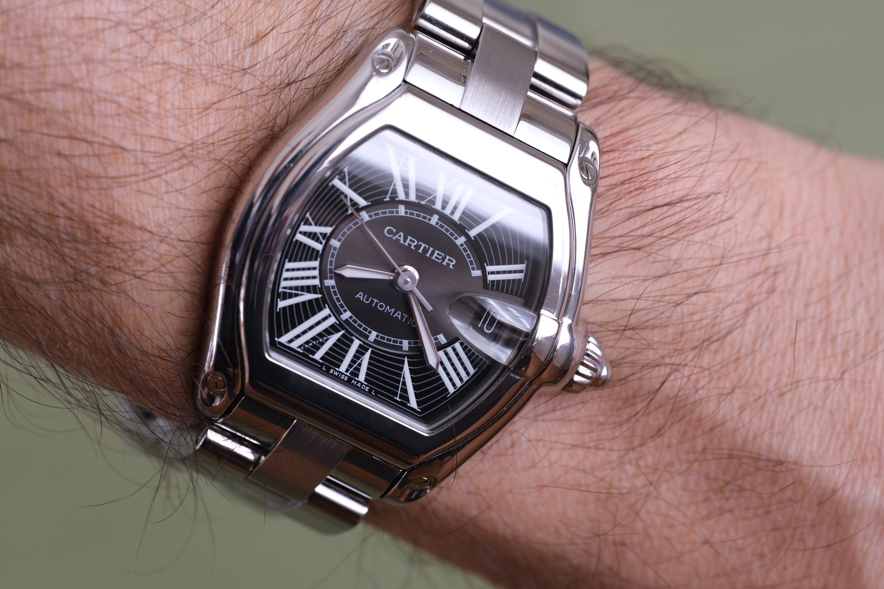 ·Love that Cartier is now getting full recognition for the incredible design and history they bring to the watch table. And here we certainly have epic design - what I believe is a sleeper in their stable - the Cartier Roadster. Modeled after a classic car, Cartier only produced this beauty for about a decade, and it’s been discontinued since 2012. Still incredibly undervalued (though like all Cartier timepieces, that won’t last long) ESPECIALLY this variation, the rarer black and gray Roman dial!